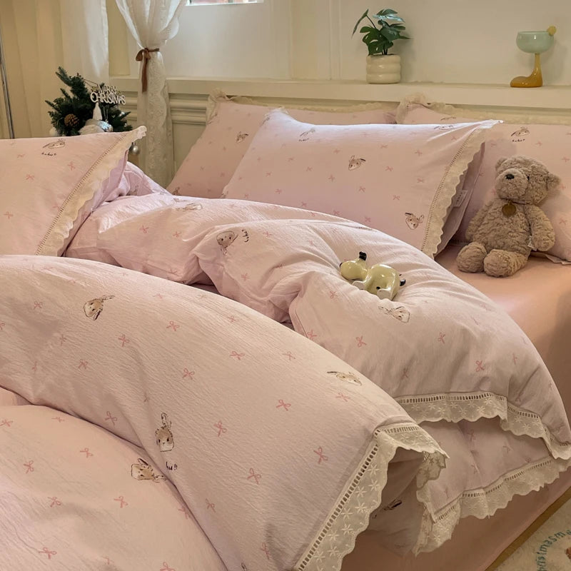 Purpdrank INS Korean Style2025 New Yungan Cotton Wrinkled Double-layer Yarn Lace Bedding Sets