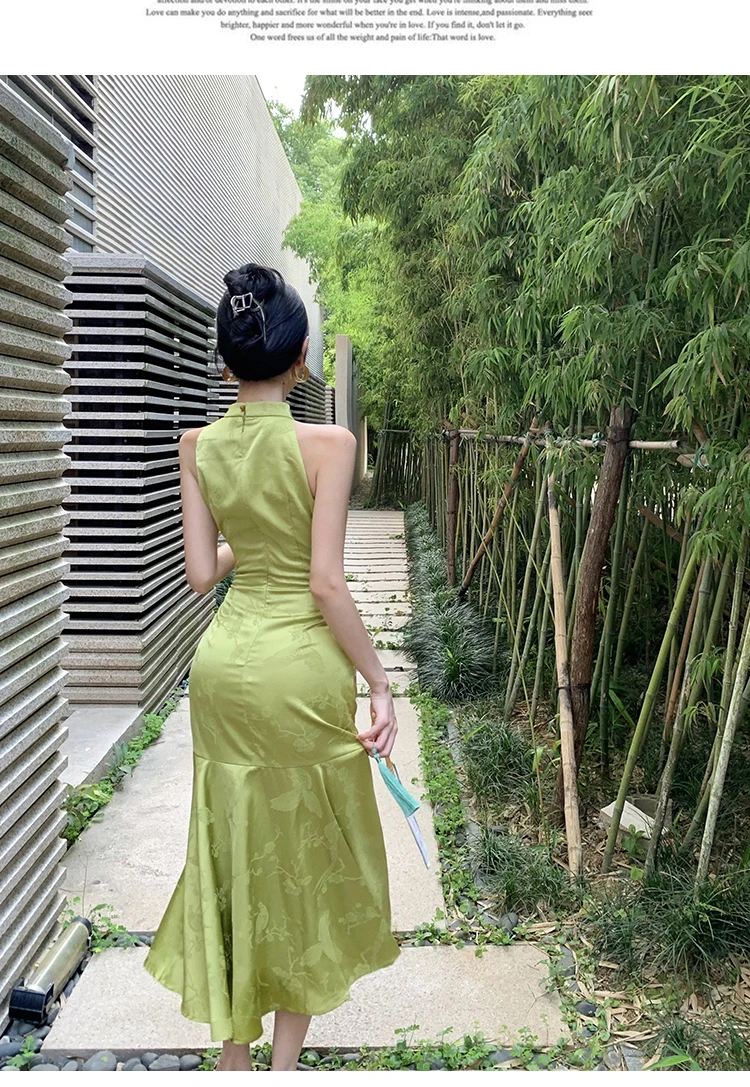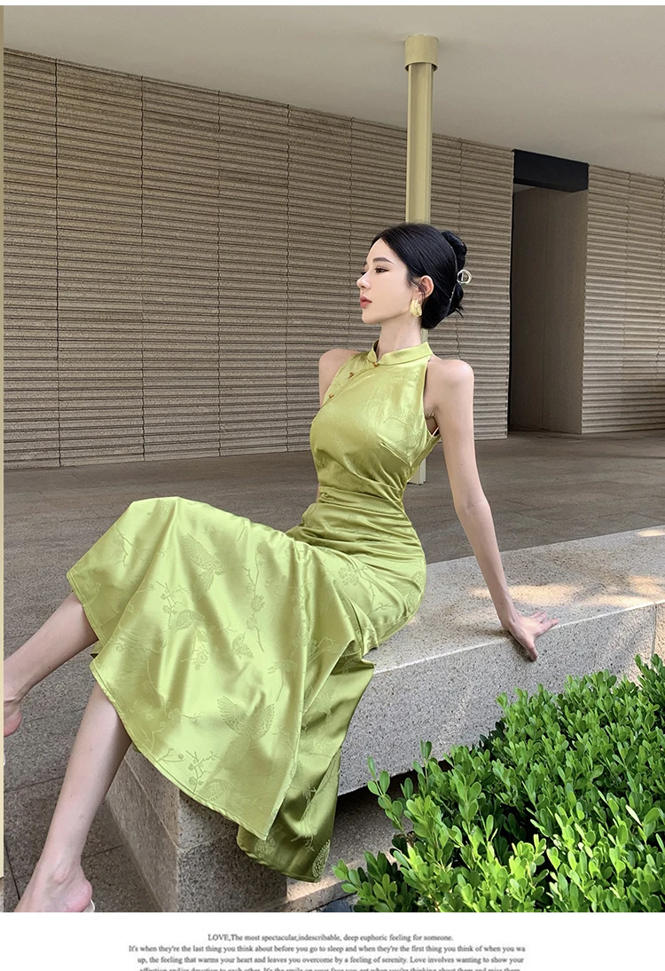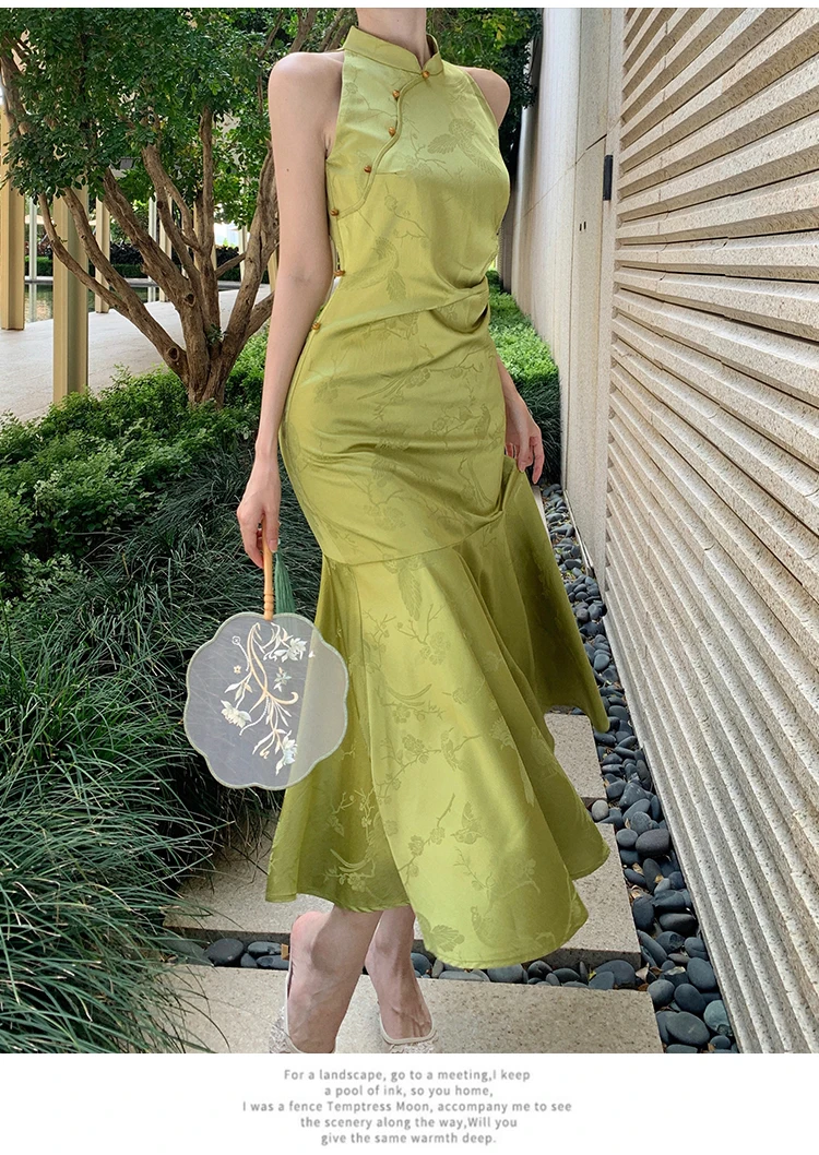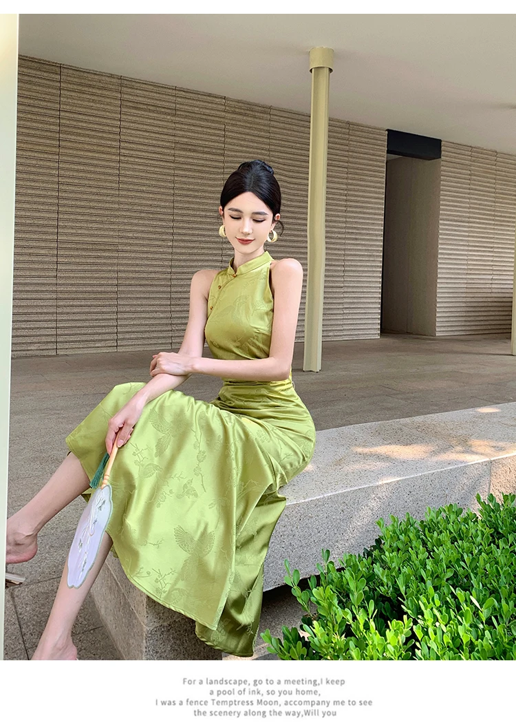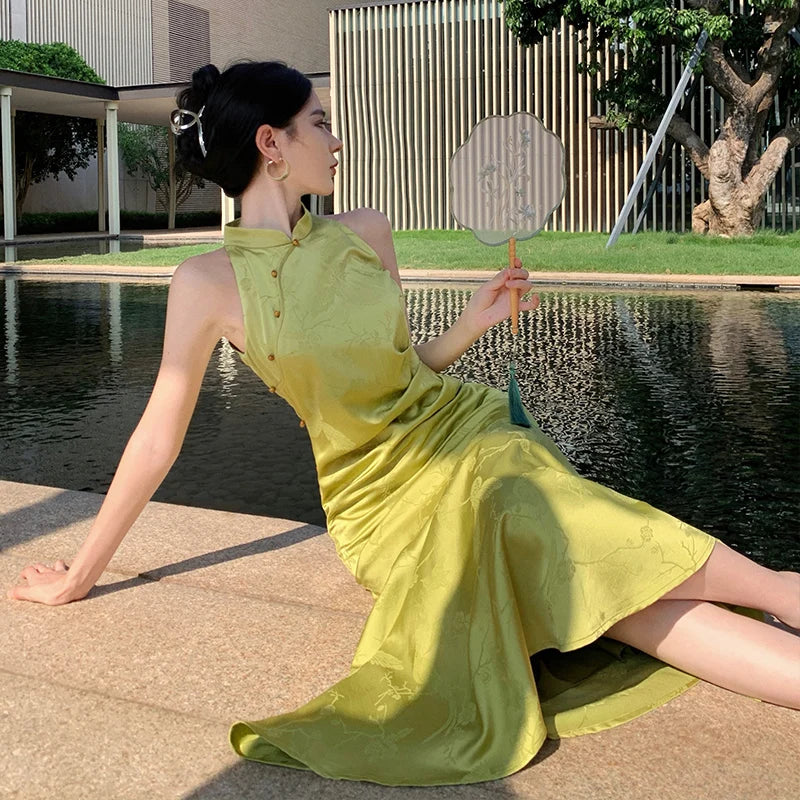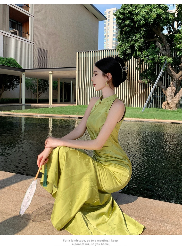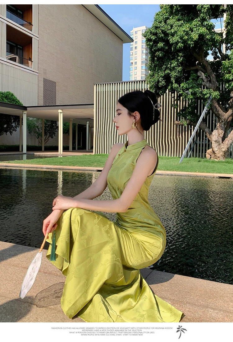 Purpdrank Jacquard Cheongsam Dress for Women Summer Retro Chinese Style Sleeveless Modified New Chinese Style Dress