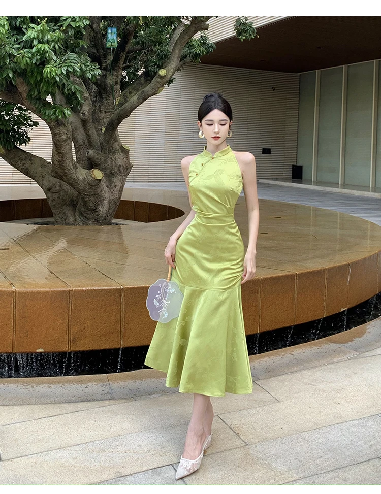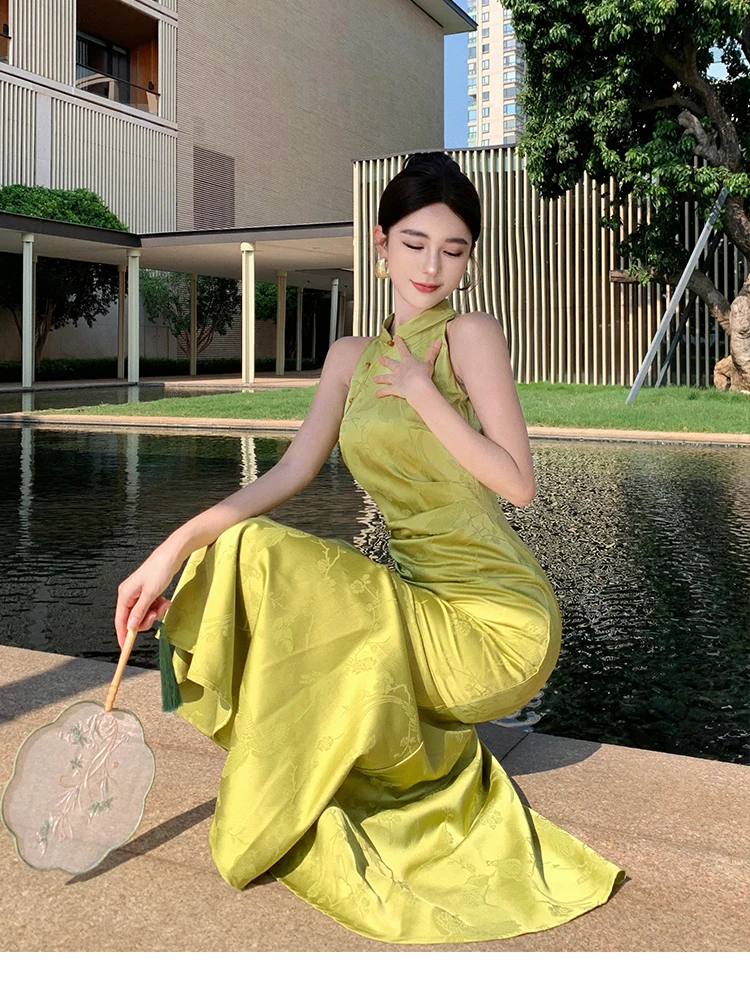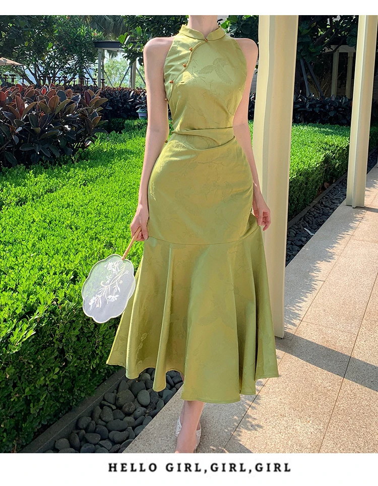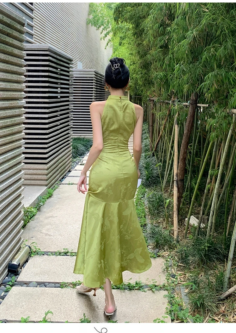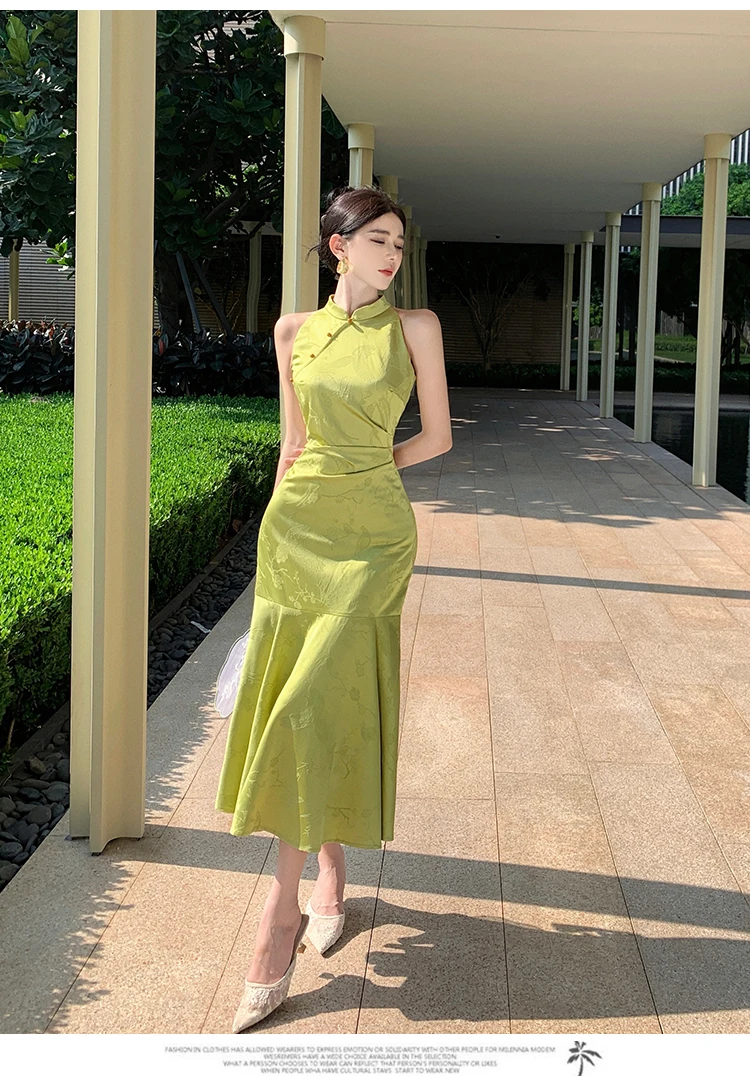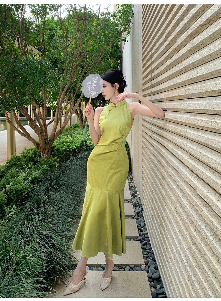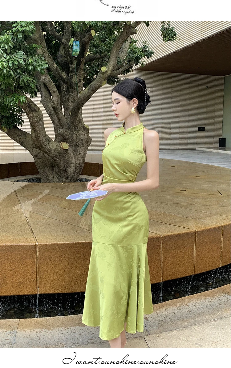 Purpdrank Jacquard Cheongsam Dress for Women Summer Retro Chinese Style Sleeveless Modified New Chinese Style Dress