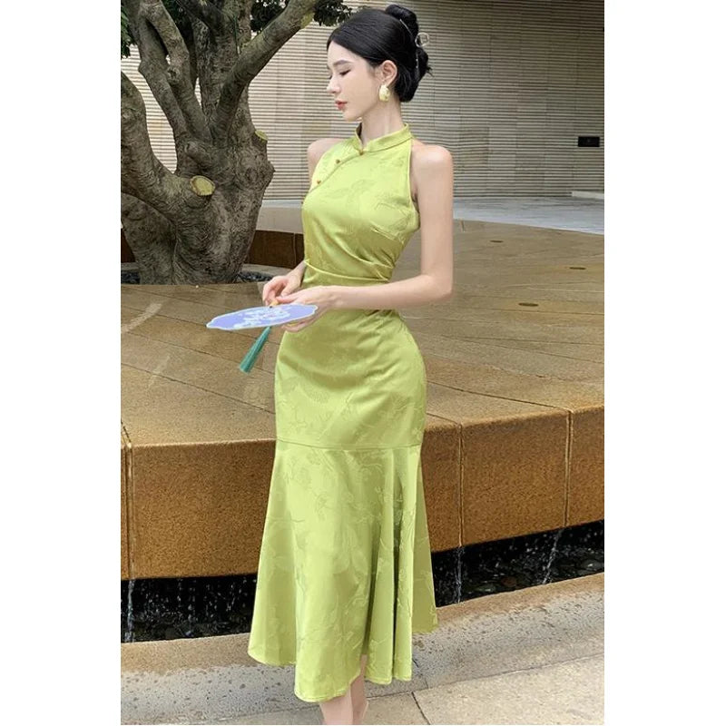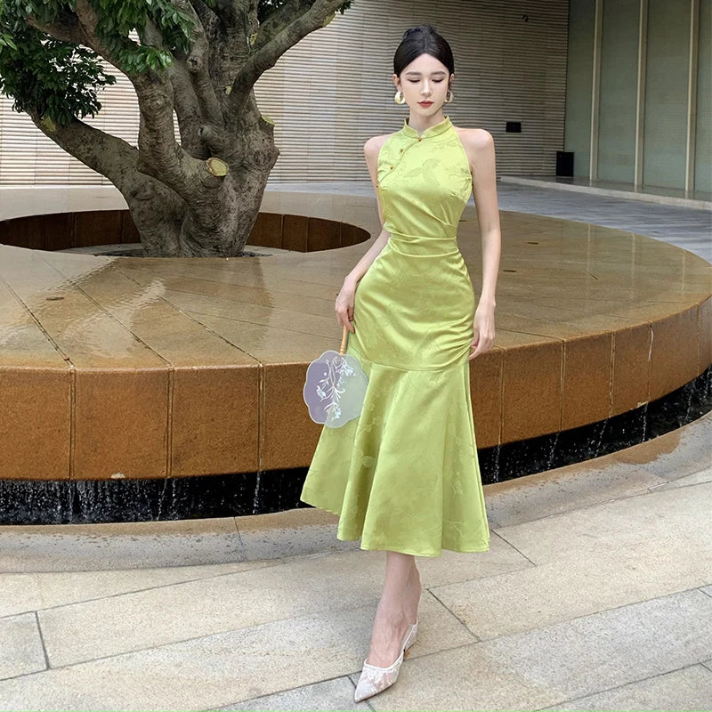 Purpdrank  Jacquard Cheongsam Dress for Women Summer Retro Chinese Style Sleeveless Modified New Chinese Style Dress