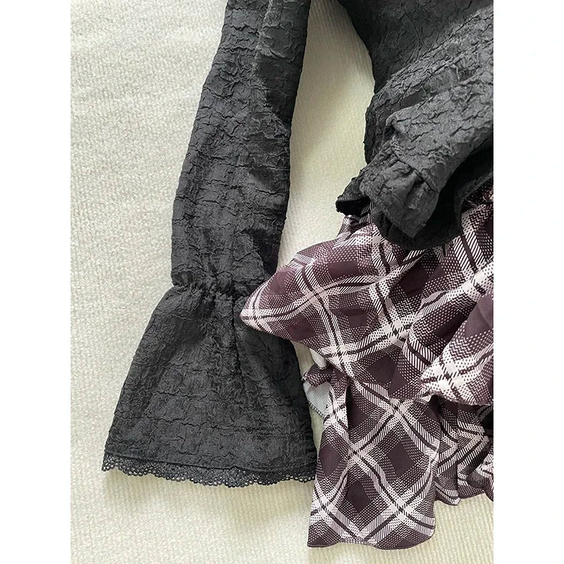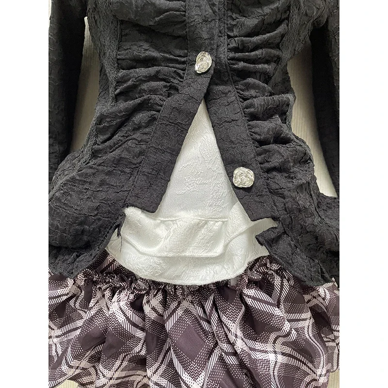 Purpdrank Japanese Gothic Vintage Elegant Women 3 Piece Set Y2k Black Design Cardigan + Chic Tops + Plaid Skirts New Fashion Retro Outfits
