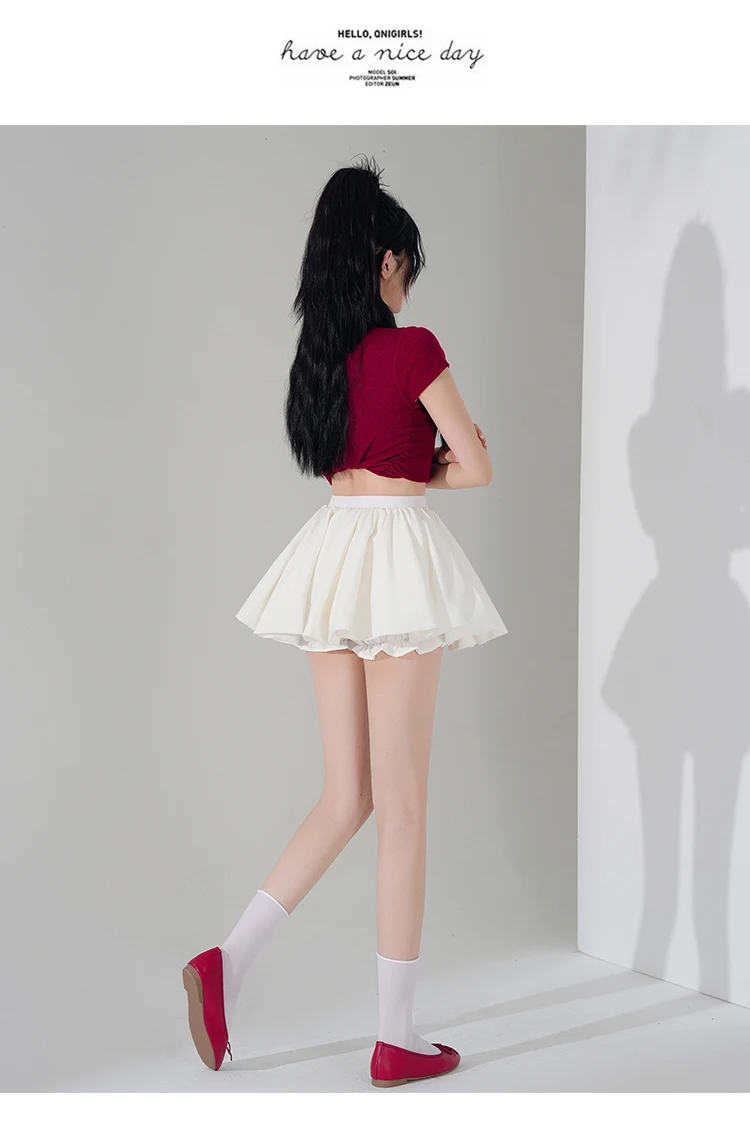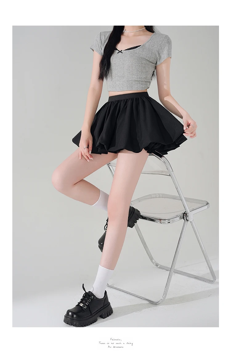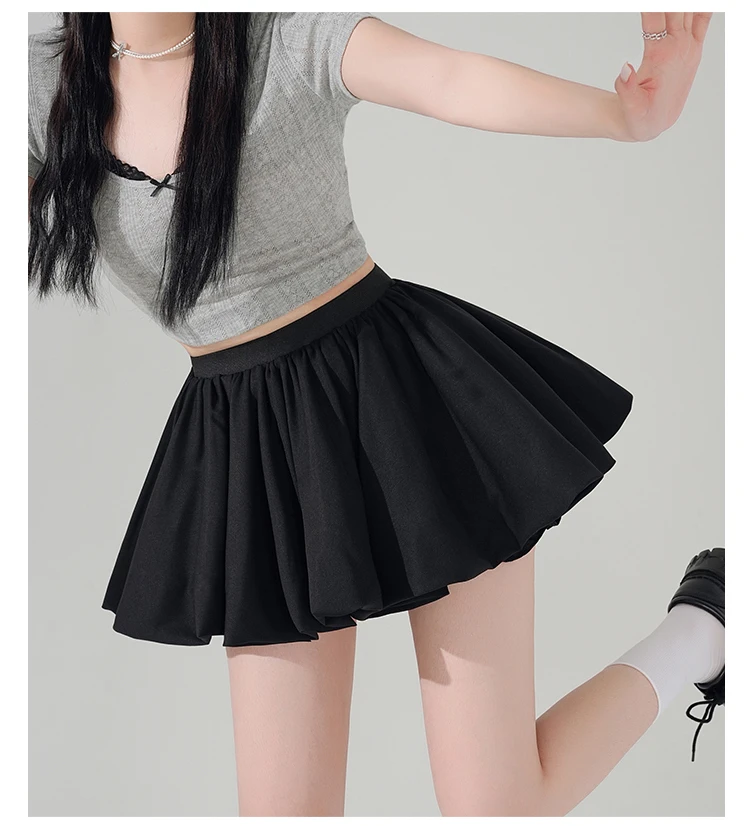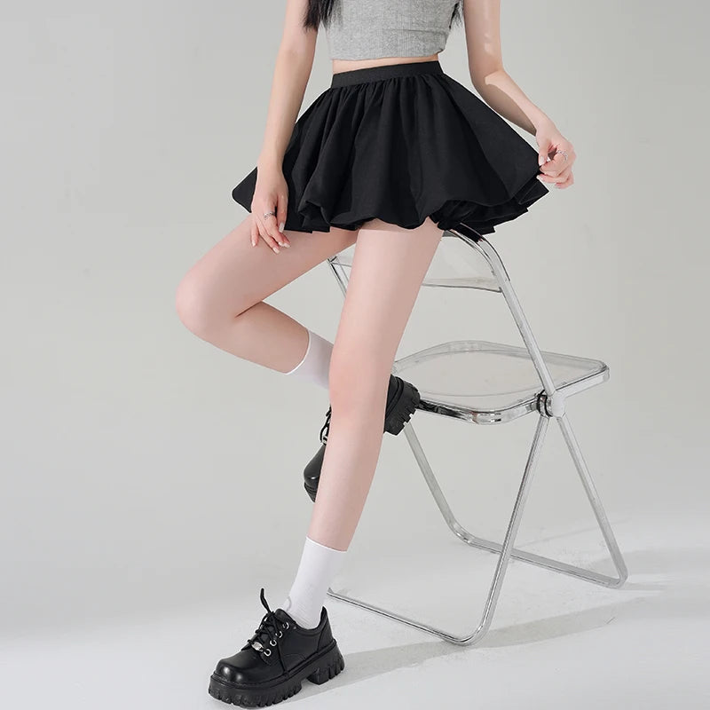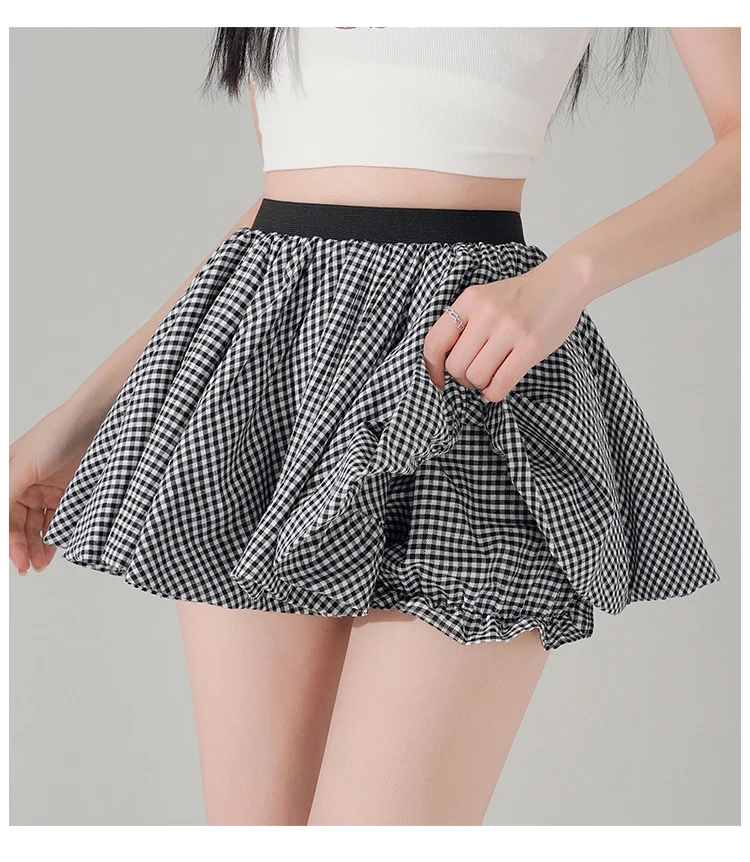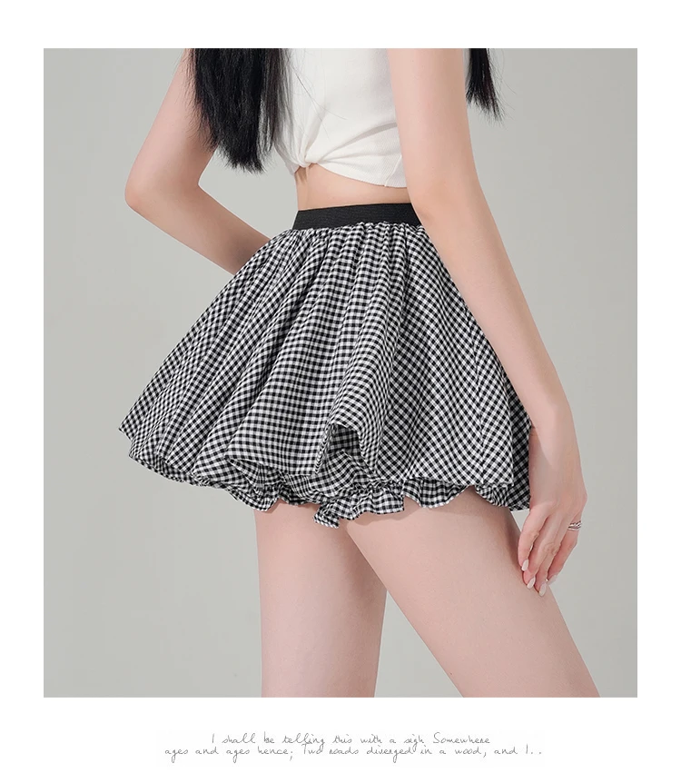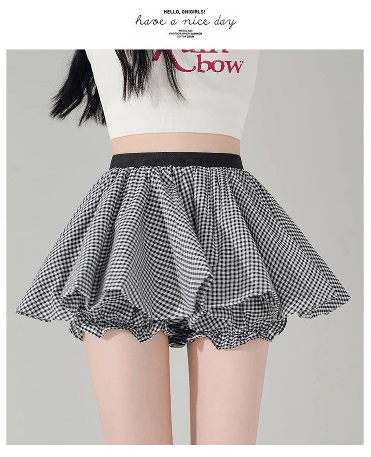 Purpdrank Kawai Plaid Pleated Flower Bud Skirt Women Summer High Waist Slim Fit Mini Skirt Anti-exposure A Word Ultra Puffy Shorts Faldas