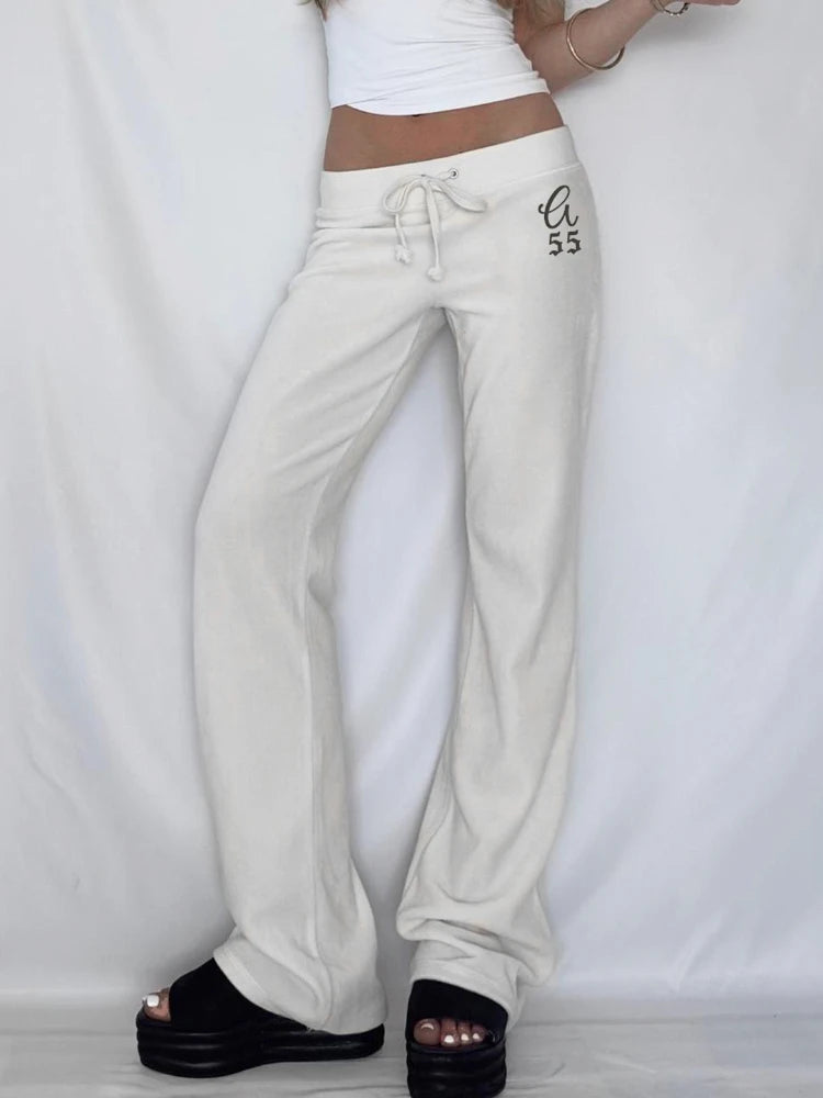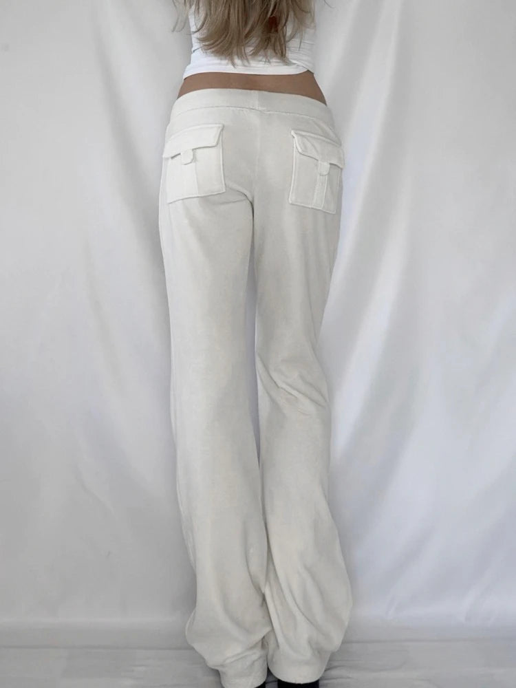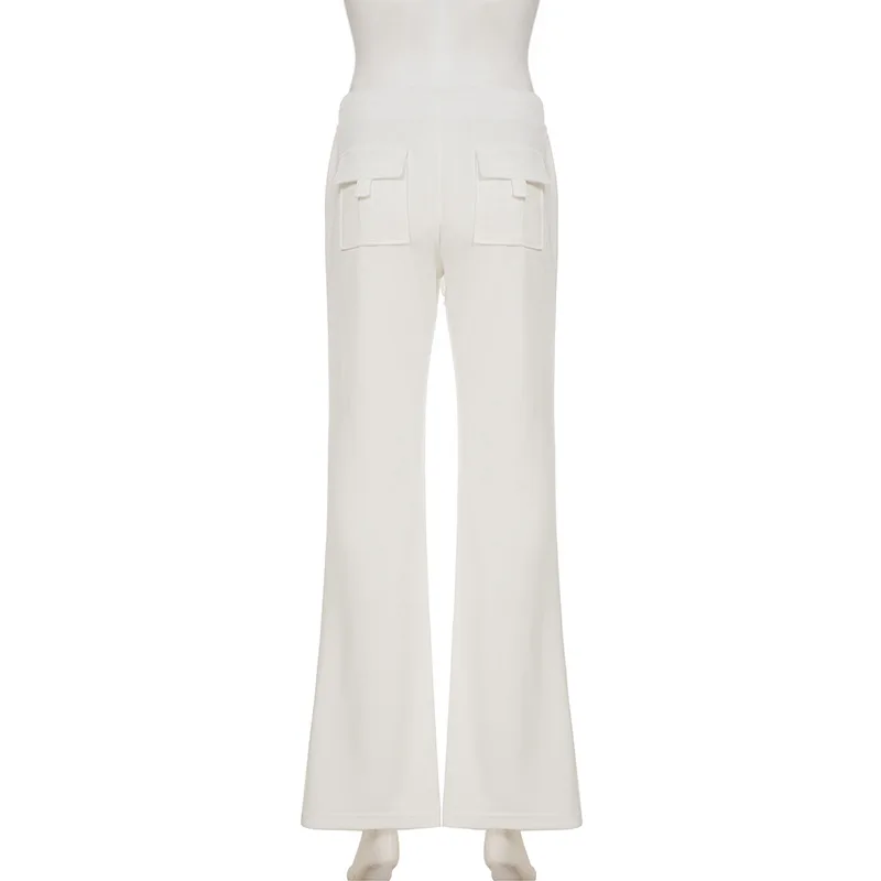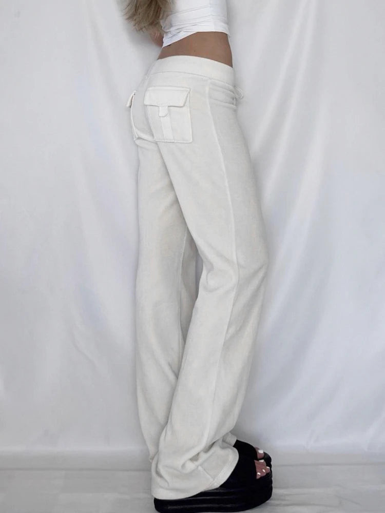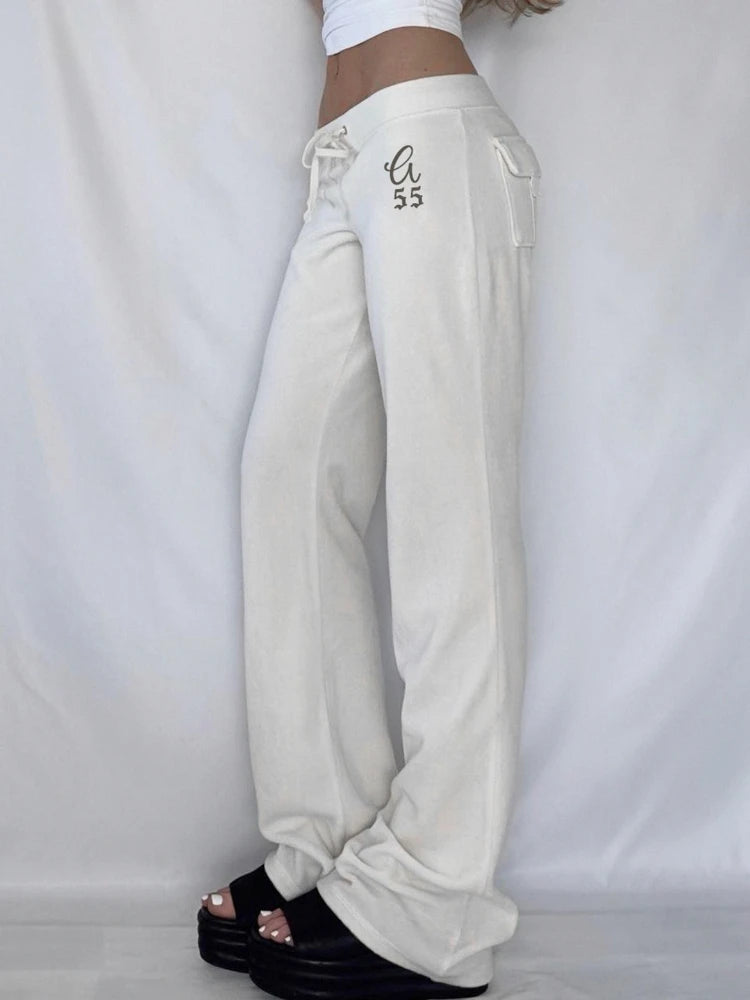 Purpdrank  Korean Casual Low Waist Solid Letter Print Slight Strech All Match Pockets Pants