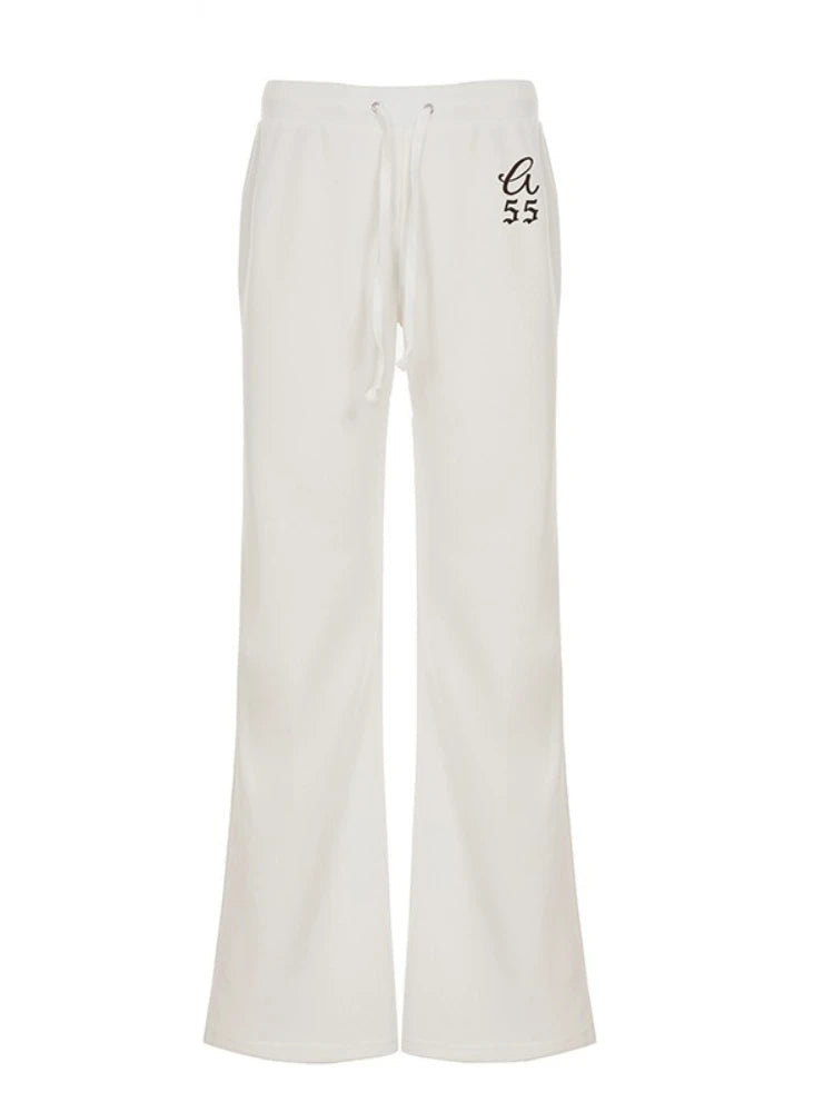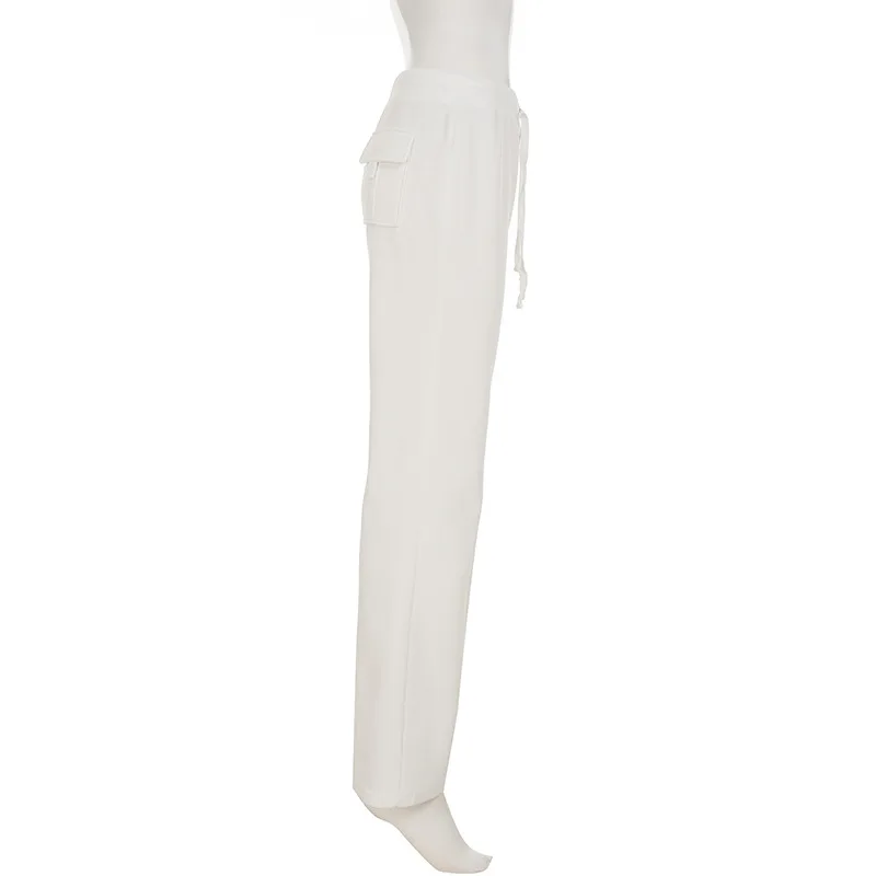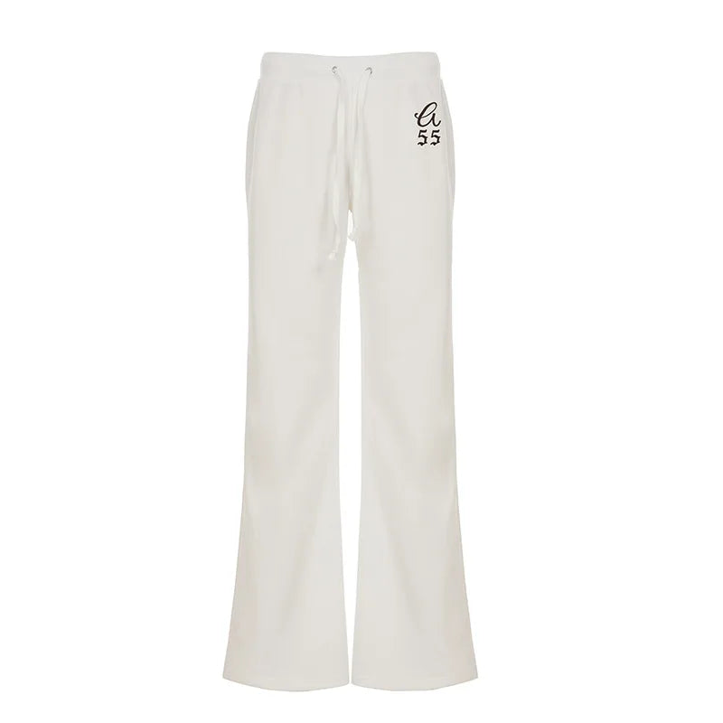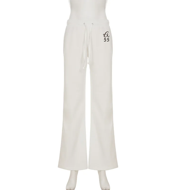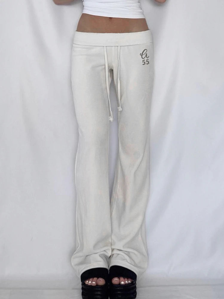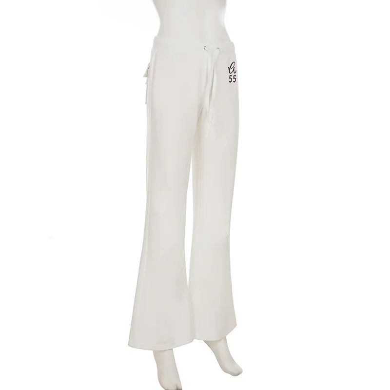 Purpdrank  Korean Casual Low Waist Solid Letter Print Slight Strech All Match Pockets Pants
