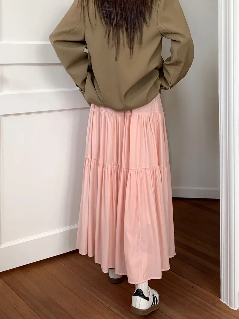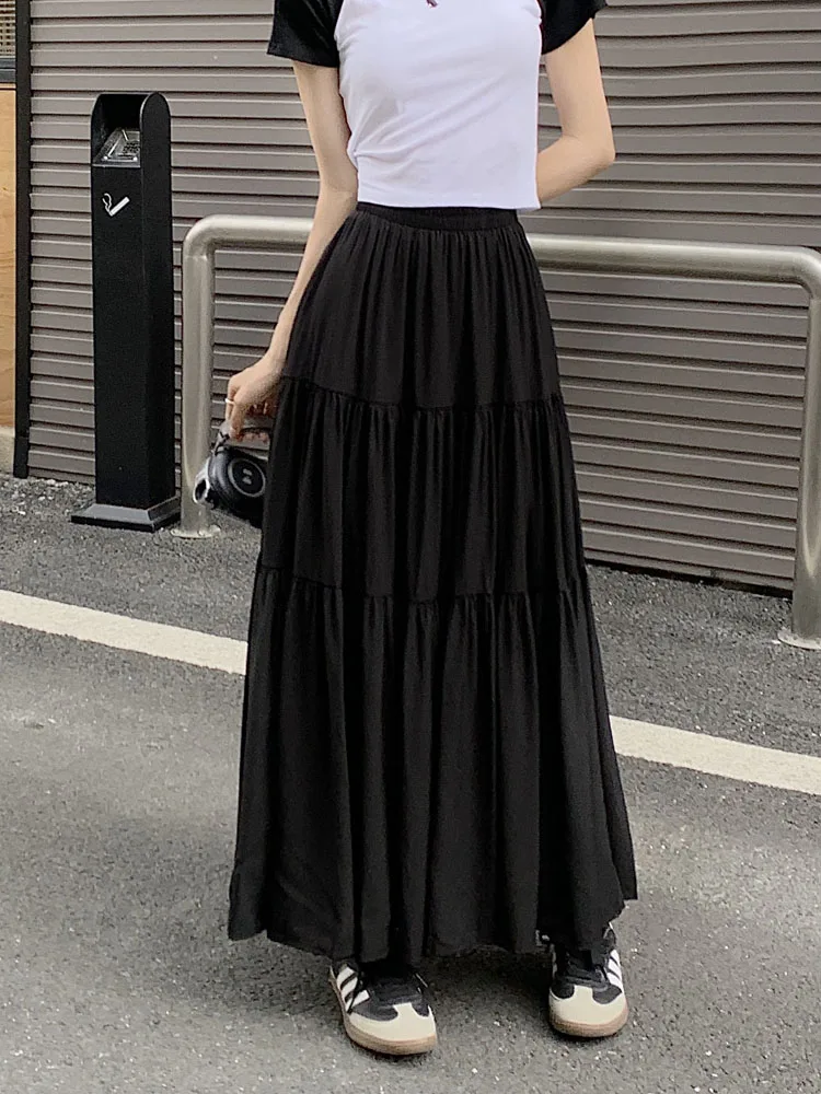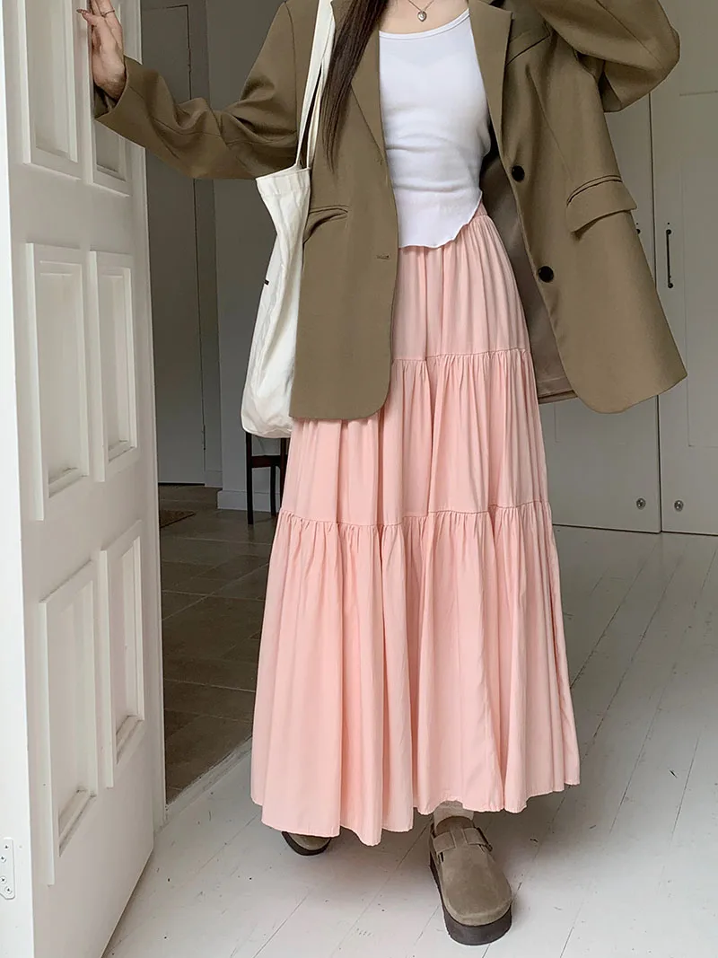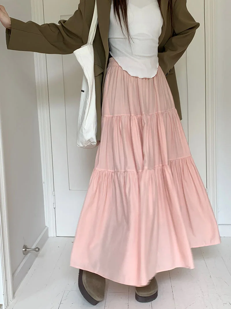Purpdrank Korean Fashion A Line Long Skirt Women Spring High Quality Pleated Skirt Female Chic Elastic High Waist Holiday Faldas Mujer New