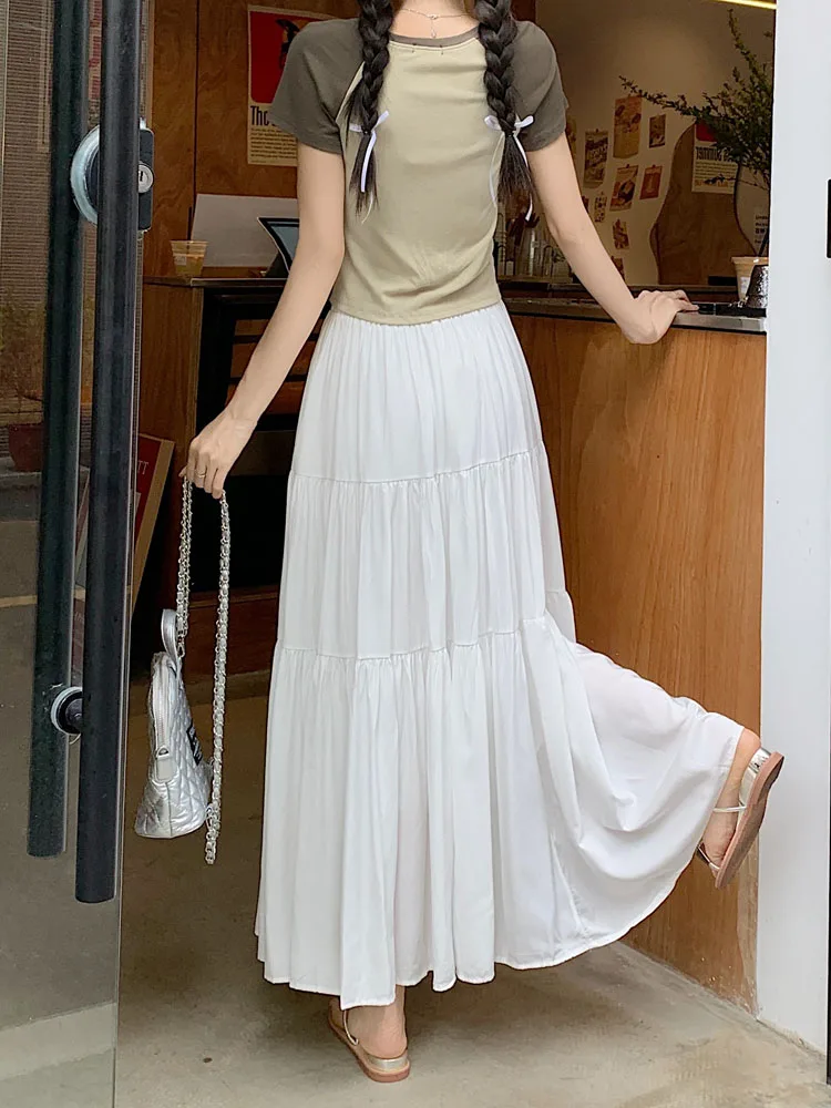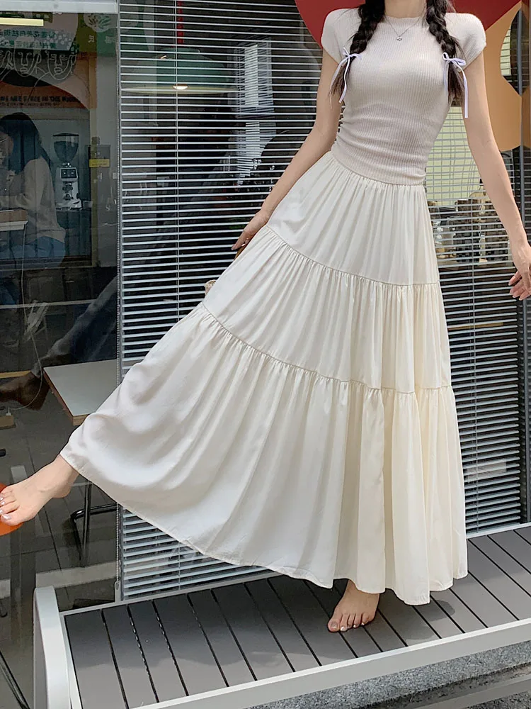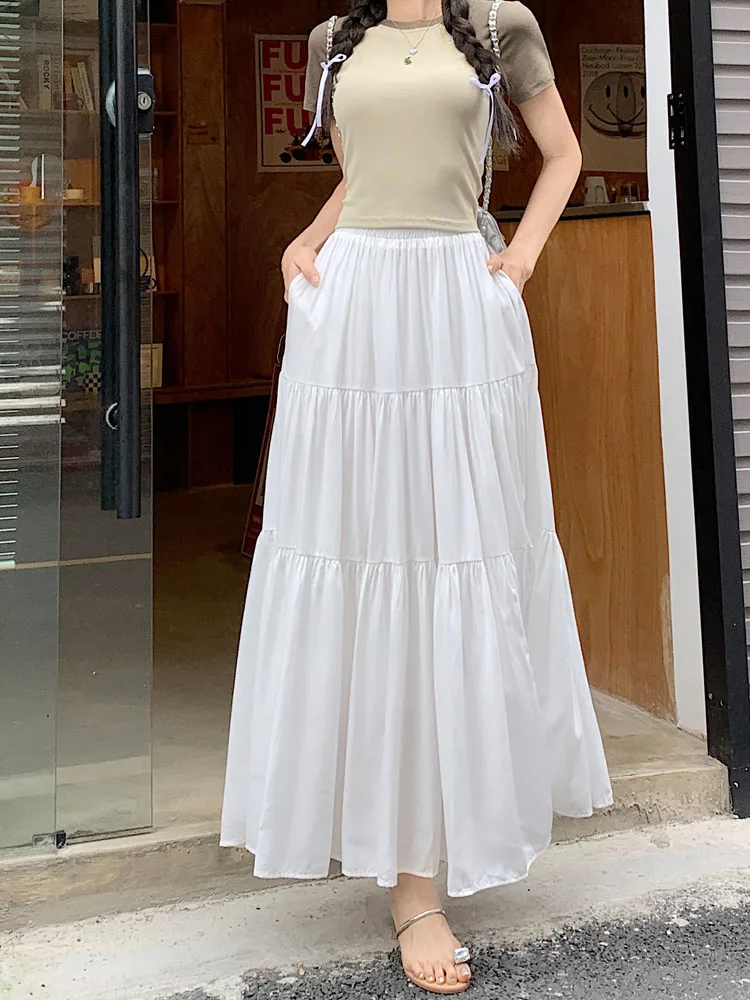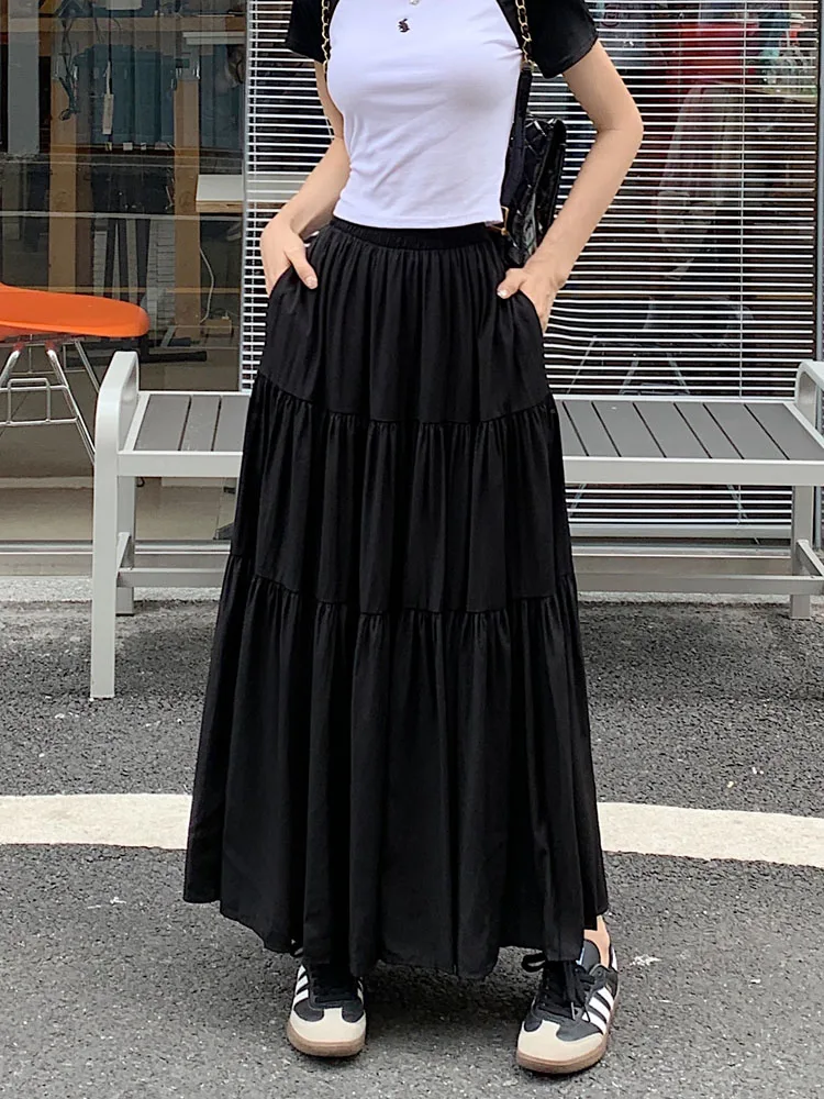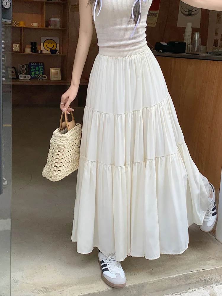 Purpdrank Korean Fashion A Line Long Skirt Women Spring High Quality Pleated Skirt Female Chic Elastic High Waist Holiday Faldas Mujer New