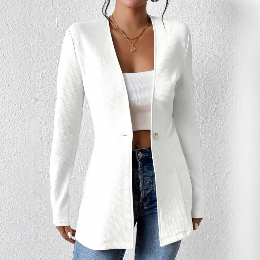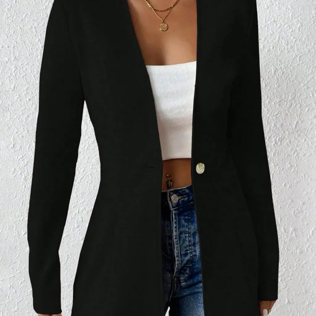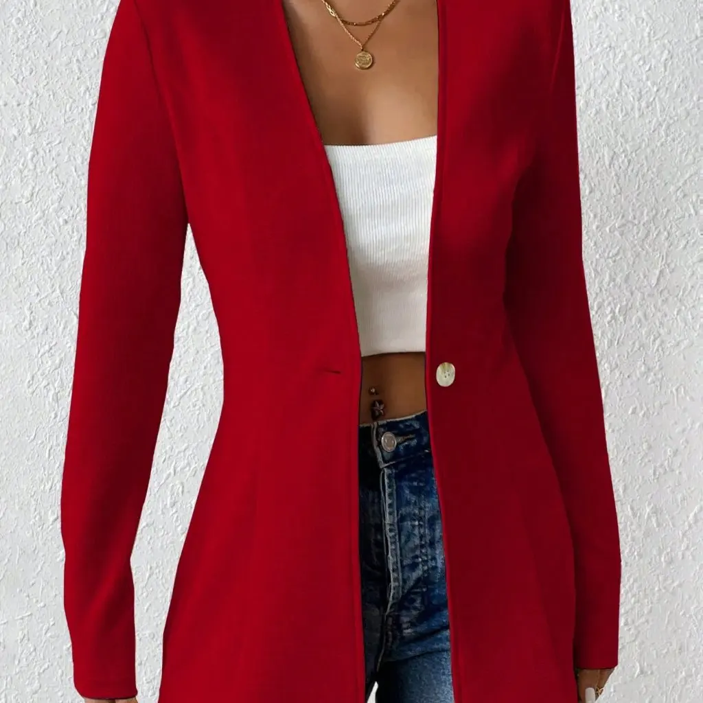 Purpdrank Korean Style V-Neck Long-Sleeved Pure Color Suit Jacket European And American Fashion One-Button Design for Women