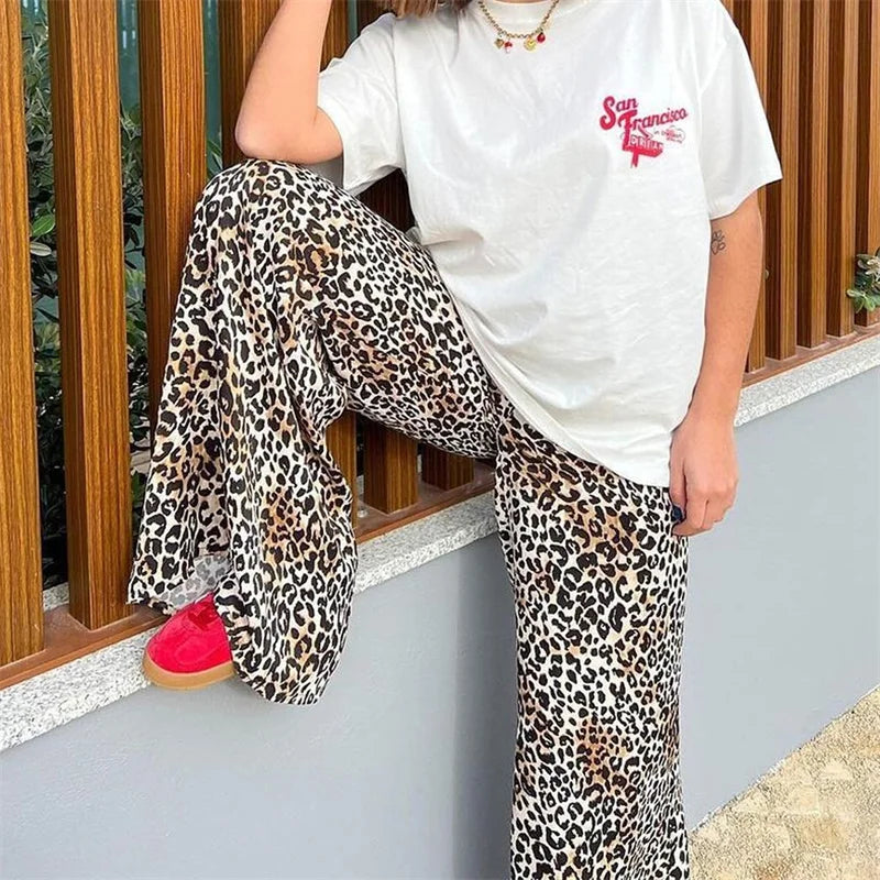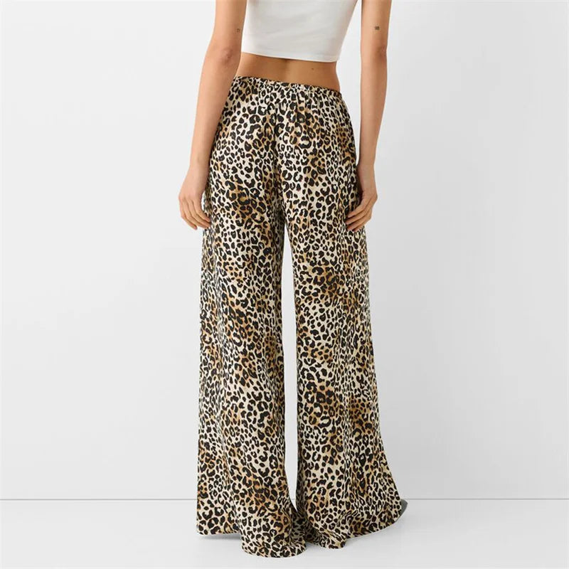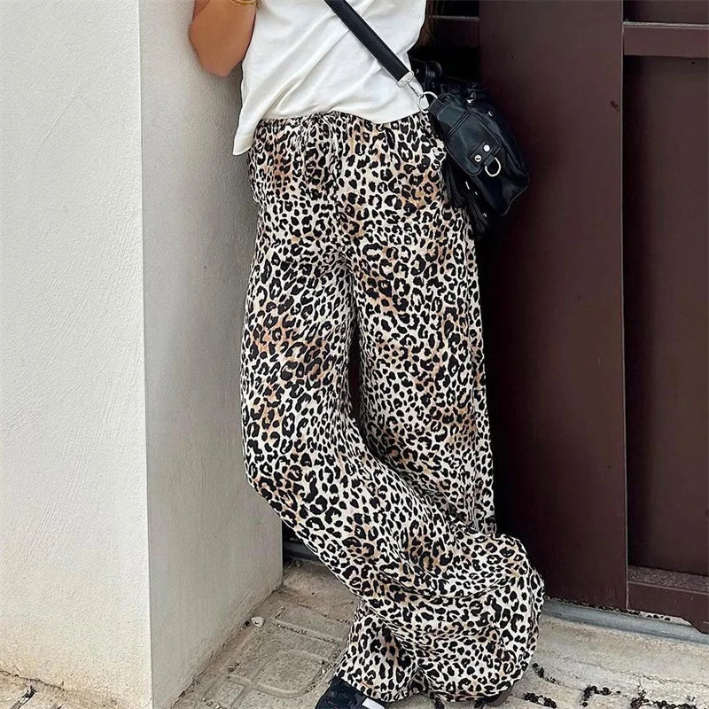 Purpdrank Leopard Pants y2k Clothes Women Sexy Drawstring Elastic Waist Wide Leg Loose Trousers Chic Fashion Clothes Streetwear