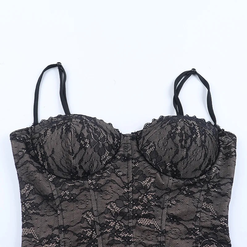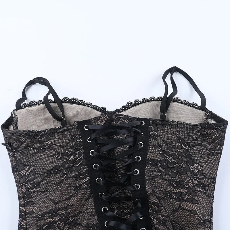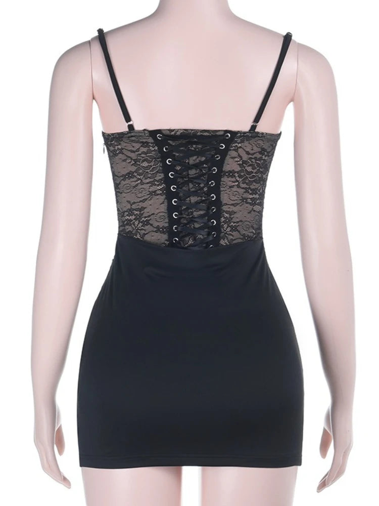 Purpdrank New Sexy Spaghetti Strap Lace-Up Backless Bodycon Mini Dress Women's Sleeveless Lace Patchwork Slim Night Party Dress