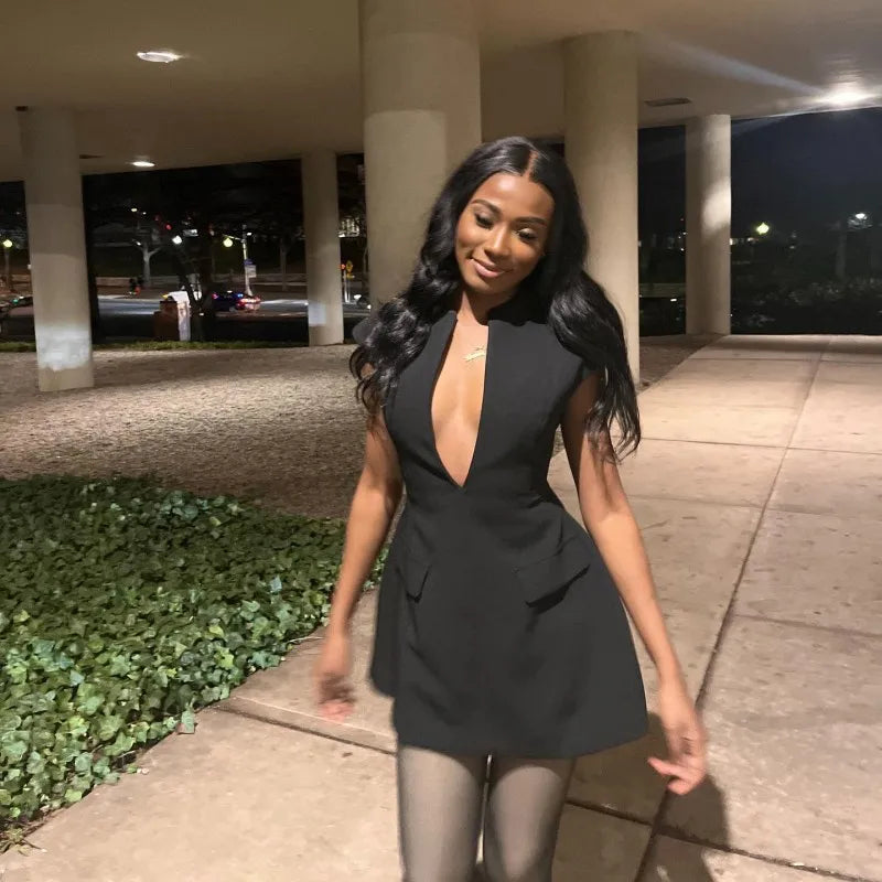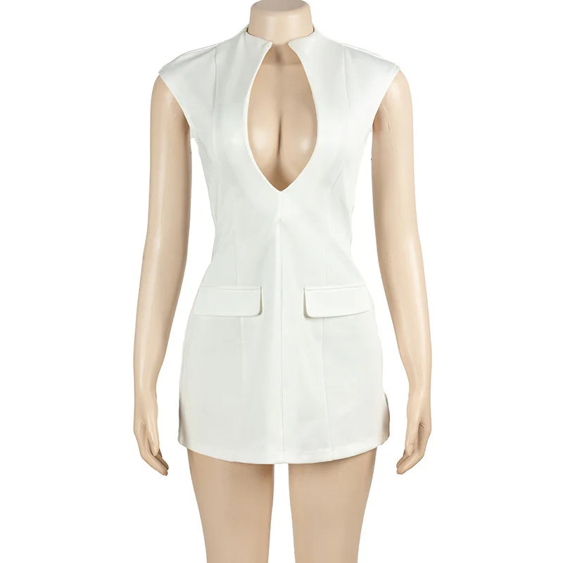 Purpdrank new summer fashion solid color deep V sexy short slim fit women's dress