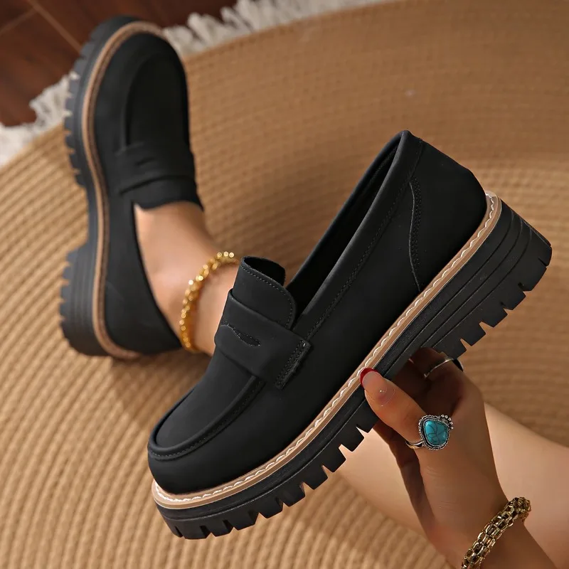 Purpdrank New Women Orthopedic Platform Loafers Non Slip Thick Sole Shoes All Matched Comfortable Walking Loafers for Outdoor Travel
