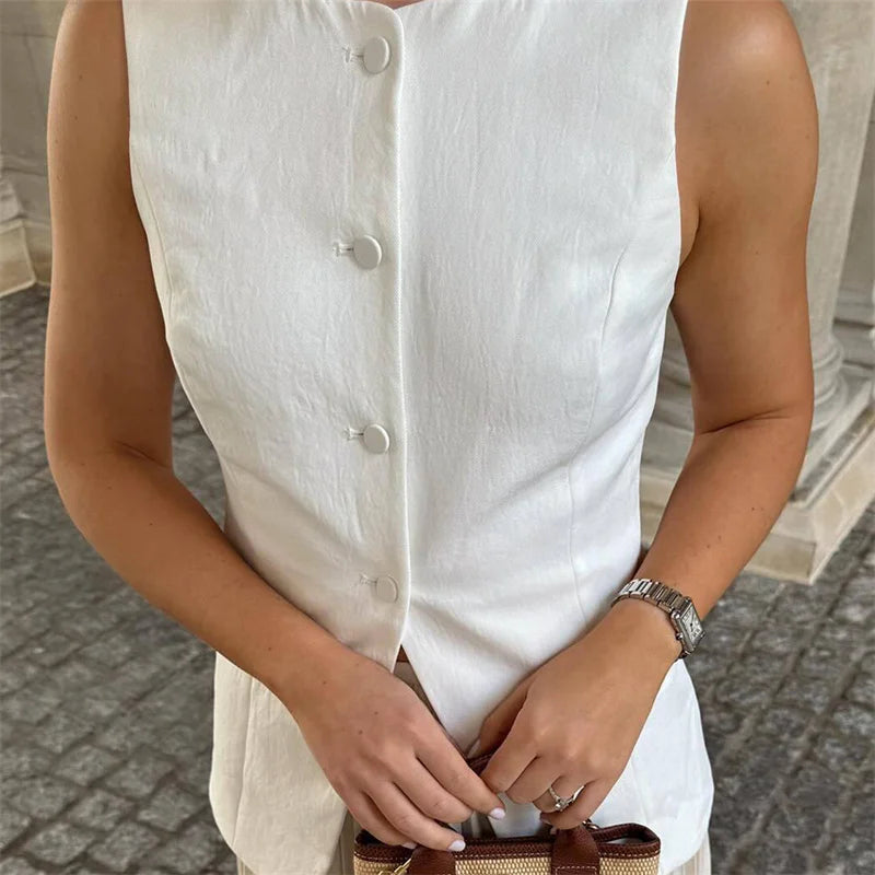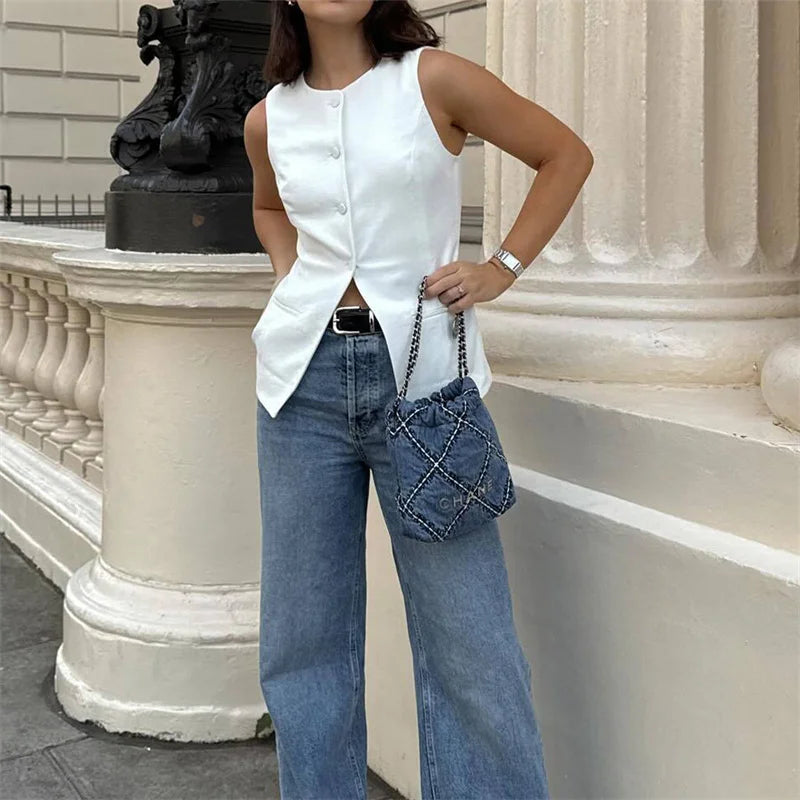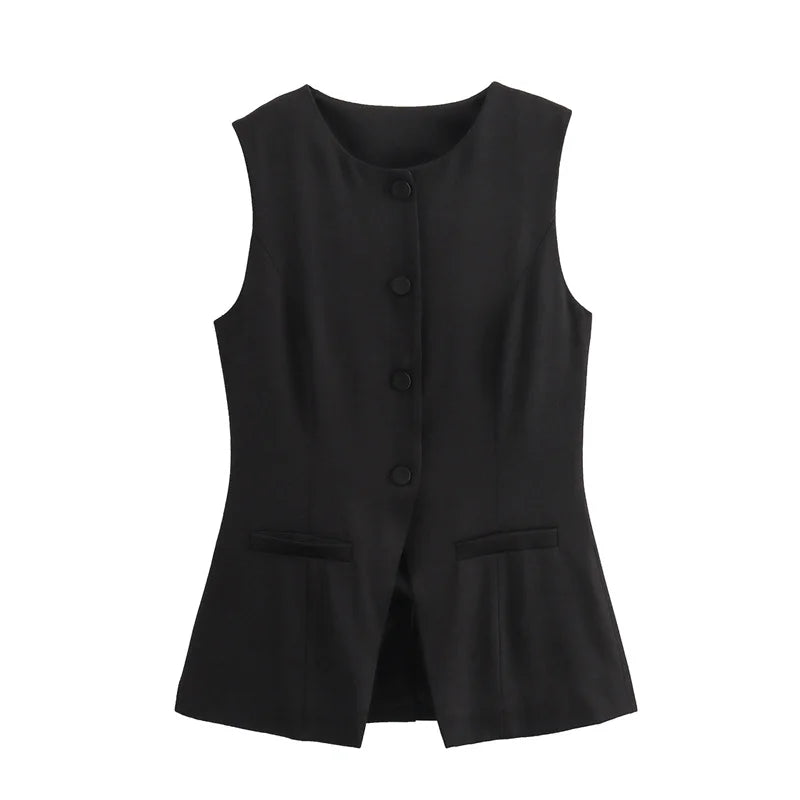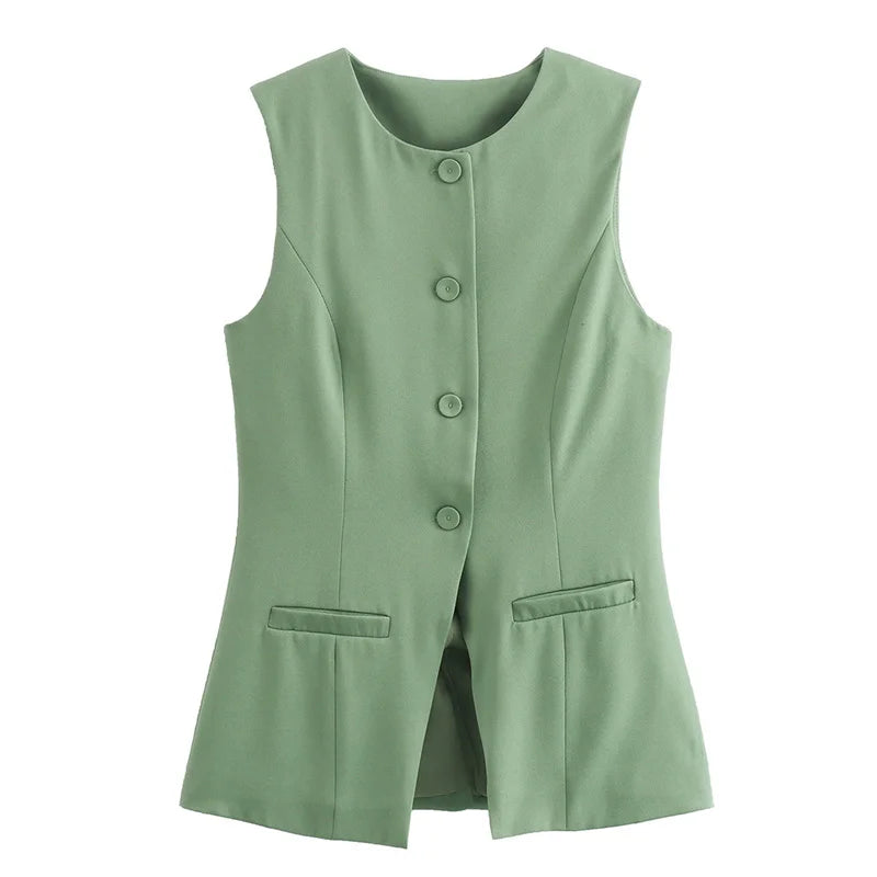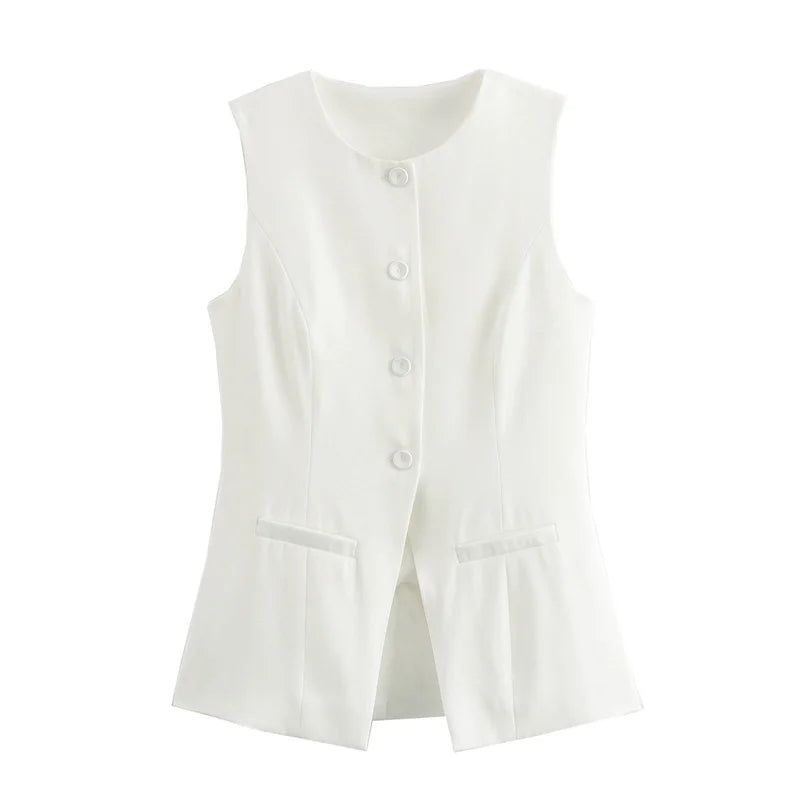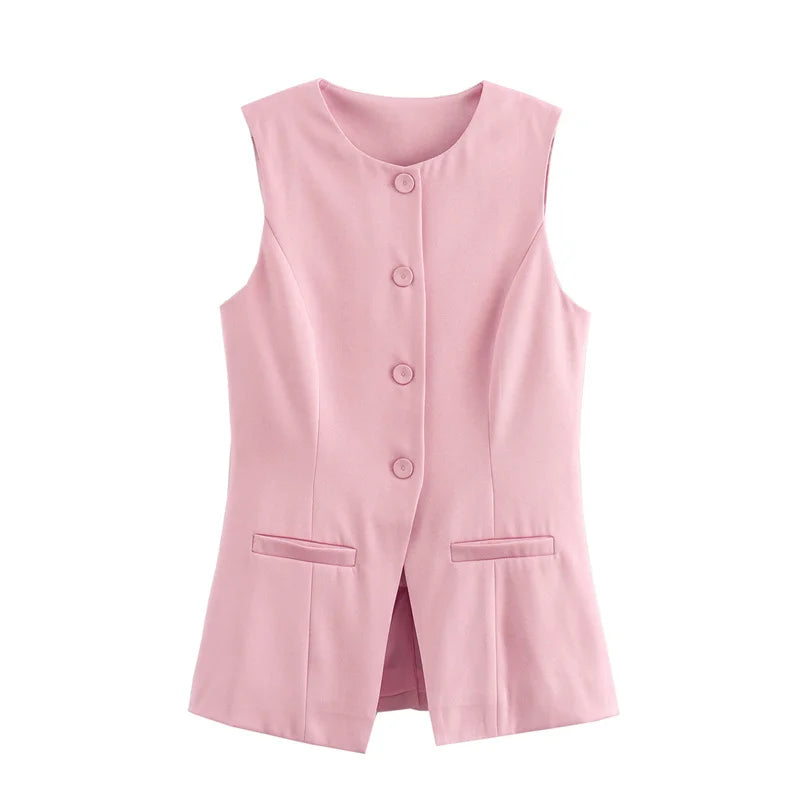 Purpdrank Office Waistcoat y2k Clothes Women Solid Color Round Neck Single Breasted Sleeveless Suit Vest Elegant Tops Streetwear