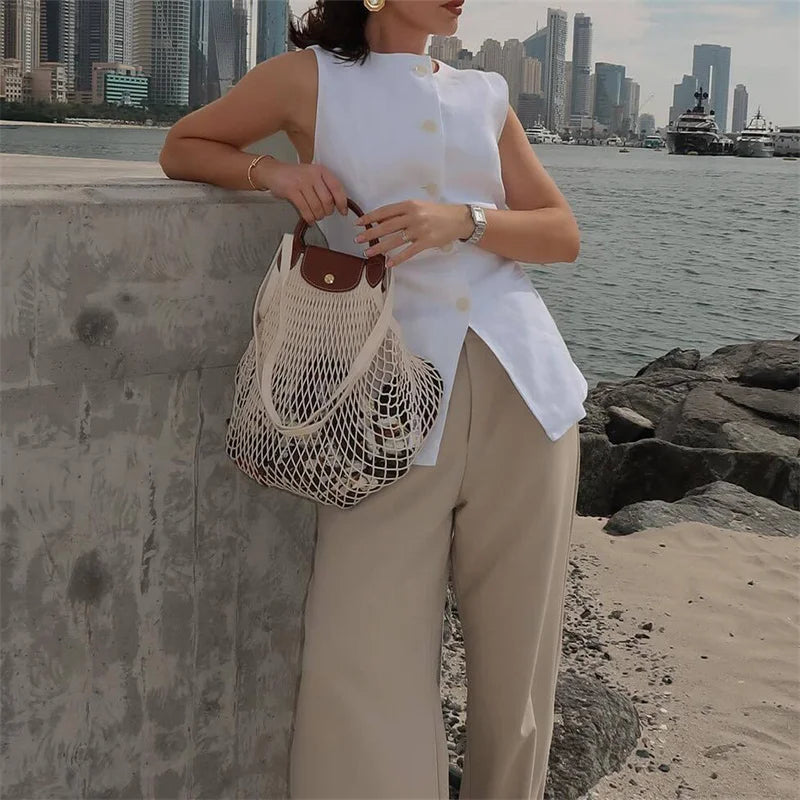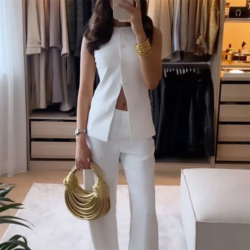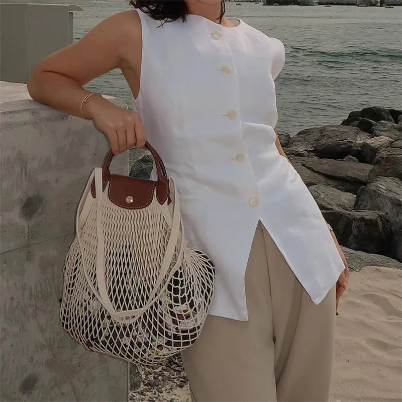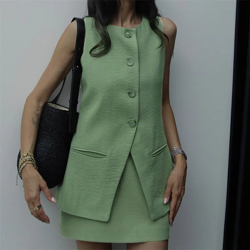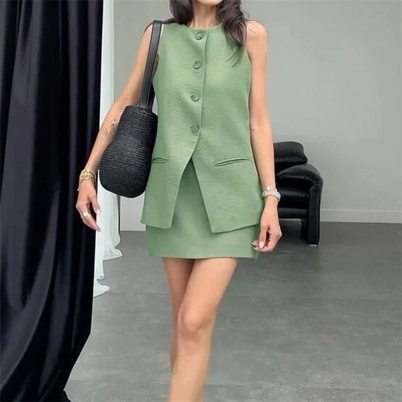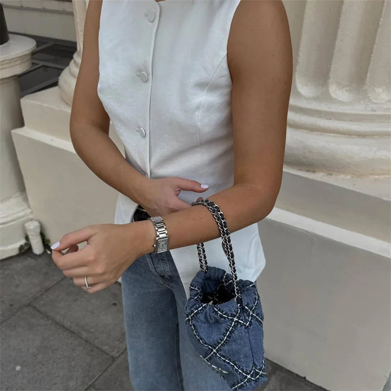 Purpdrank Office Waistcoat y2k Clothes Women Solid Color Round Neck Single Breasted Sleeveless Suit Vest Elegant Tops Streetwear