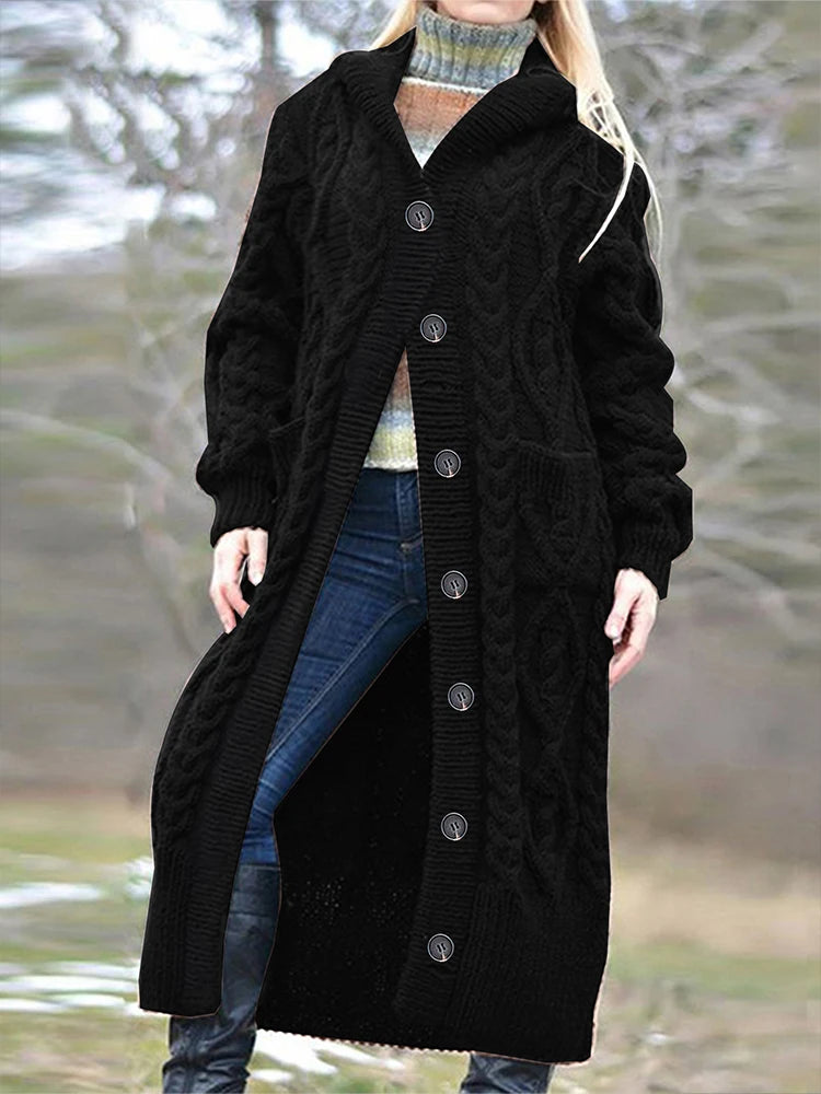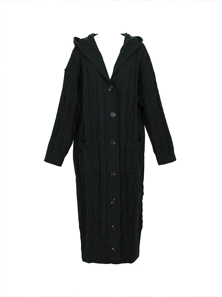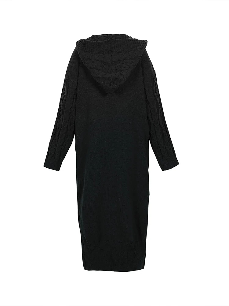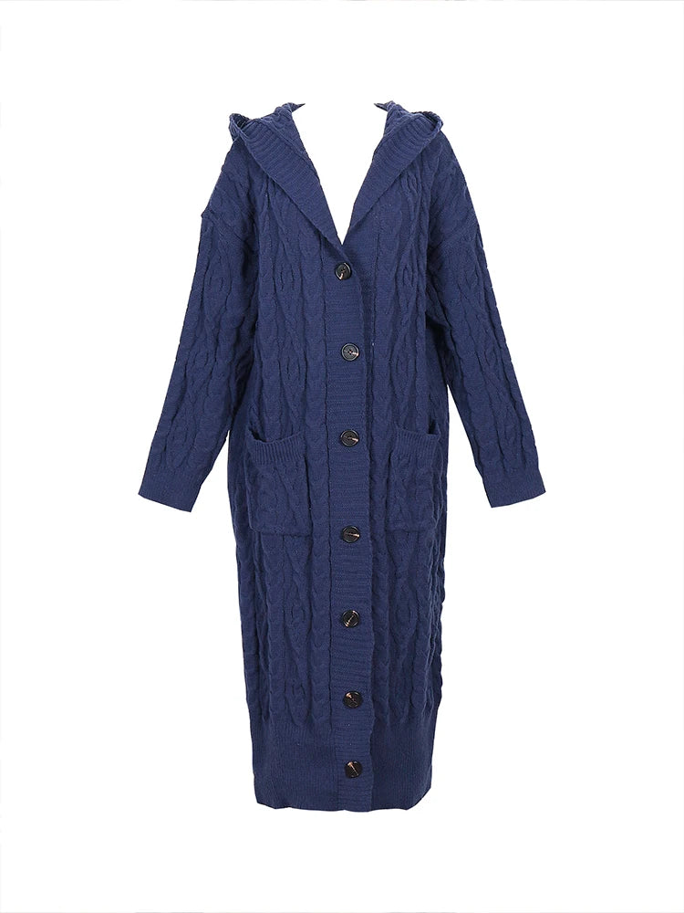 Purpdrank plus Size Satin Knitted Cardigan Long-Sleeved Hooded Jumper Single Row of Buttons Elegant Autumn Winter Women's Best Choice