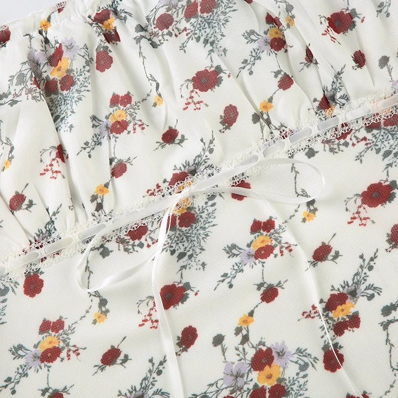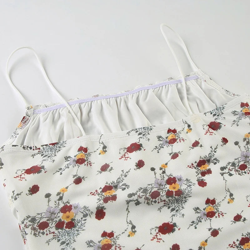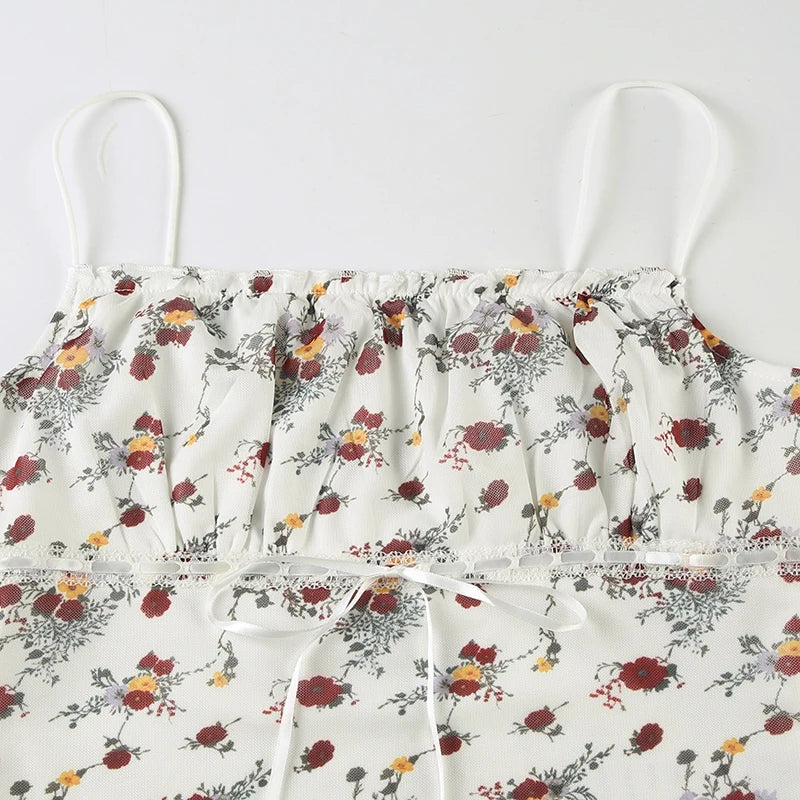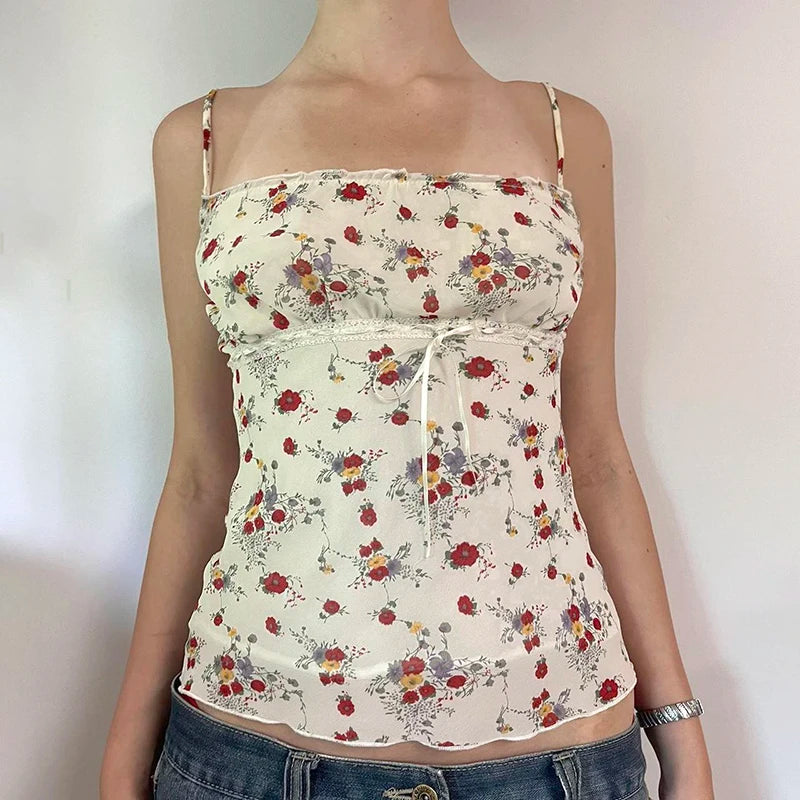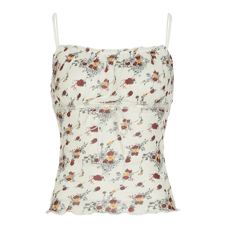 Purpdrank Prairie Chic Summer Women Floral Camisole Y2K Aesthetic Lace-up Sleeveless Crop Top Cute Streetwear Vintage Tank Top