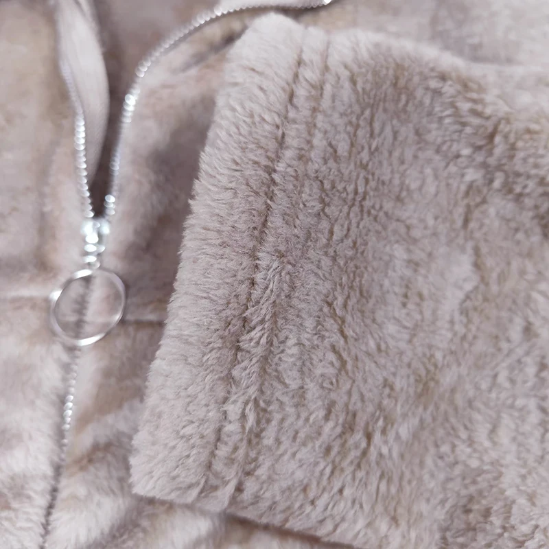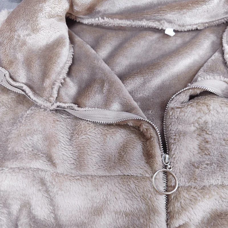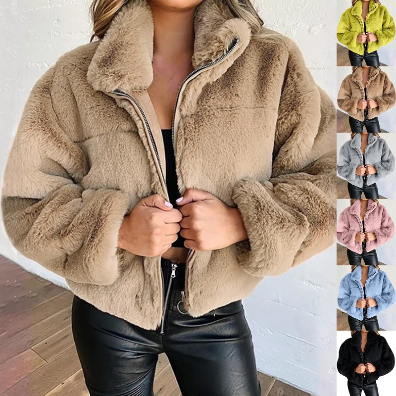 Purpdrank Rabbit Fur Imitation Fur Zipper Plush Warm Jacket Long Sleeve Short Coat Winter Women Crop Top Casual Solid New In Outwear Pink