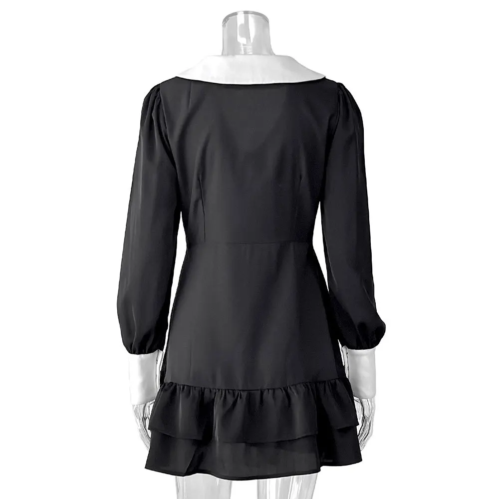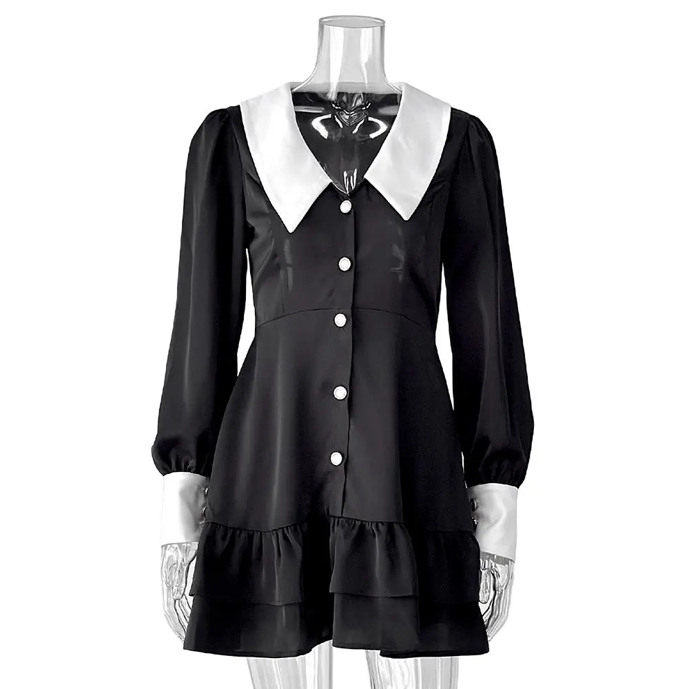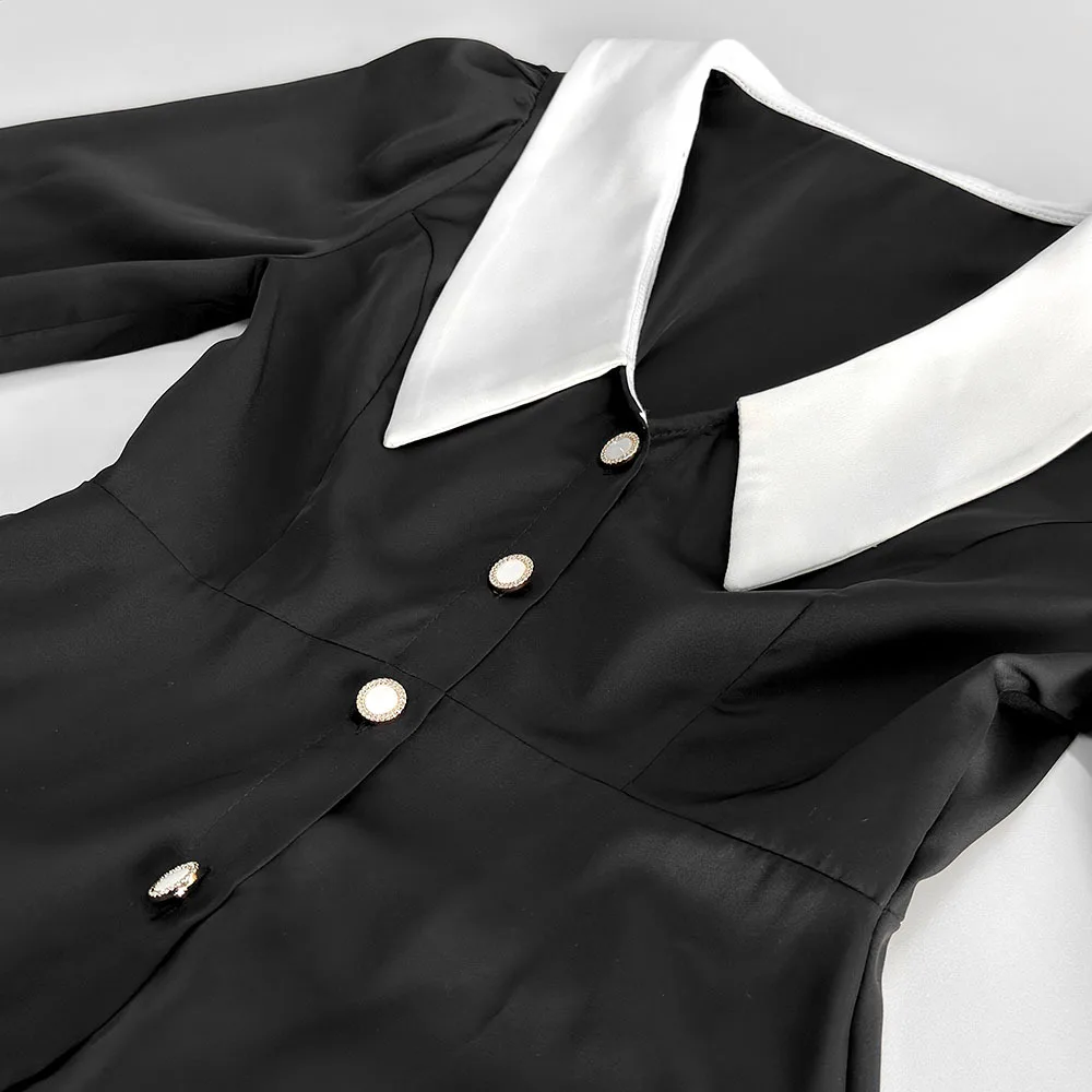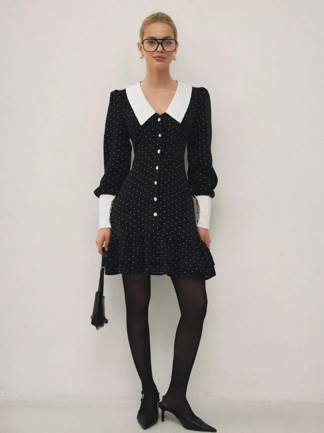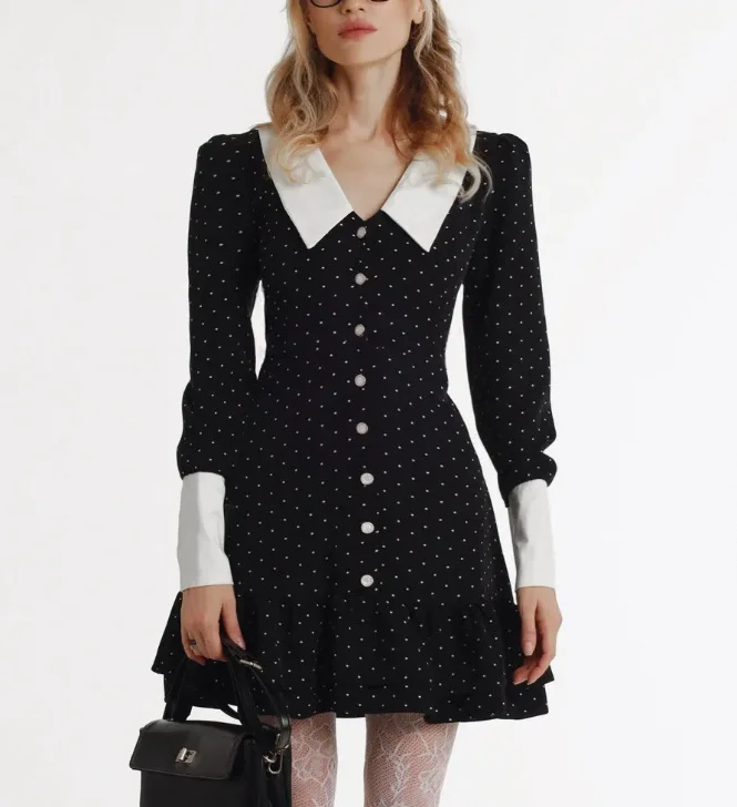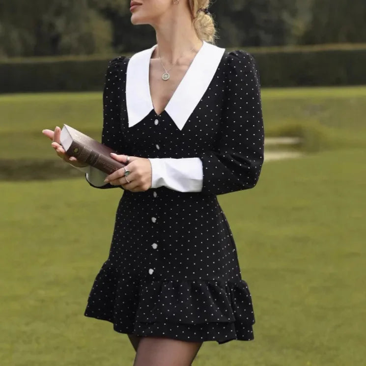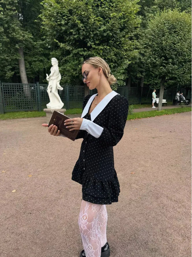 Purpdrank Romantic Sweet College Style Fashion Color Matching Lapel Retro Button Polka Dot A Word Dress Women's Clothing Niche Temperament