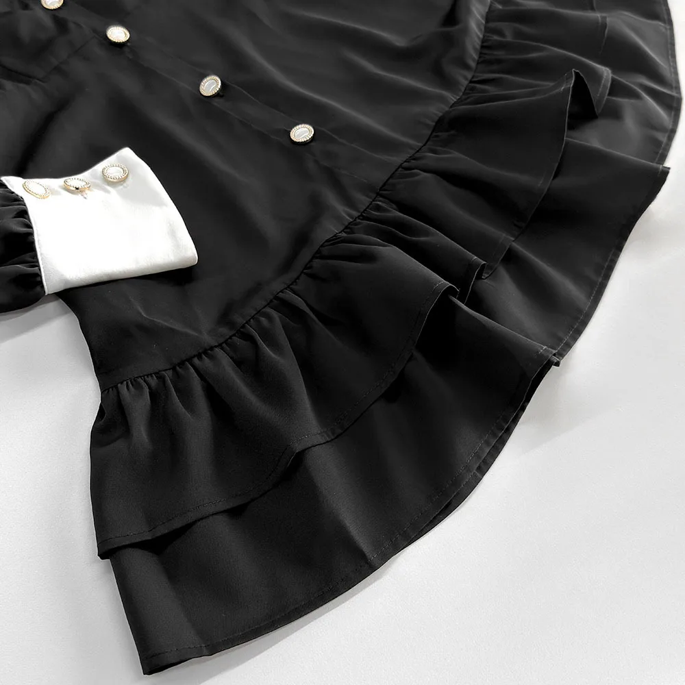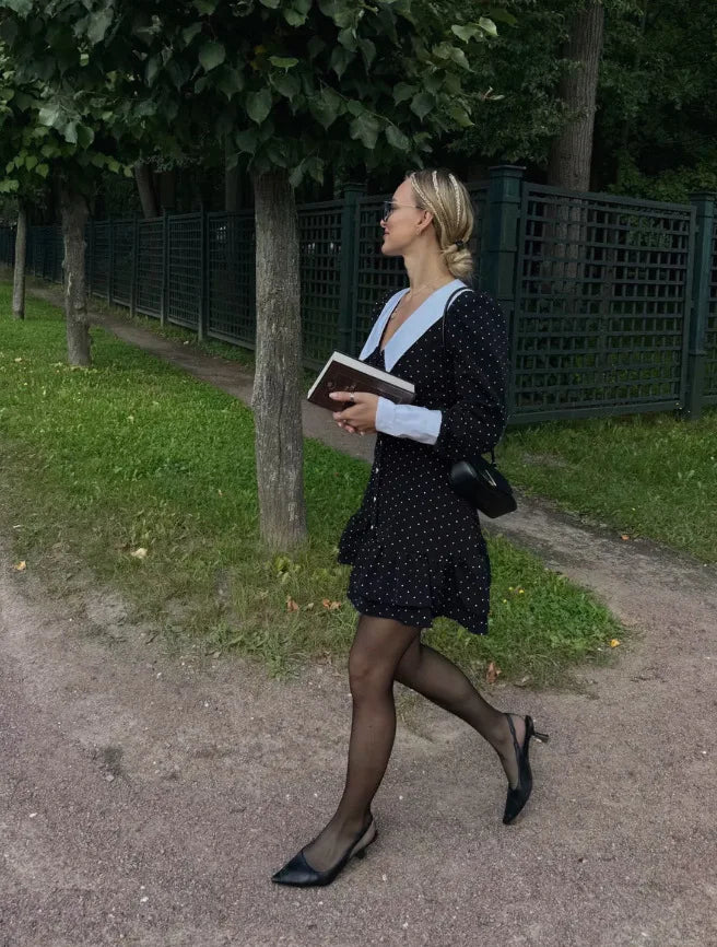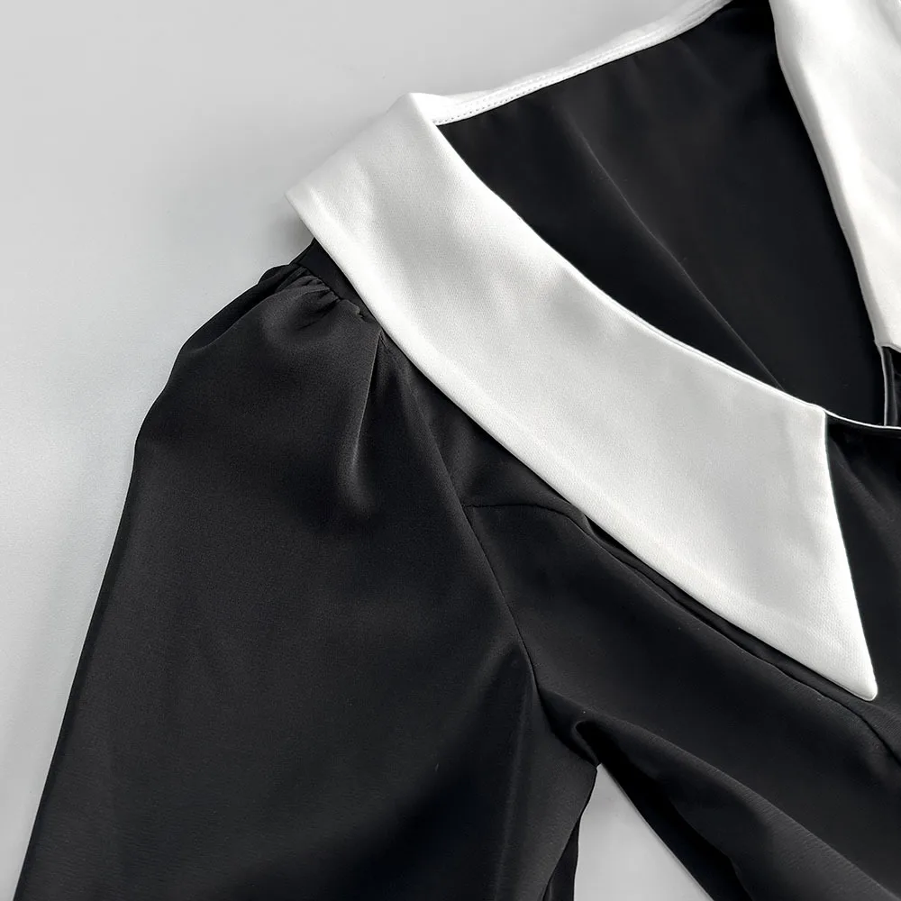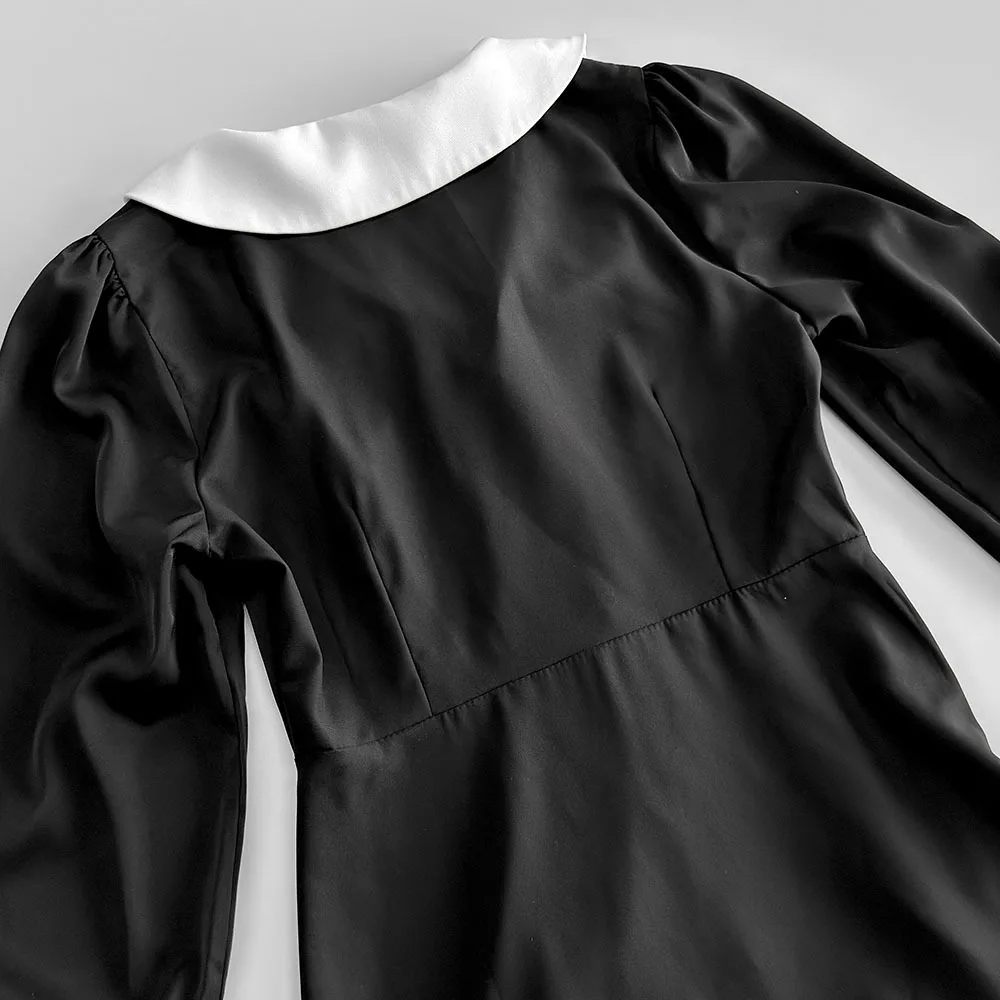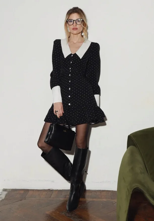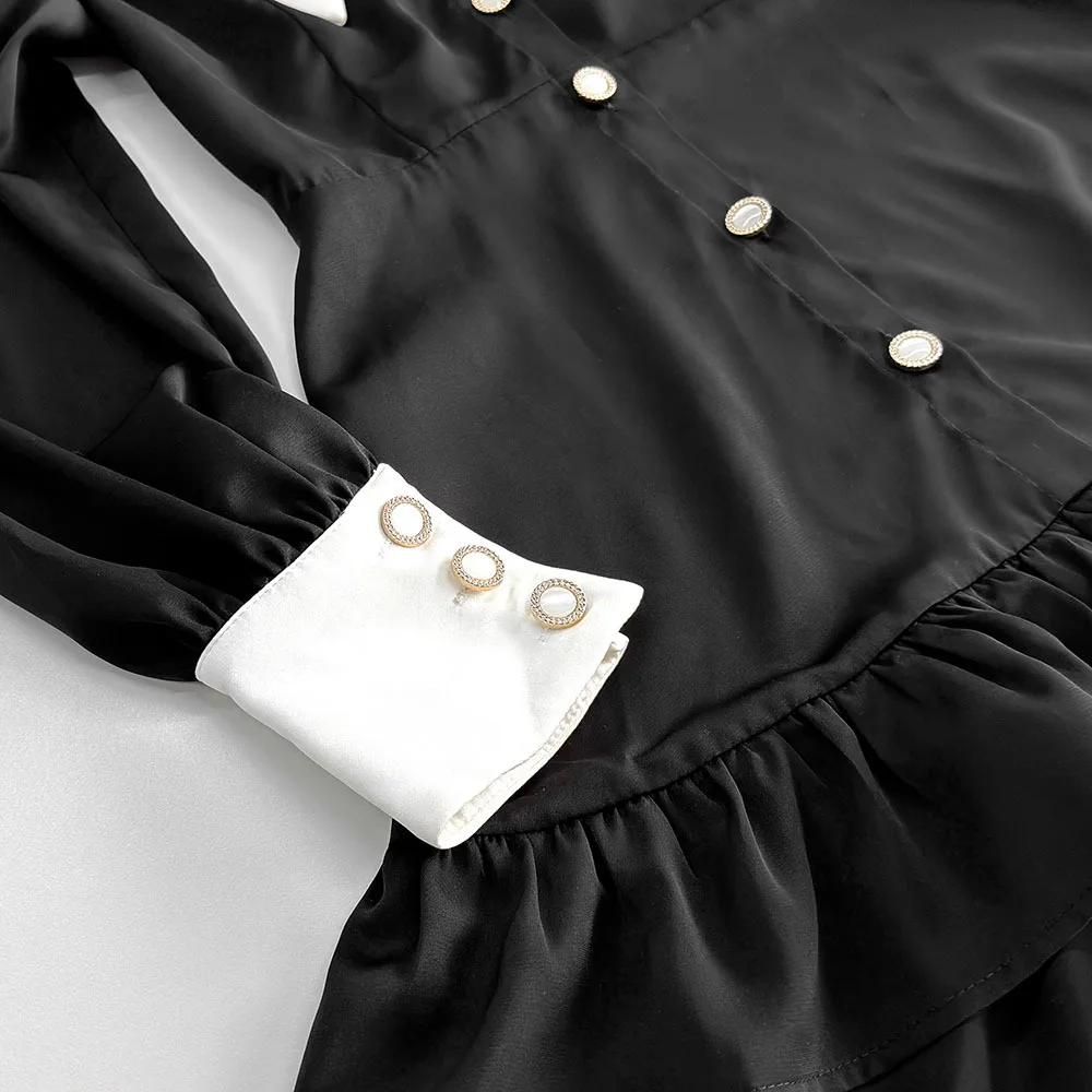 Purpdrank Romantic Sweet College Style Fashion Color Matching Lapel Retro Button Polka Dot A Word Dress Women's Clothing Niche Temperament