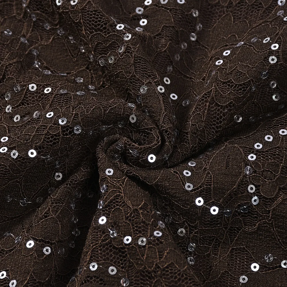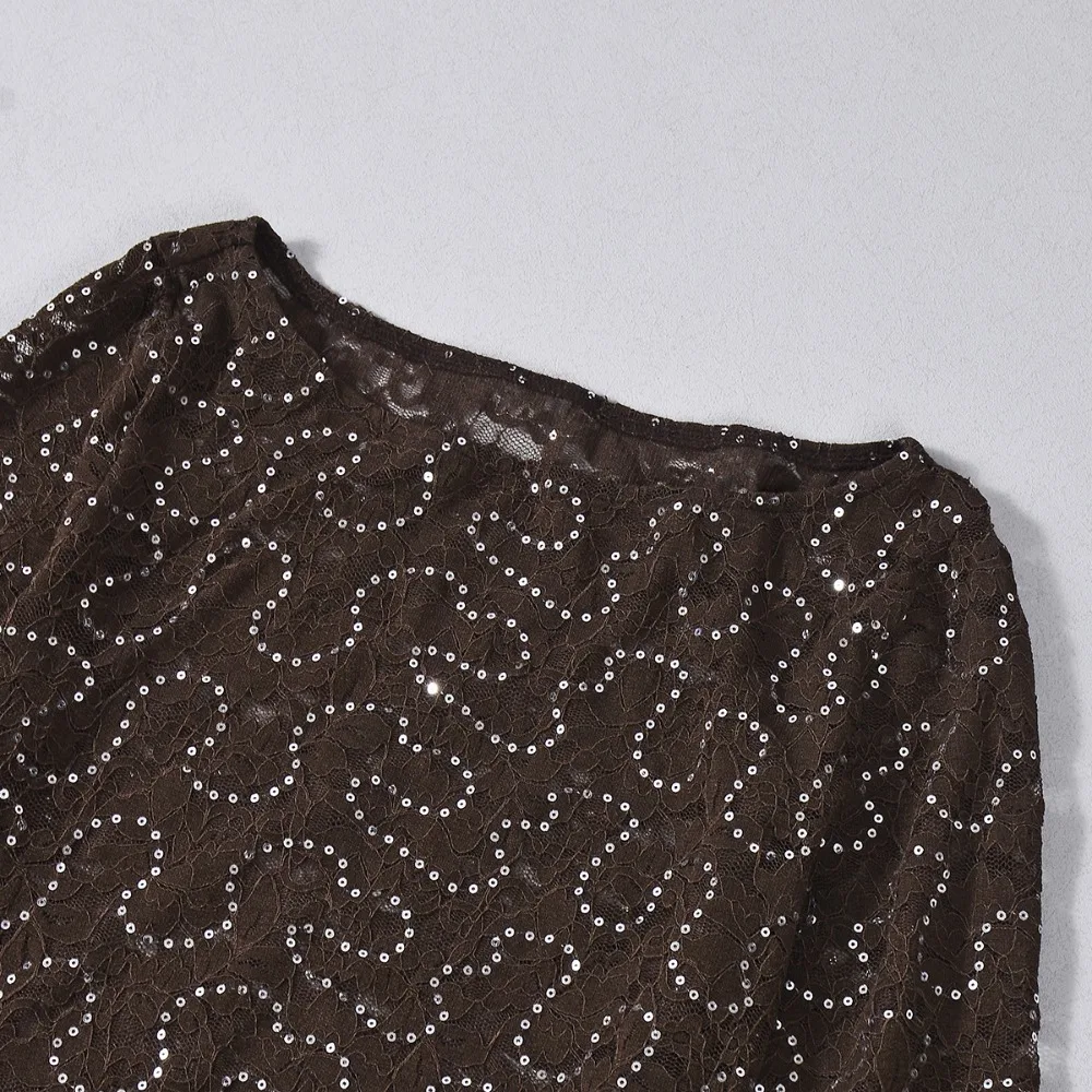 Purpdrank Sexy Bodycon Lace & Sequin 2 Piece Set for Women Fashion O Neck Long Sleeve Bodysuit and Mini Pencil Skirt Matching Outfit