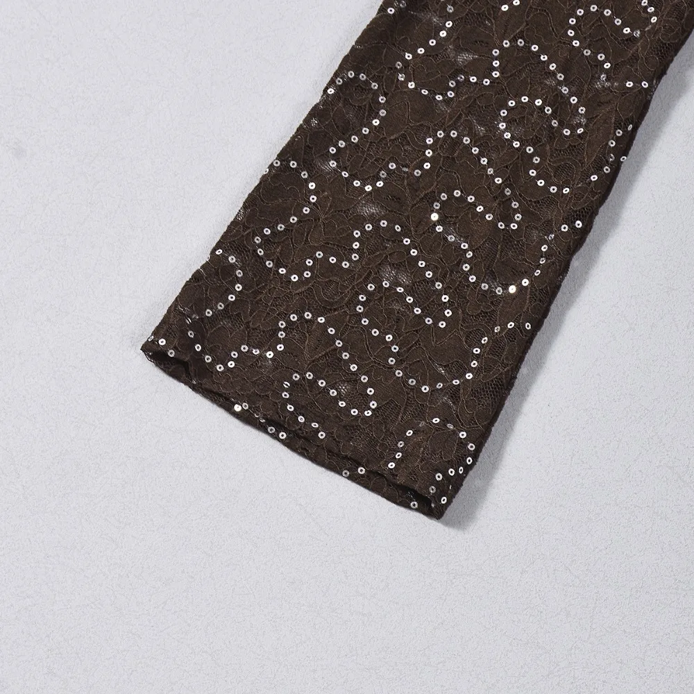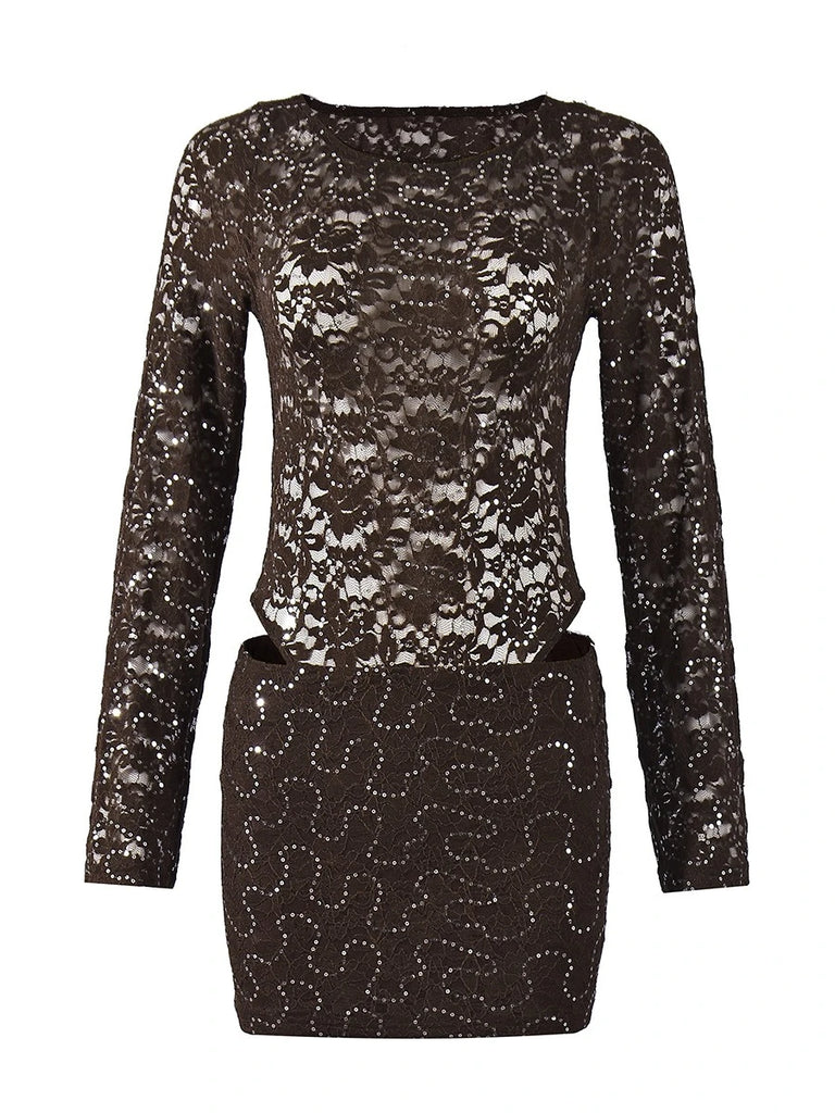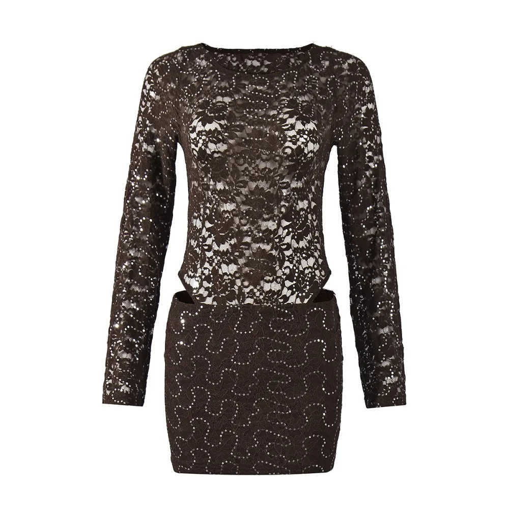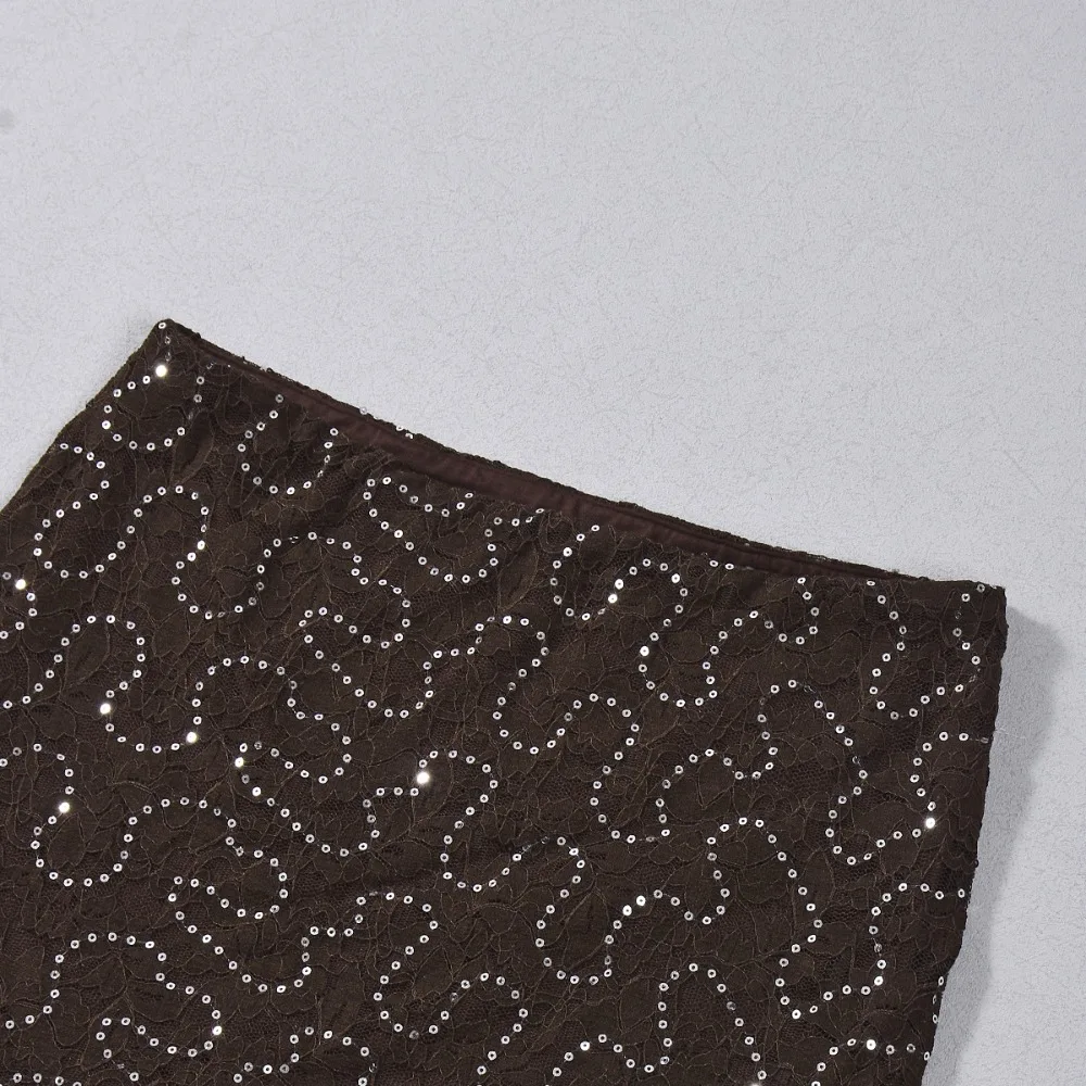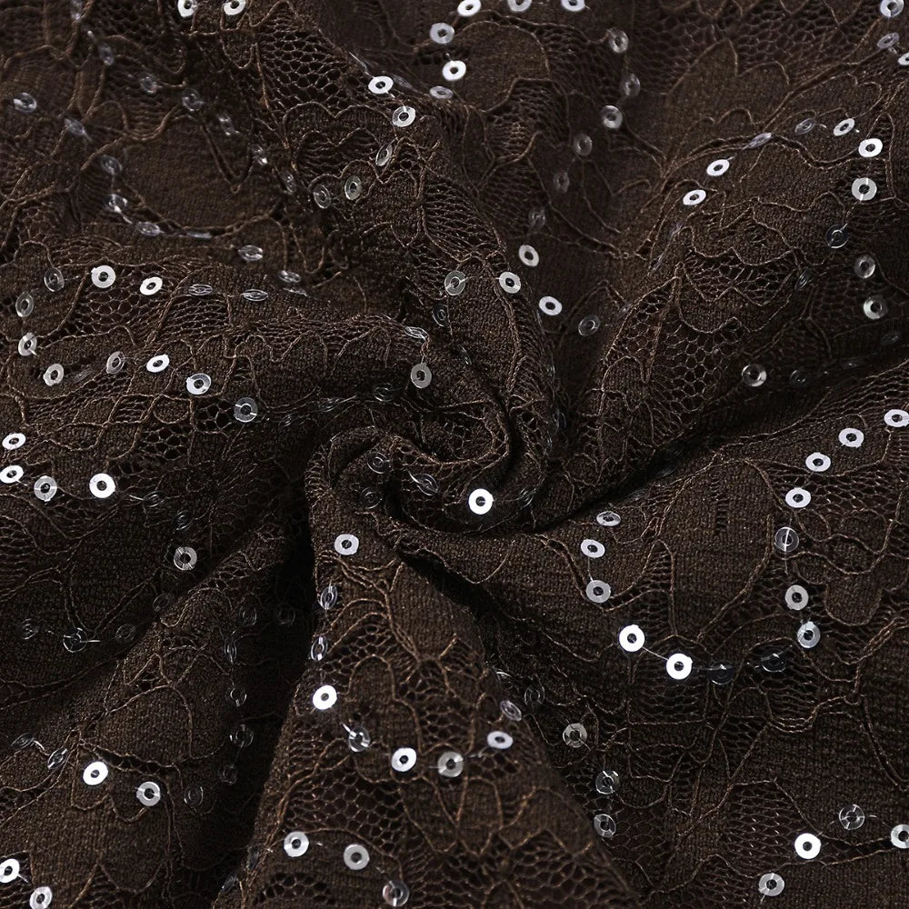 Purpdrank  Sexy Bodycon Lace & Sequin 2 Piece Set for Women Fashion O Neck Long Sleeve Bodysuit and Mini Pencil Skirt Matching Outfit