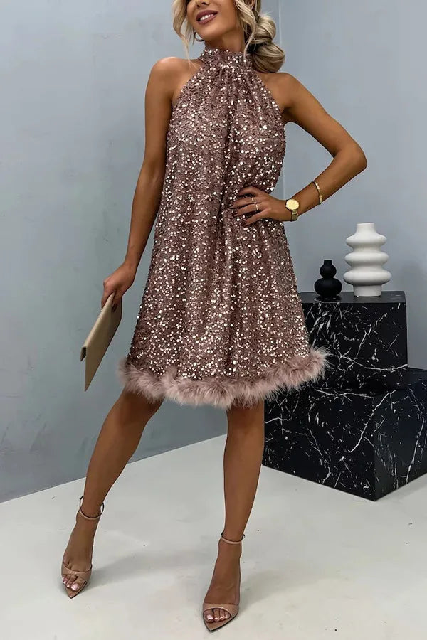 Purpdrank Sexy Lady Patchwork Sequins Slim Dress Women Spring Summer Sleeveless Halter Dress 2025 Casual Lacing Up Party Club Solid Dress