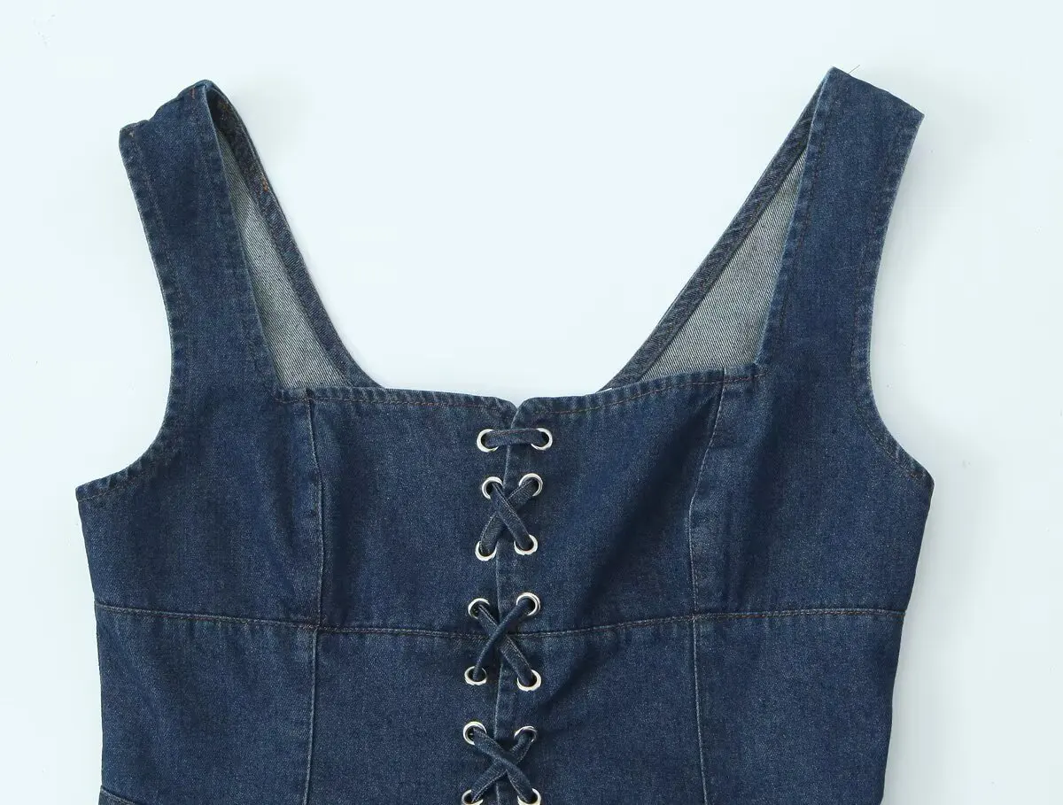 Purpdrank Sexy Square Collar Blue Denim Camis Sexy Corset Women Front Cross Lacing up Bandage Bow Tank Tops Back Zipper Slim Crop Top