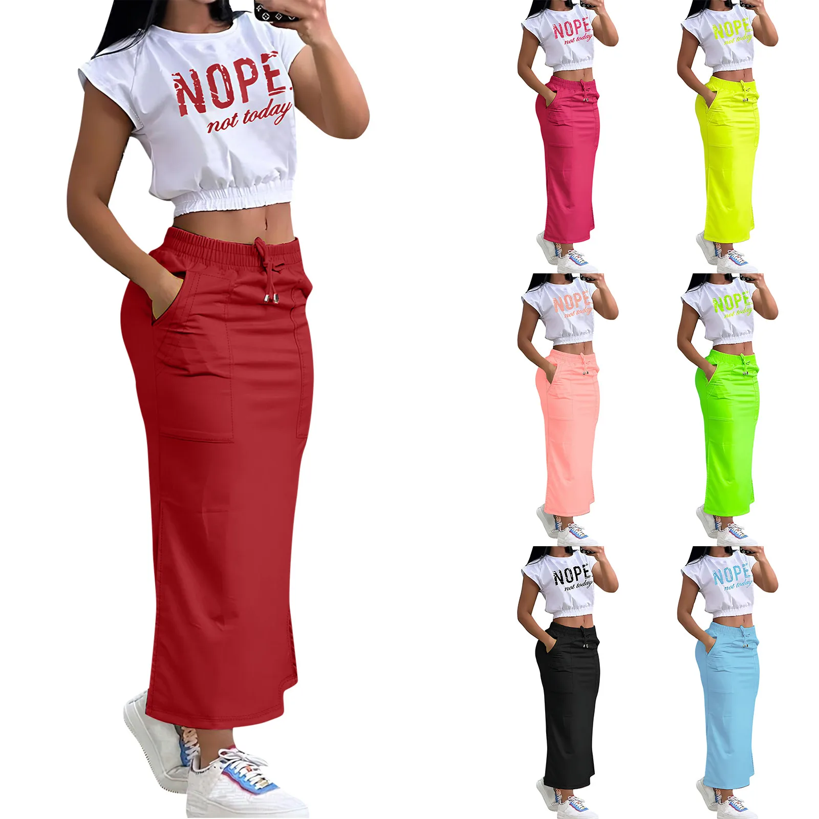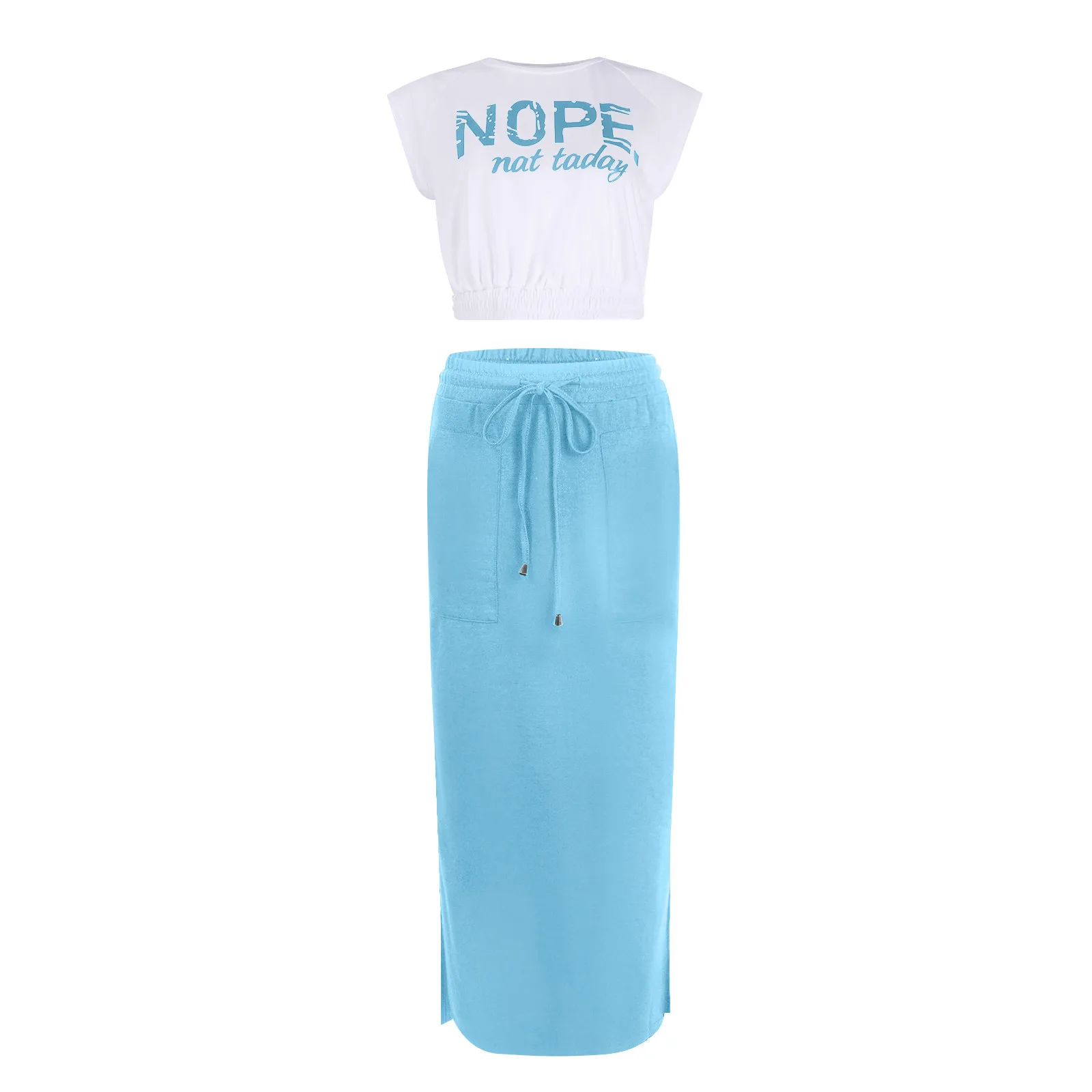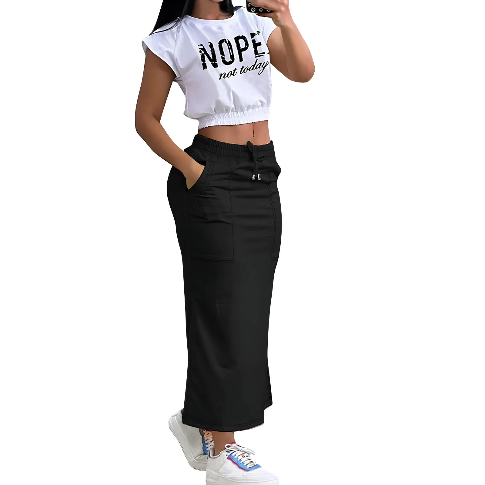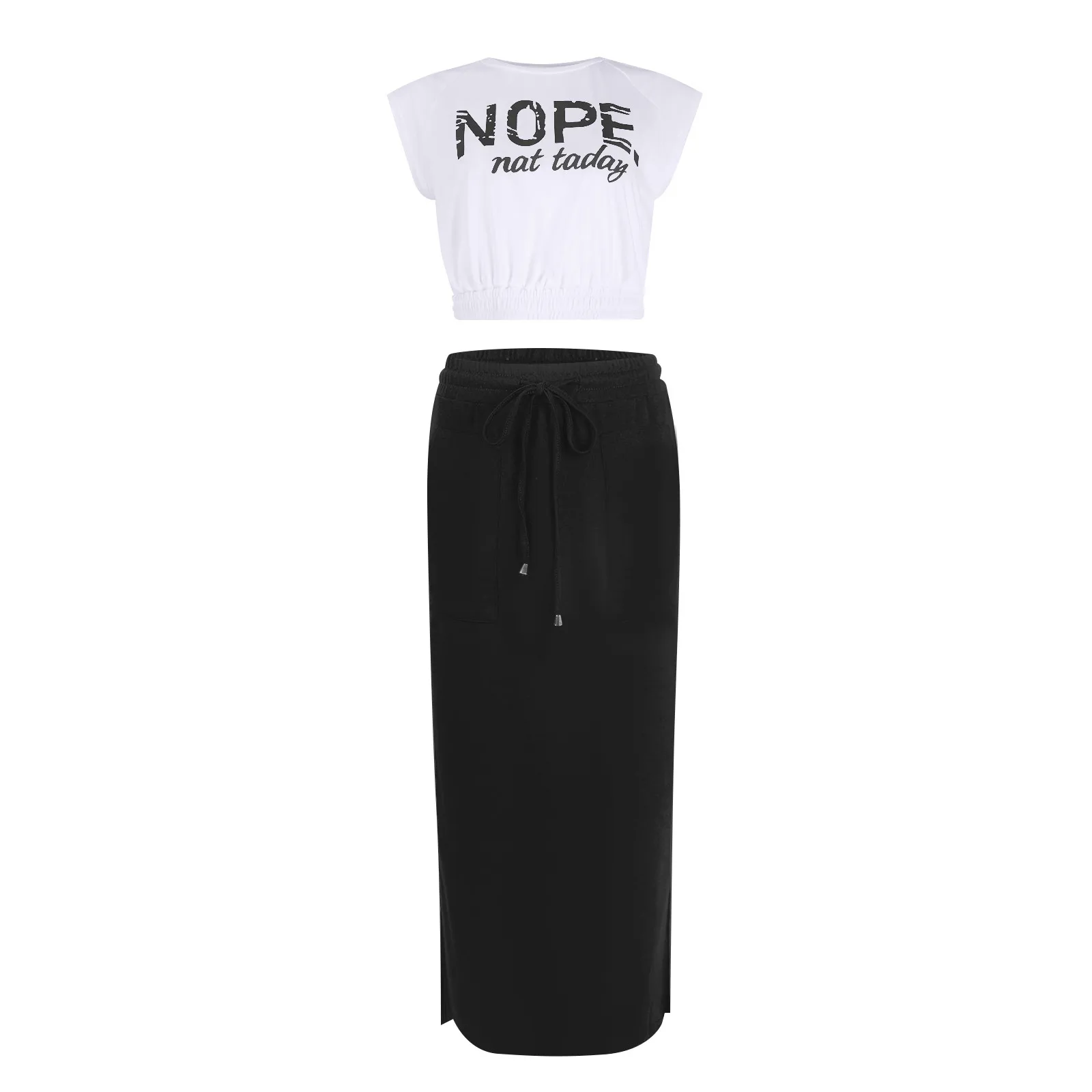 Purpdrank Sexy T-shirt Skirt Two Piece Set Women New Short Sleeve O-Neck Crop Top High Waist Skirt Solid Fashion Suit Streetwear Partywear