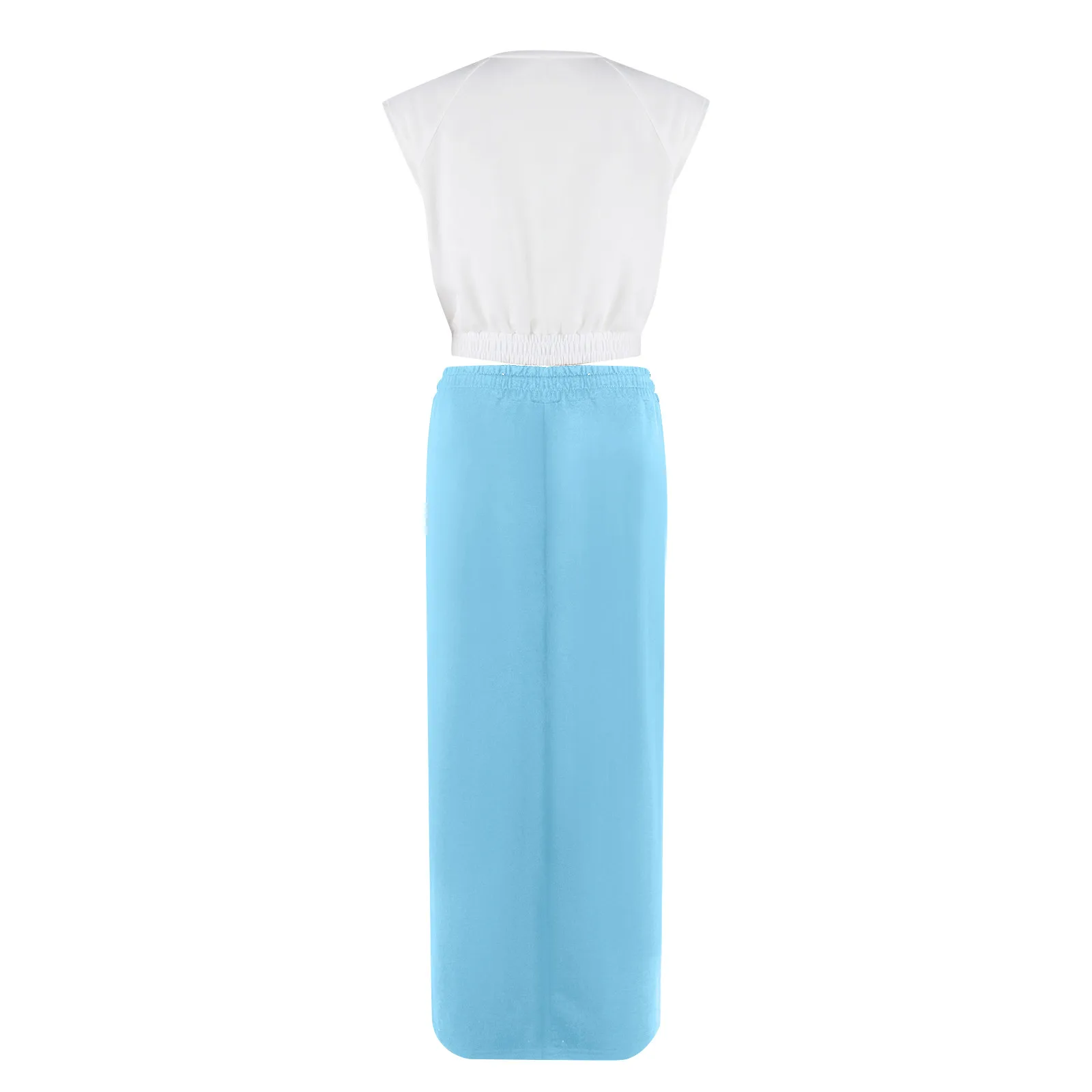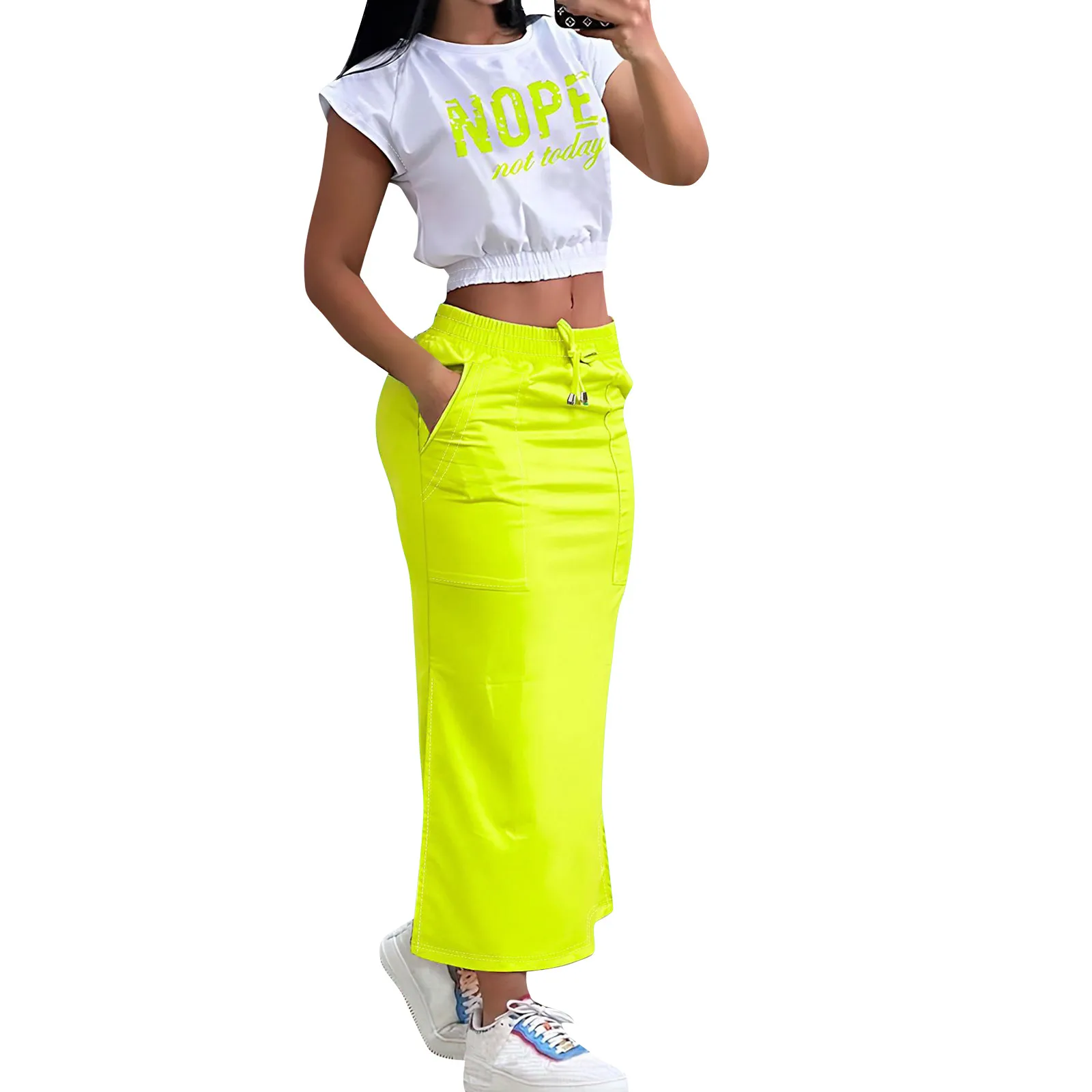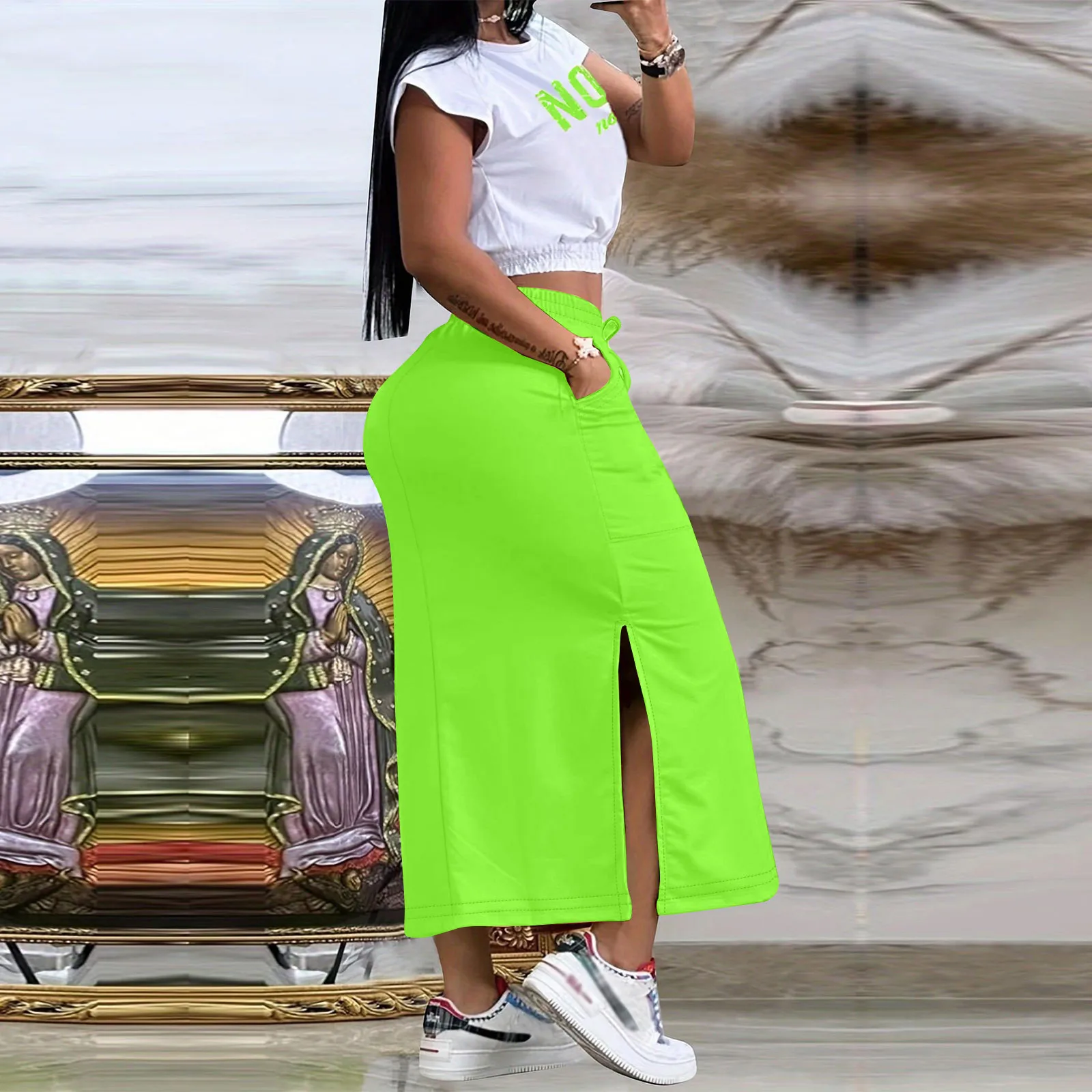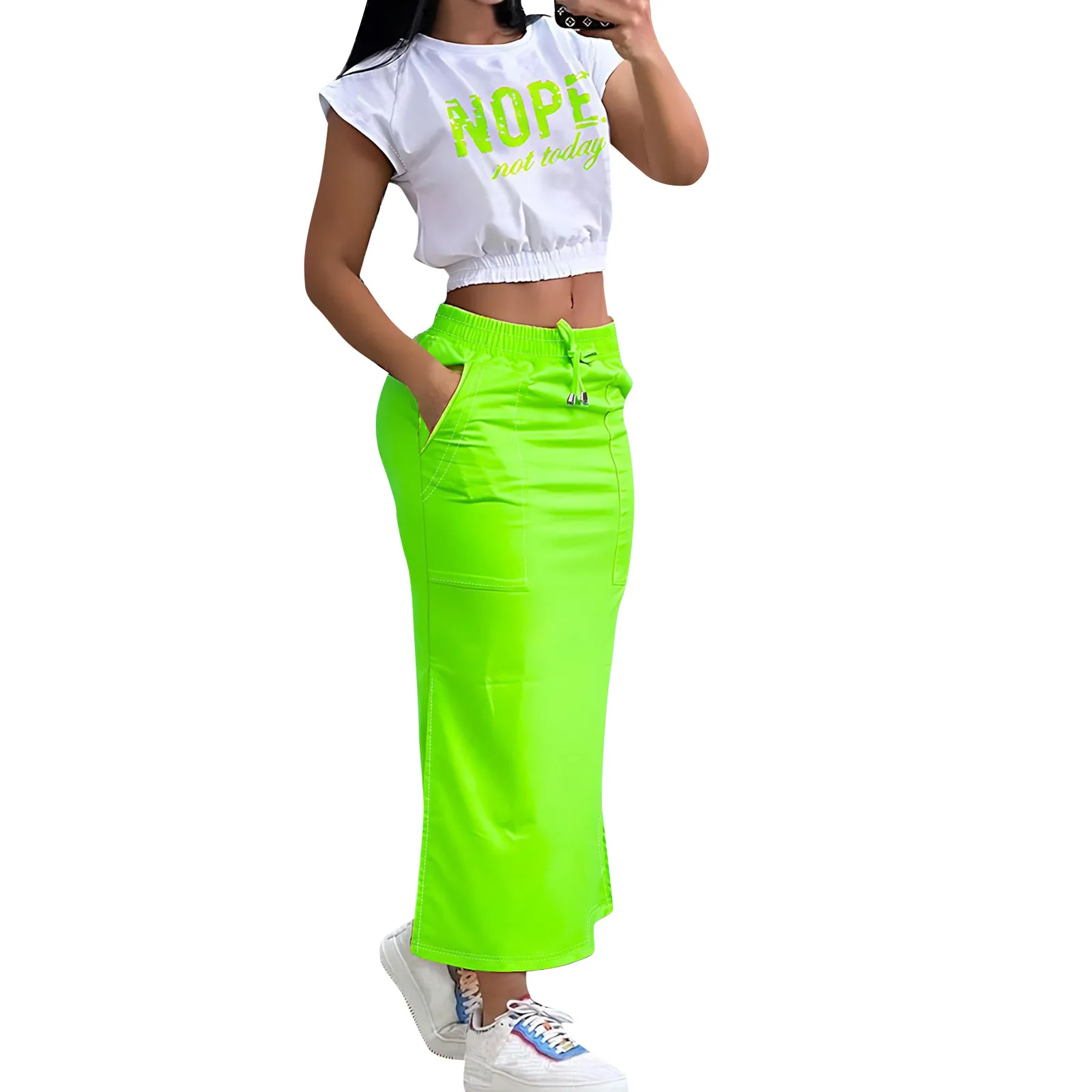 Purpdrank Sexy T-shirt Skirt Two Piece Set Women New Short Sleeve O-Neck Crop Top High Waist Skirt Solid Fashion Suit Streetwear Partywear