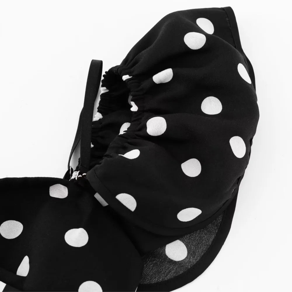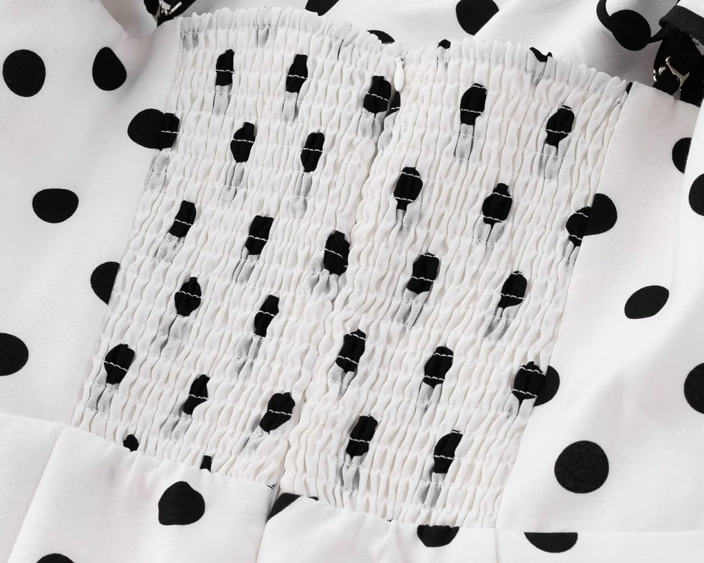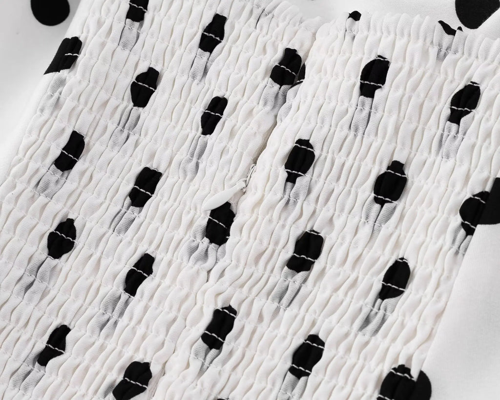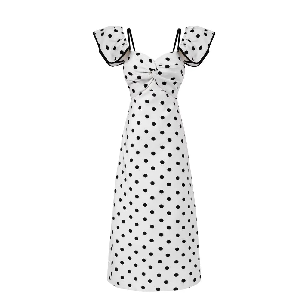 Purpdrank Sexy White Black Polka Dot Print Ruffles Off Shoulder Dress Women Ruched Chest Slim Waist Midi Dresses Robe Holiday Vestidos