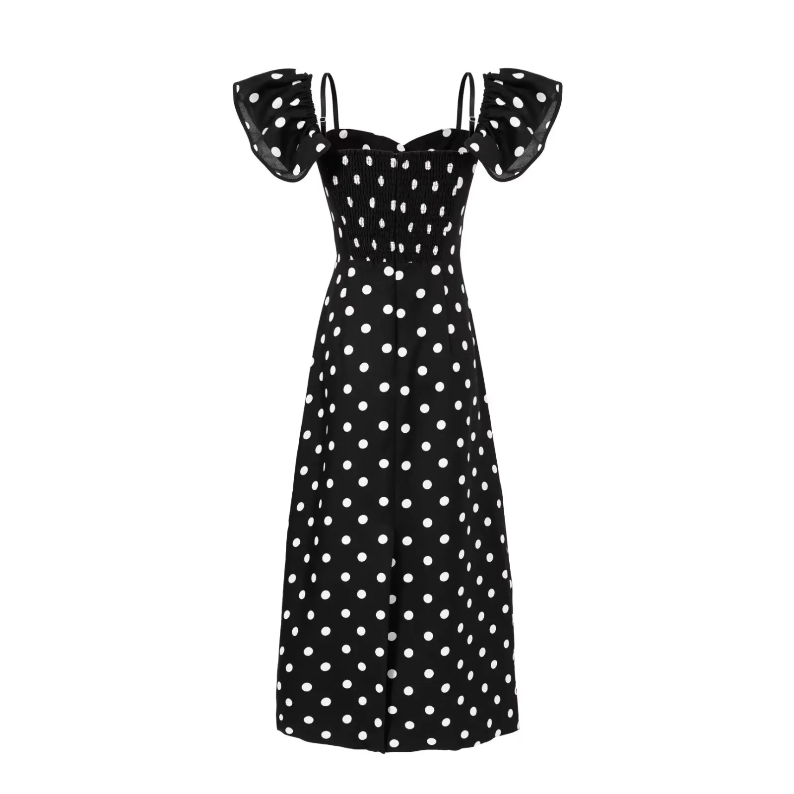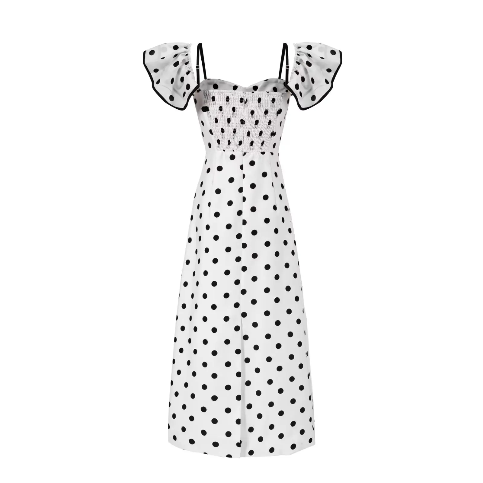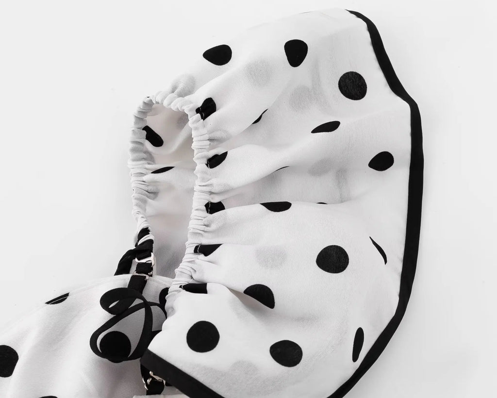 Purpdrank Sexy White Black Polka Dot Print Ruffles Off Shoulder Dress Women Ruched Chest Slim Waist Midi Dresses Robe Holiday Vestidos