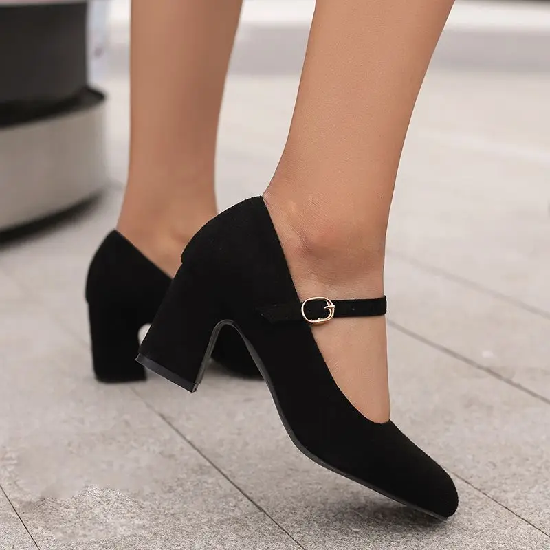 Purpdrank Sexy Women Pumps Flock Suede Toe Block Heel Buckle Strap Size 41 42 43 Fashion Female Shoes Spring