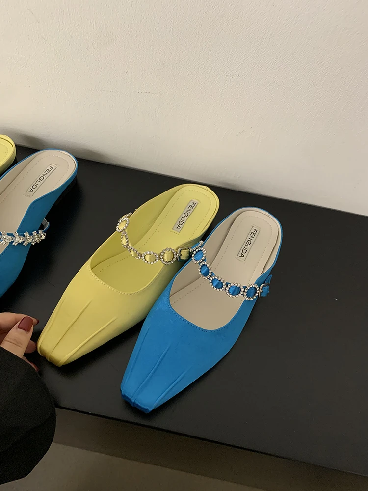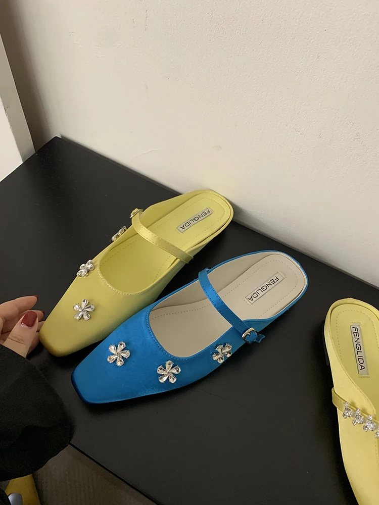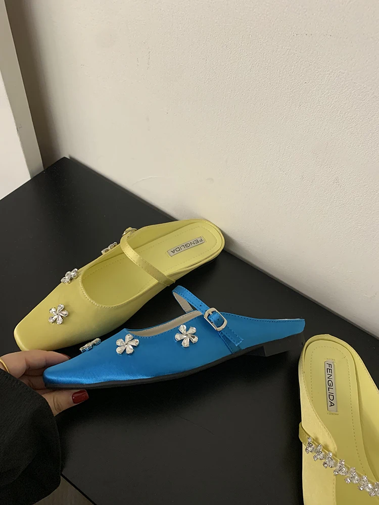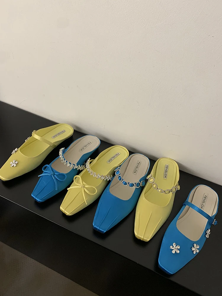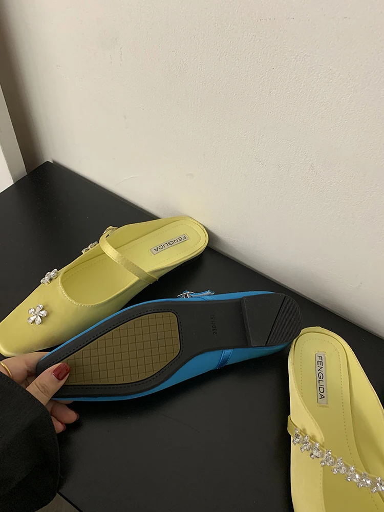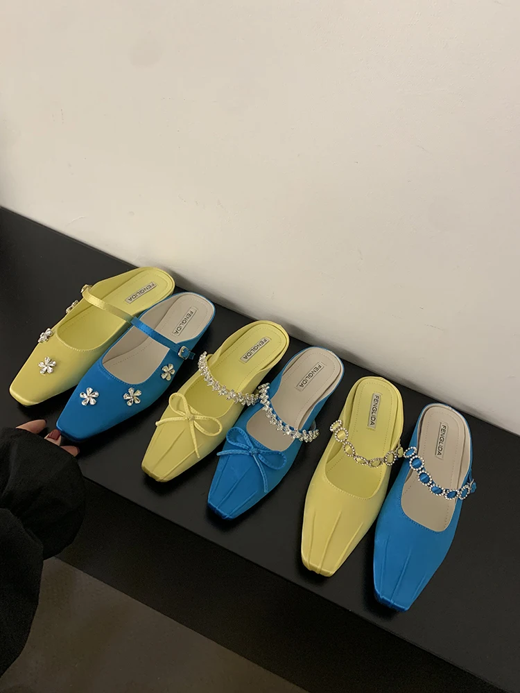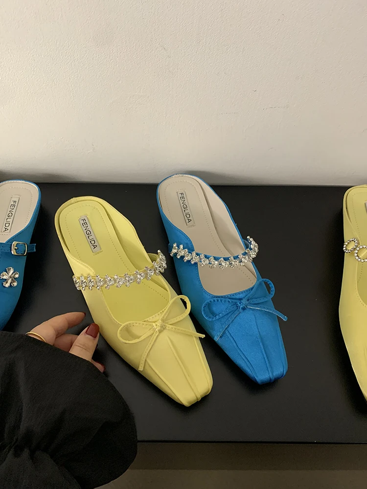 Purpdrank Shoes Slippers Flat Glitter Slides Butterfly-Knot Jelly Soft Crystal Mary Janes Butterfly-knot Shoes Slippers Flat Butterfly-Kno
