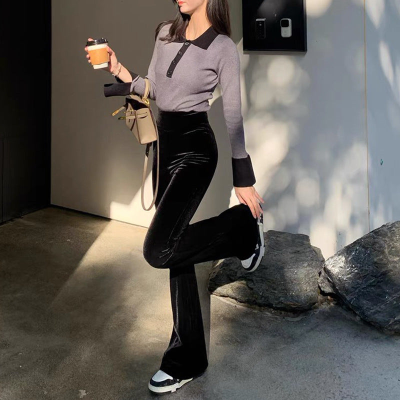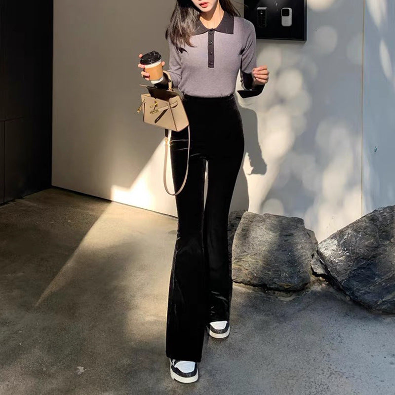 egirl style Fog Velvet Winter Velvet Set Extra Thick Velvet Flared Pants