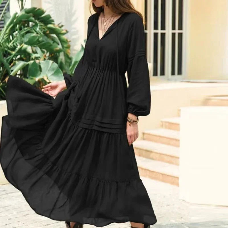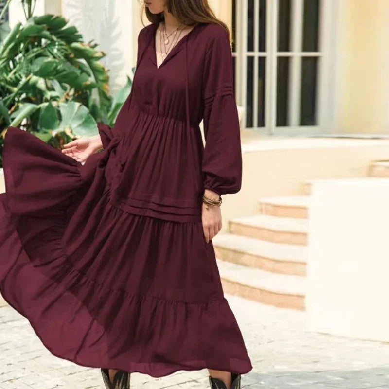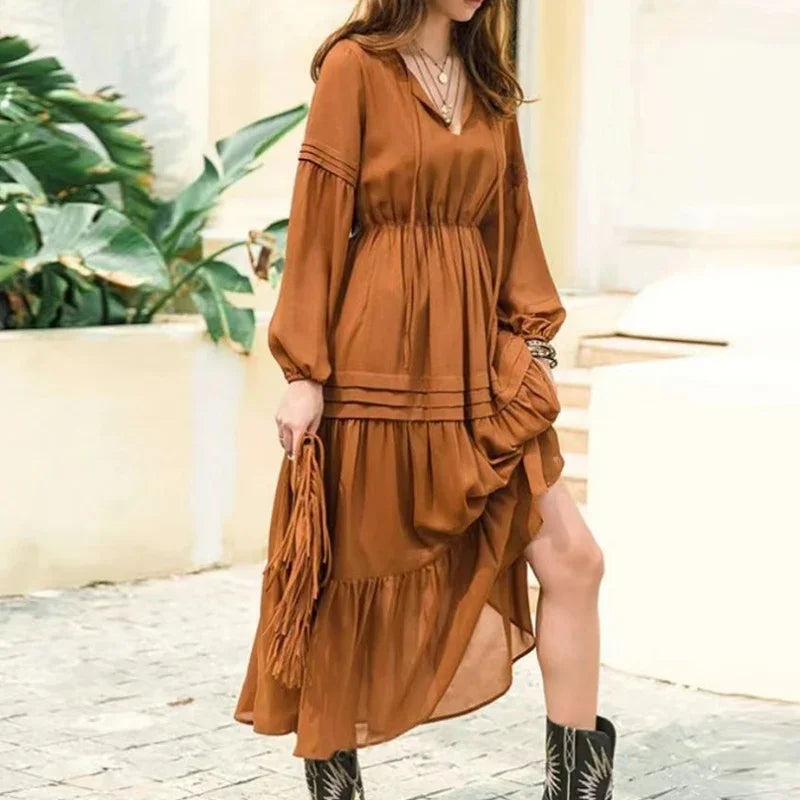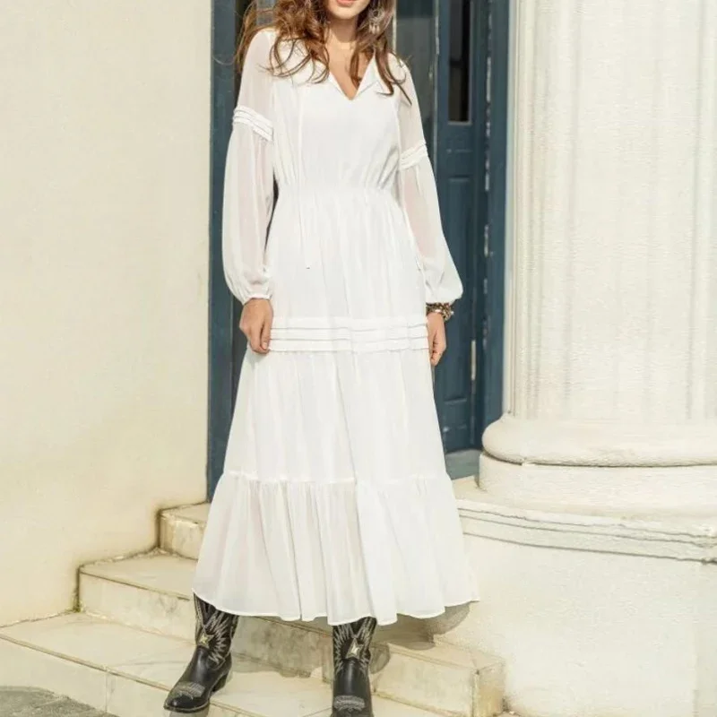 Purpdrank Spring Autumn Elegant Princess Style Vintage Dress Sexy V Neck Lantern Sleeve Ruffle Long Dress Fashion Casual Women Party Dress