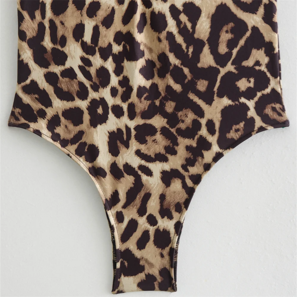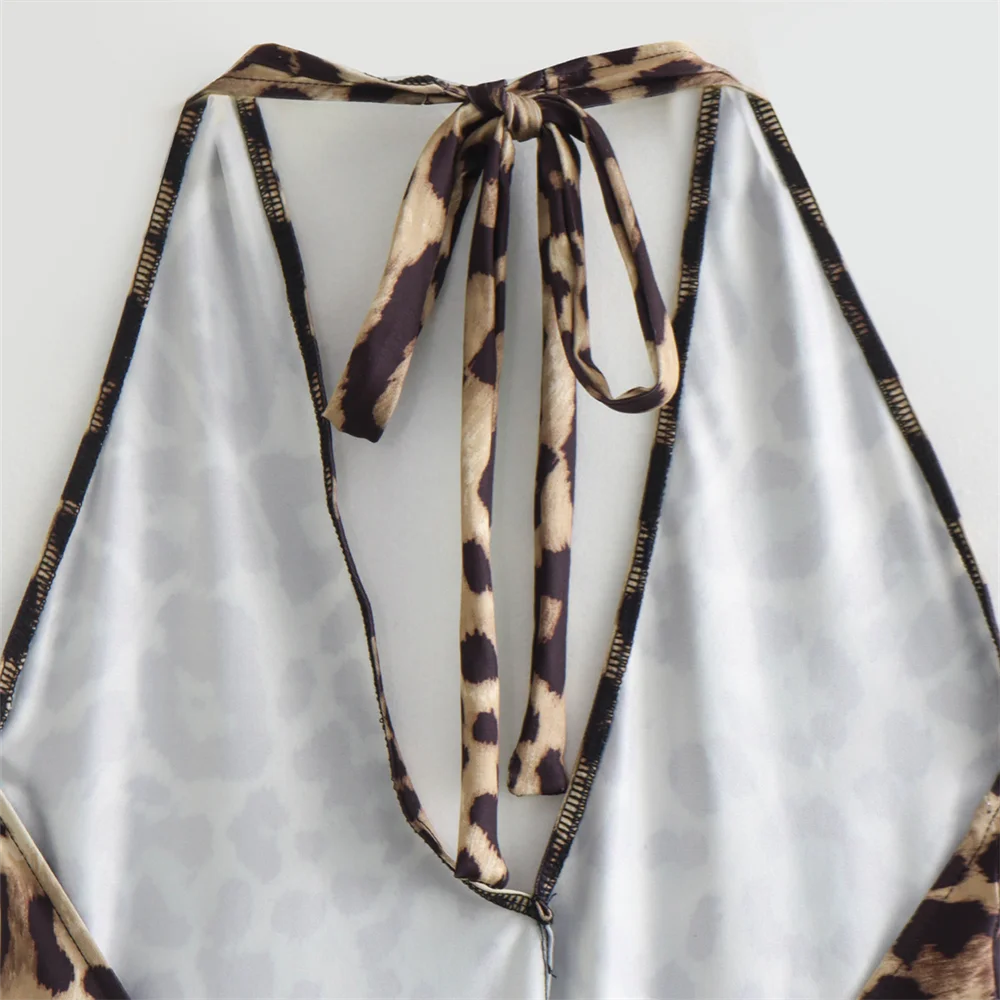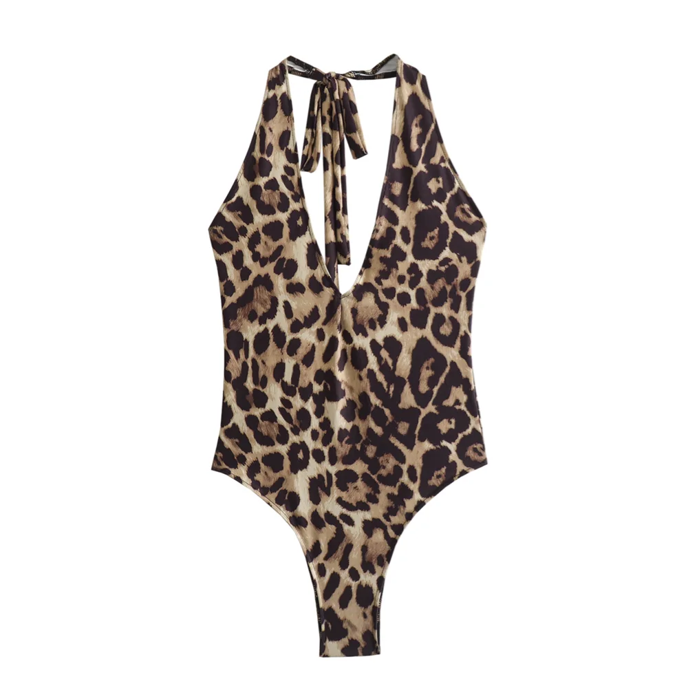 Purpdrank Spring New Women's Fashion and Casual Versatile Animal Print Hanging Neck Bodysuit