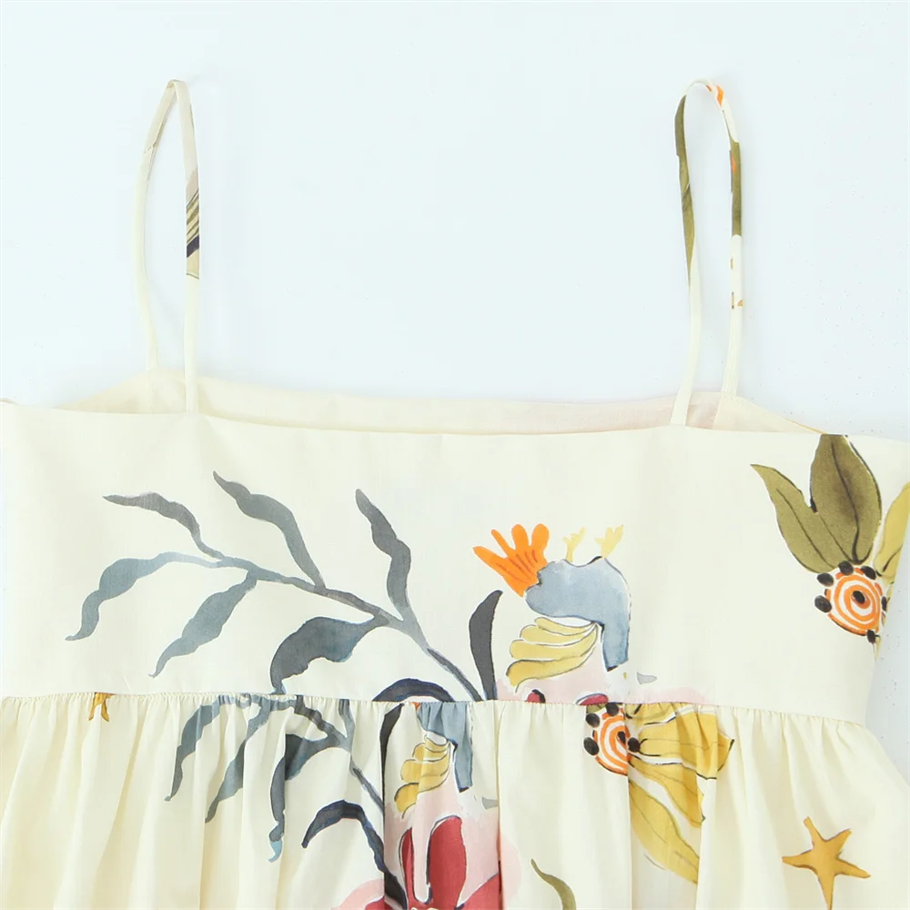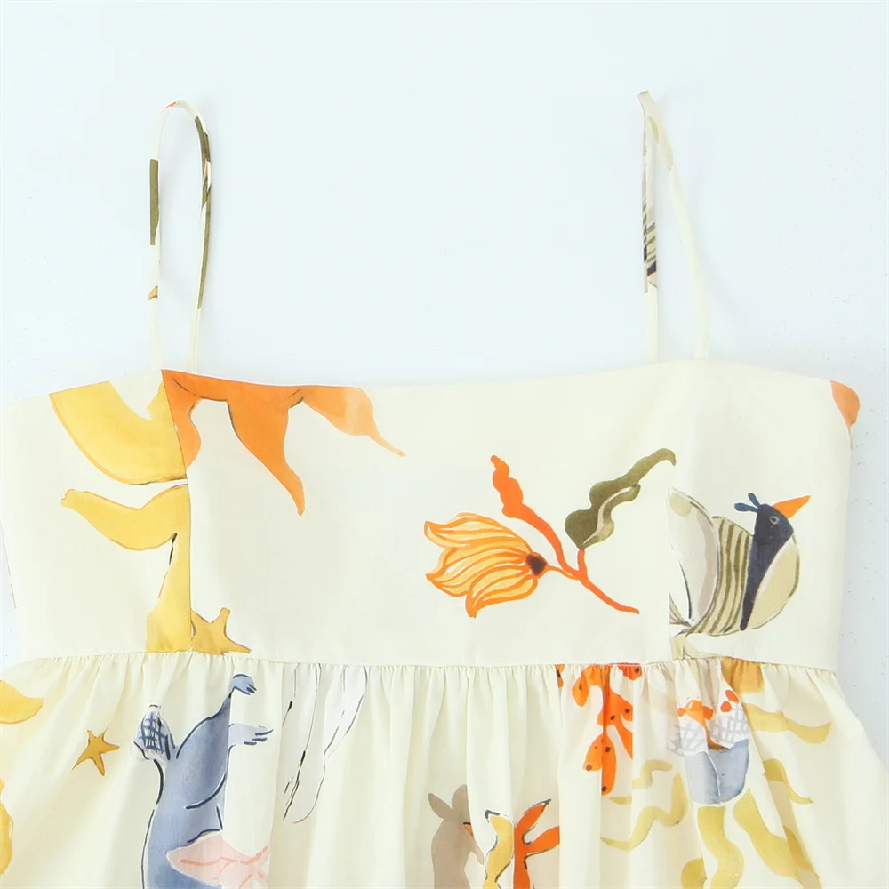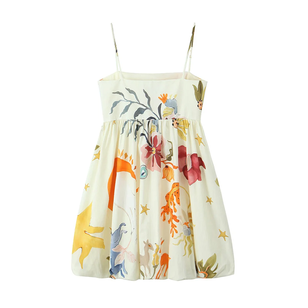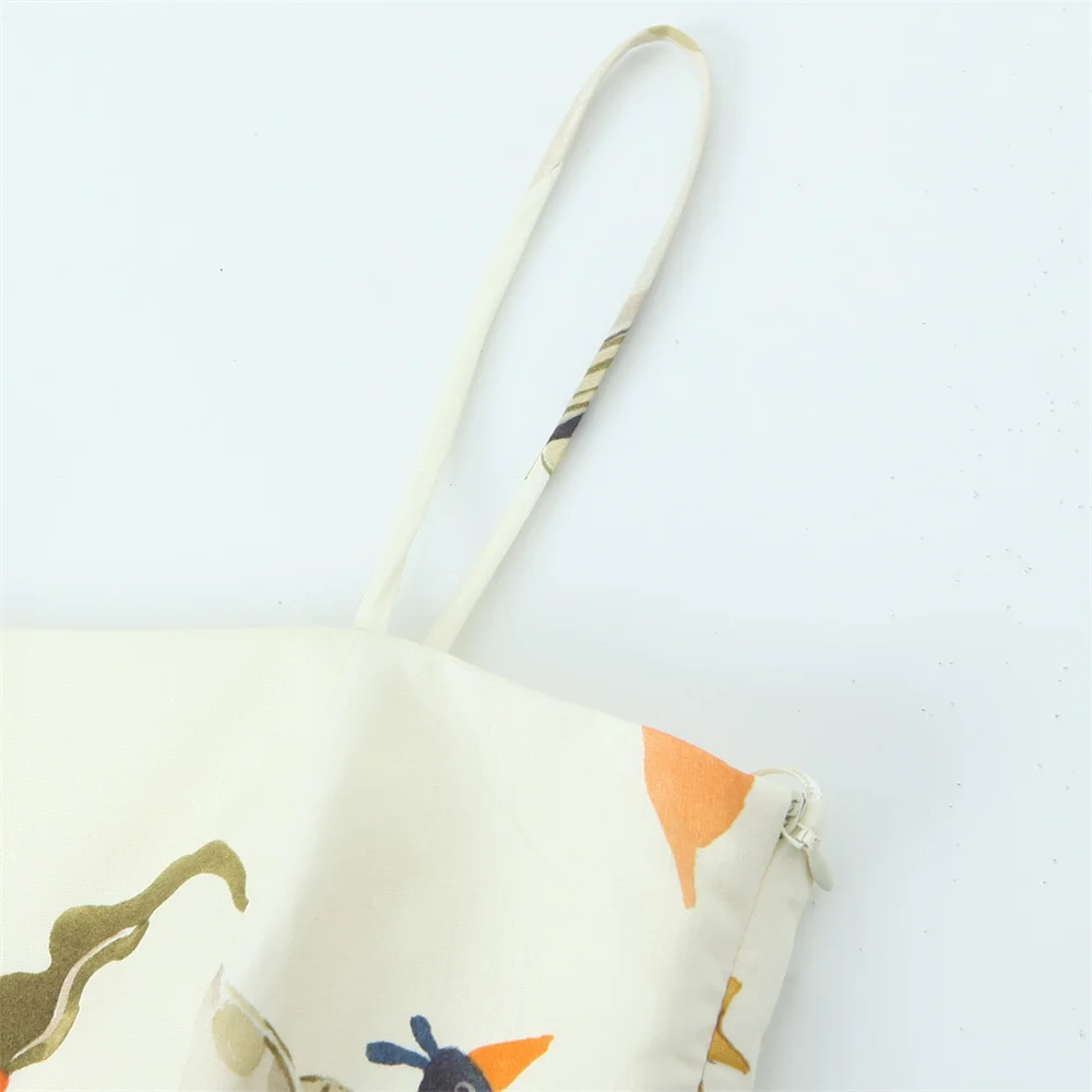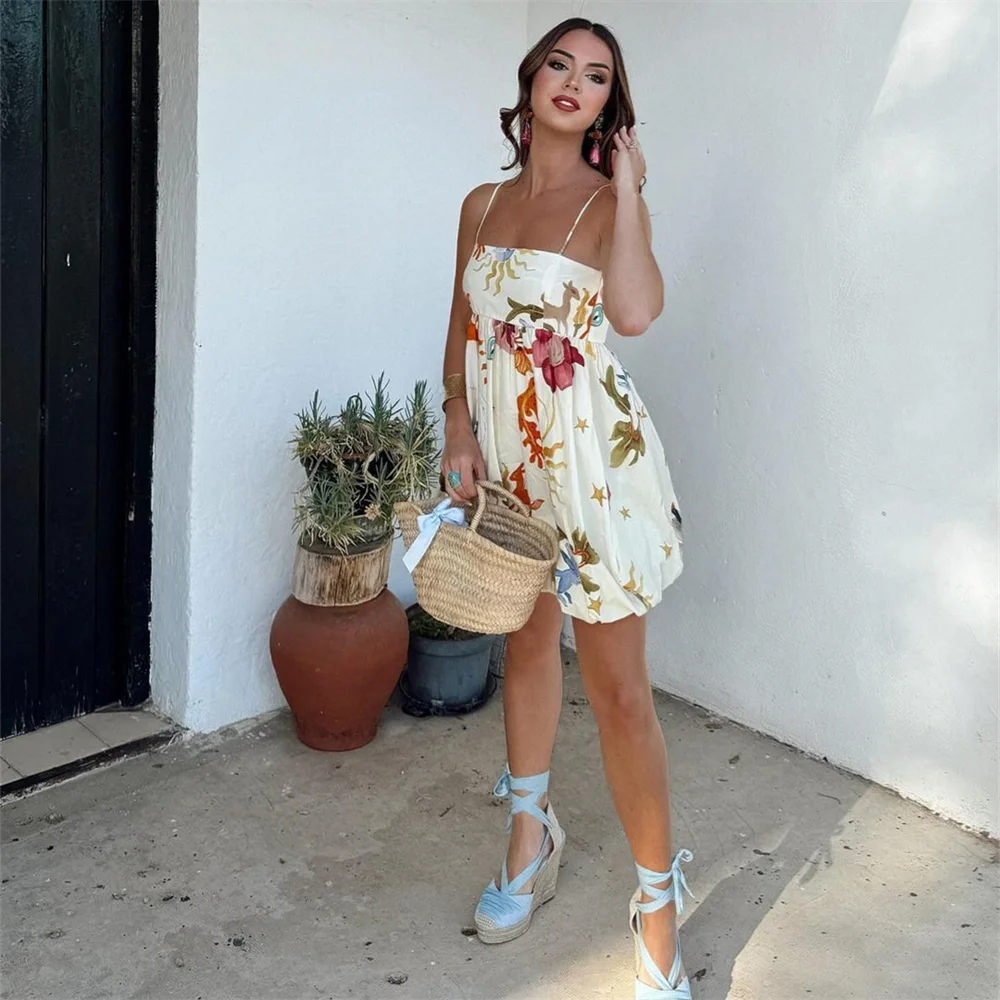 Purpdrank Spring New Women's Fashion and Elegance Slim Fit Versatile Printed Loose Strap Short Dress