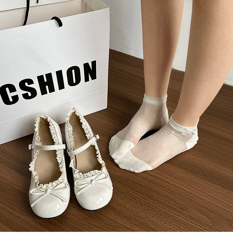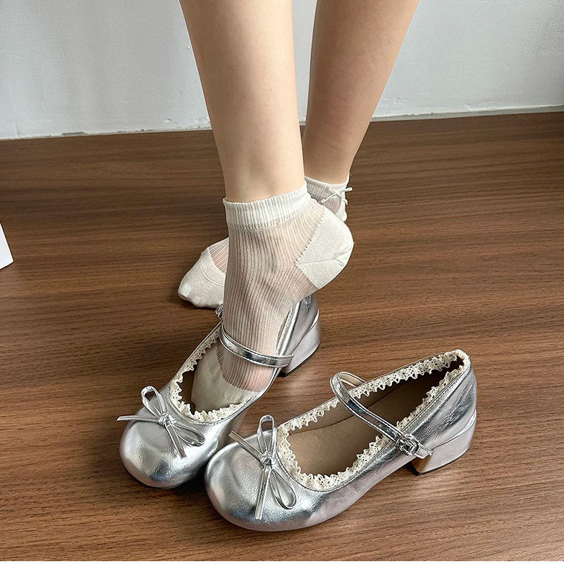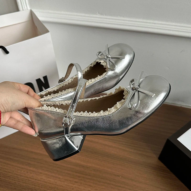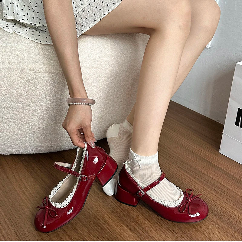 Purpdrank Sring Autumn Women Mary Jane Shoes Fashion Butterfly-knot Dress Shoes Ladies Concise Outdoor Thick Heel Leather Shoes