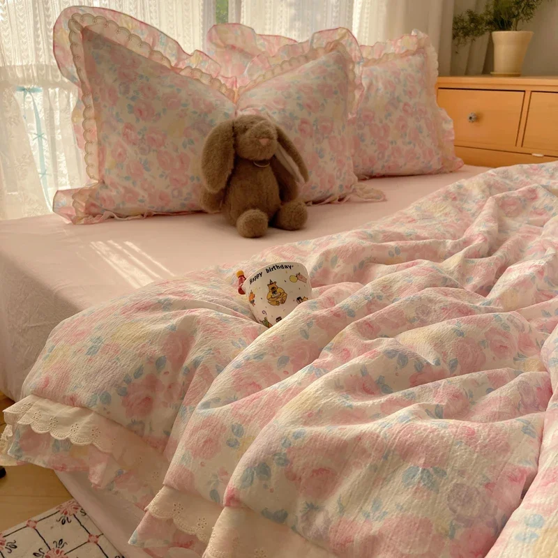 Purpdrank Summer Comforter - Hollow Lace Washed Cotton, Breathable Thin Quilt, Cool Bedroom Decor (Layered Design)