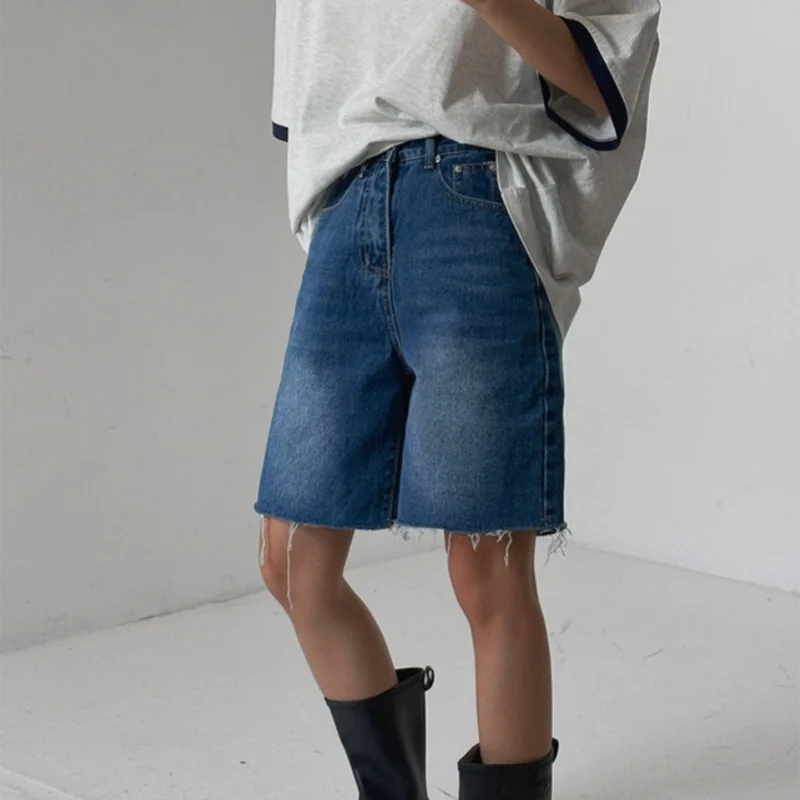 Purpdrank Summer High Waist Vintage Women's Denim Shorts 2025 New Single Button Casual Loose Wide Leg Jeans Half Pants Female
