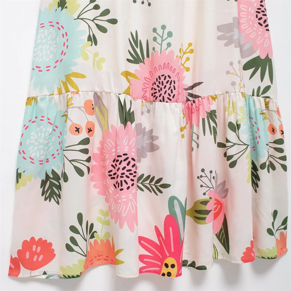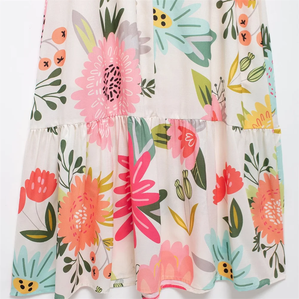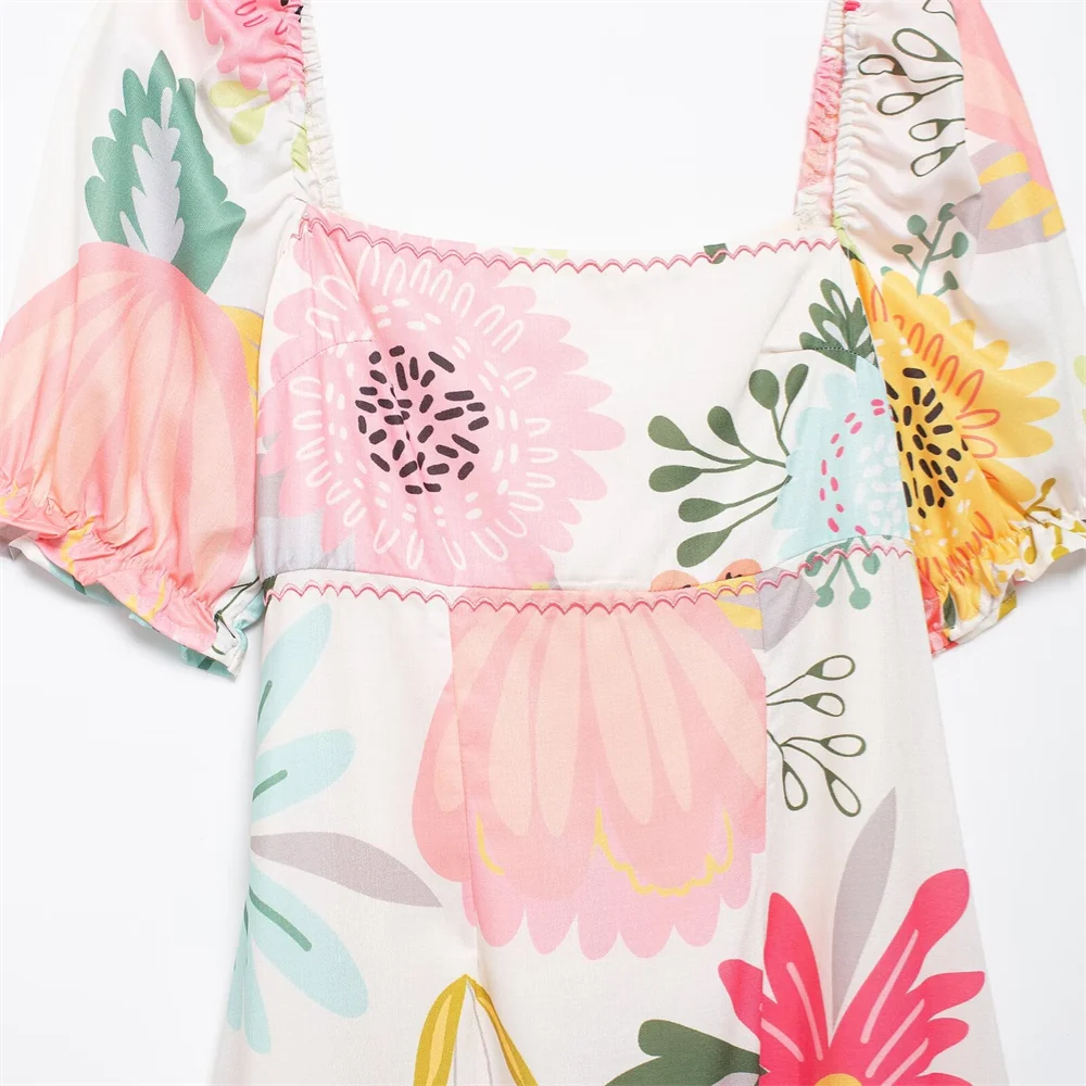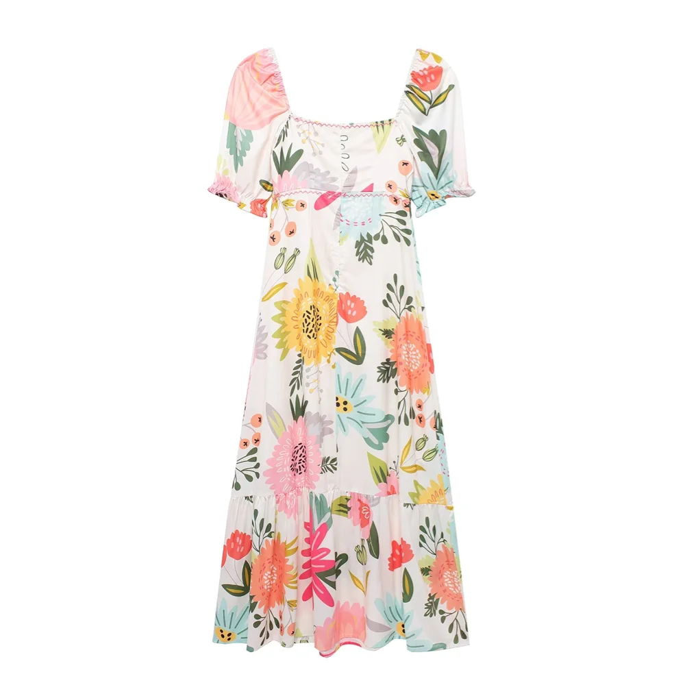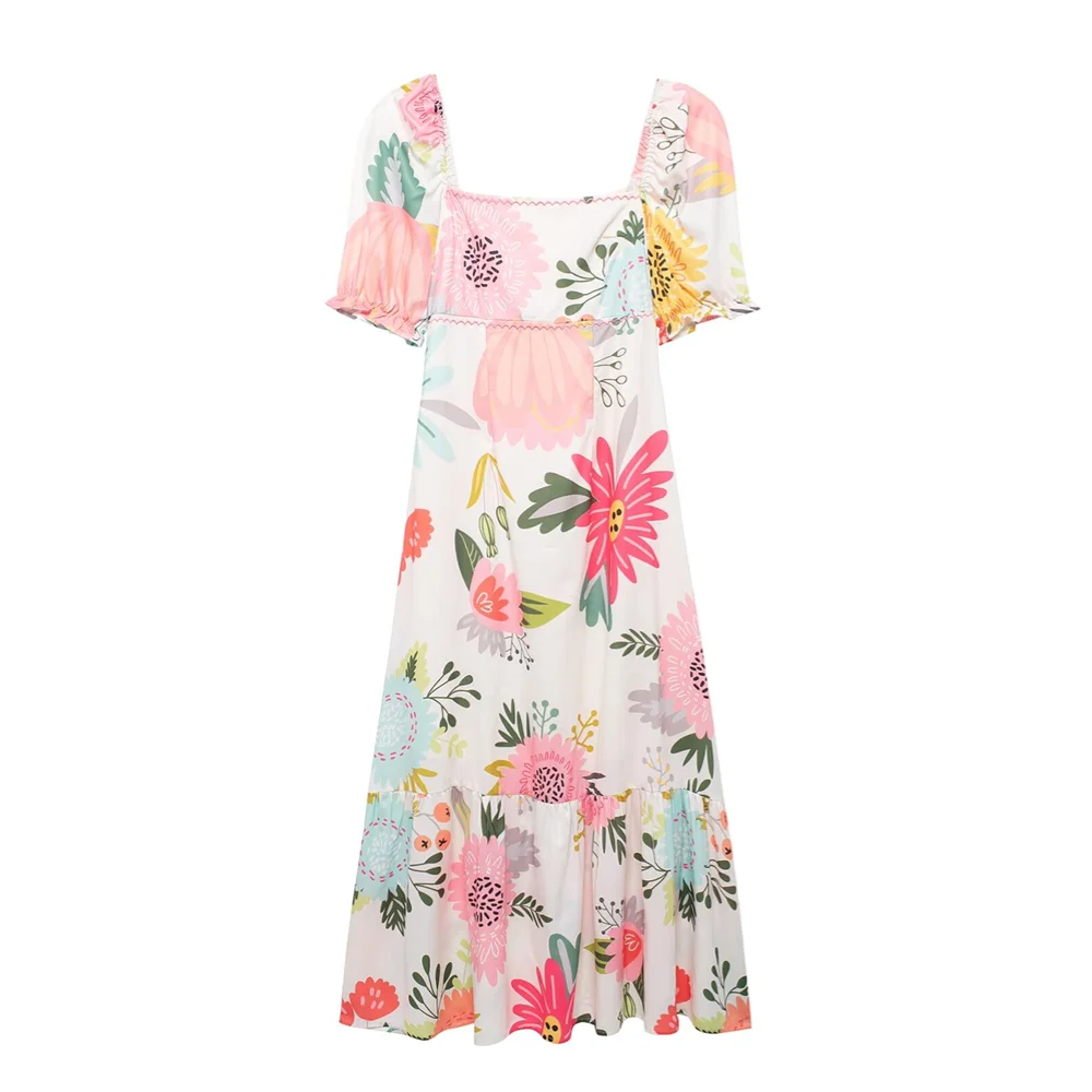 Purpdrank Summer New Women's Fashion and Elegance Slim Fit Versatile Printed Embroidered Square Neck Dress