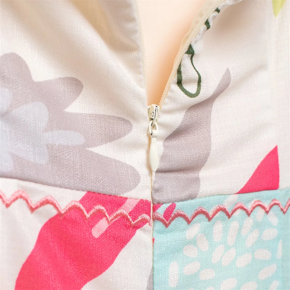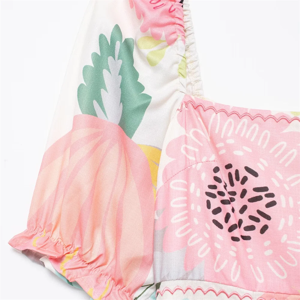 Purpdrank  Summer New Women's Fashion and Elegance Slim Fit Versatile Printed Embroidered Square Neck Dress