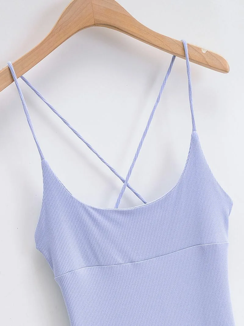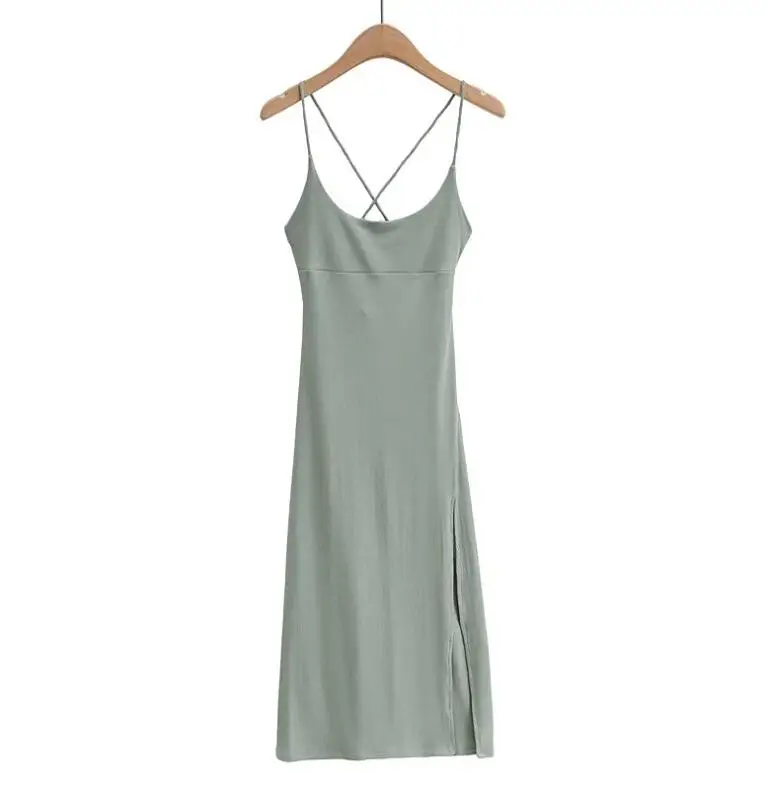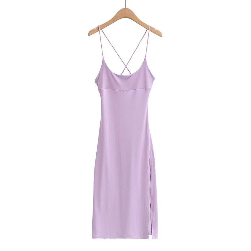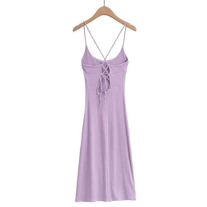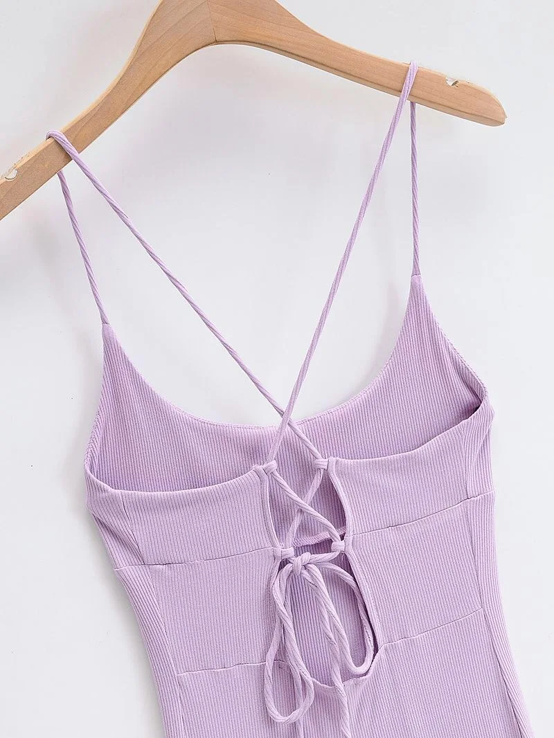 Purpdrank Summer Sexy Bandage Cross Lacing up Backless Spaghetti Strap Dress Women Hem Slit Sling Holiday Dress