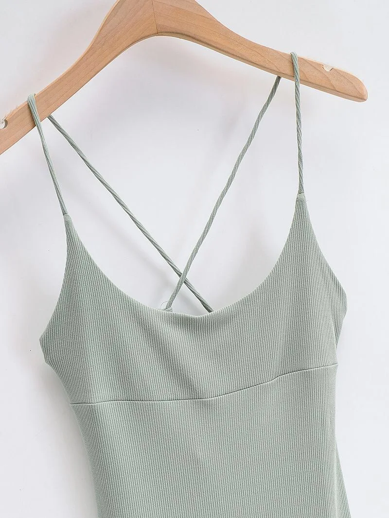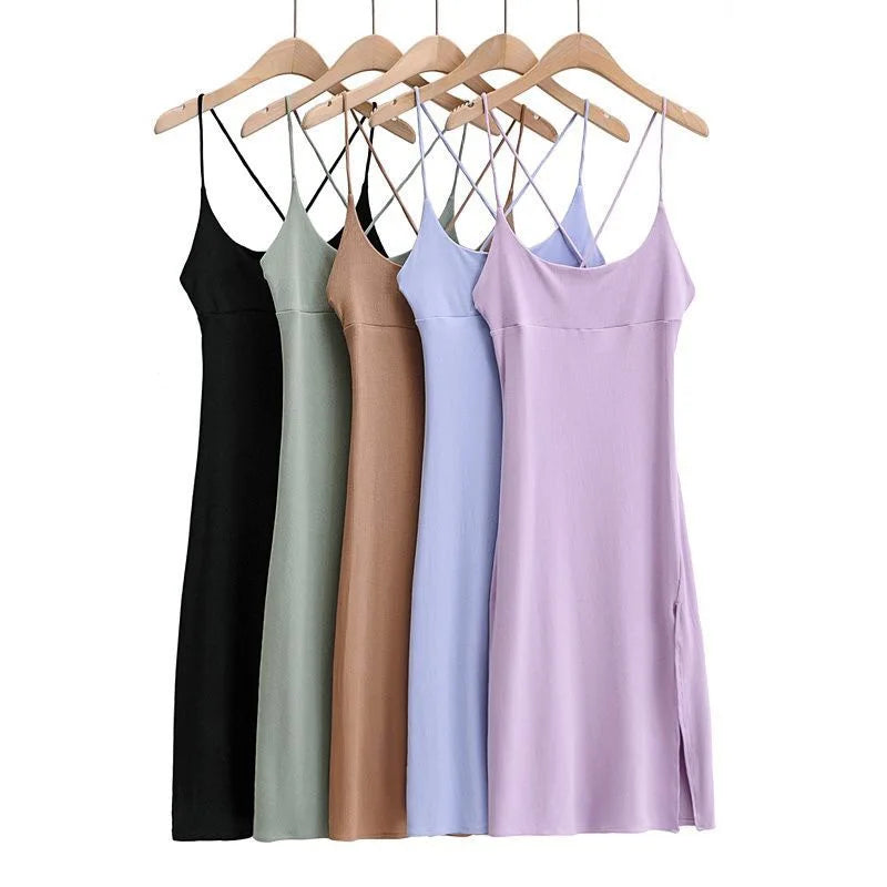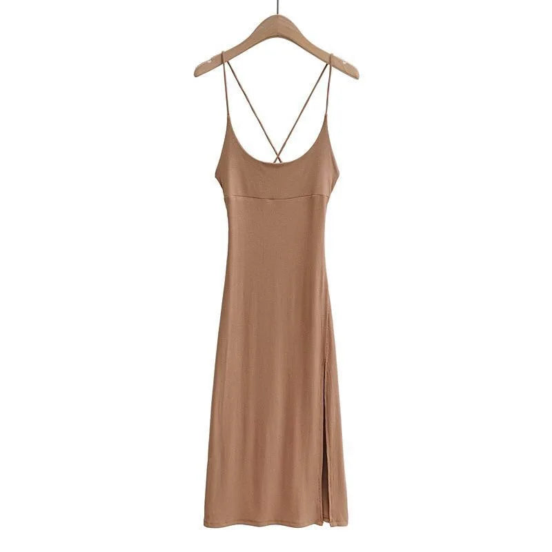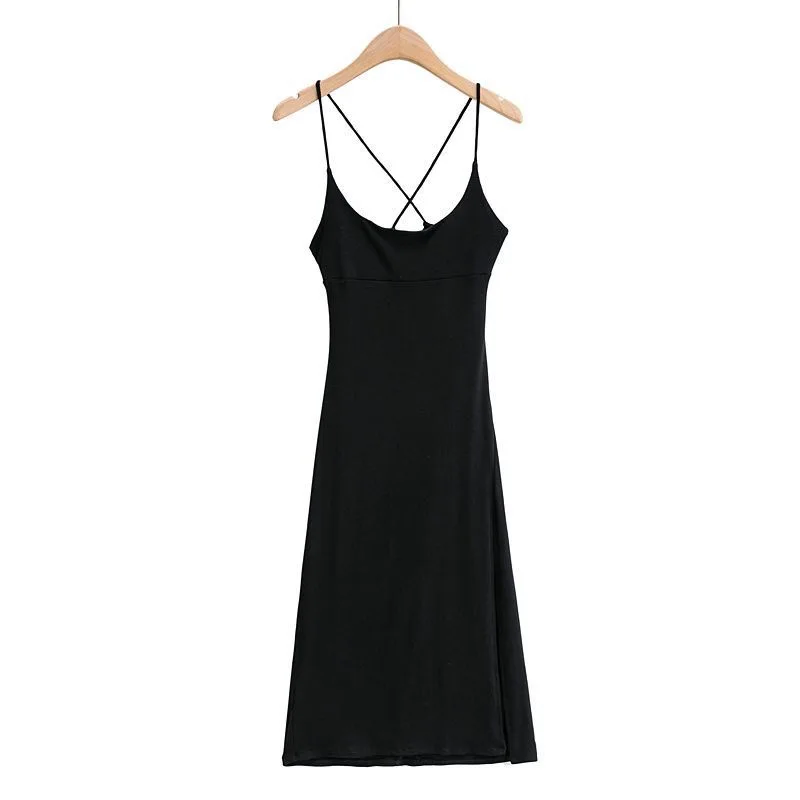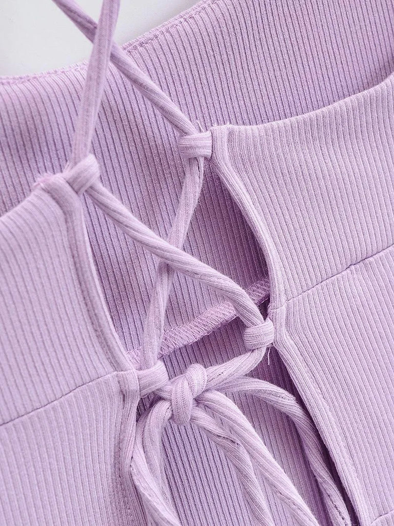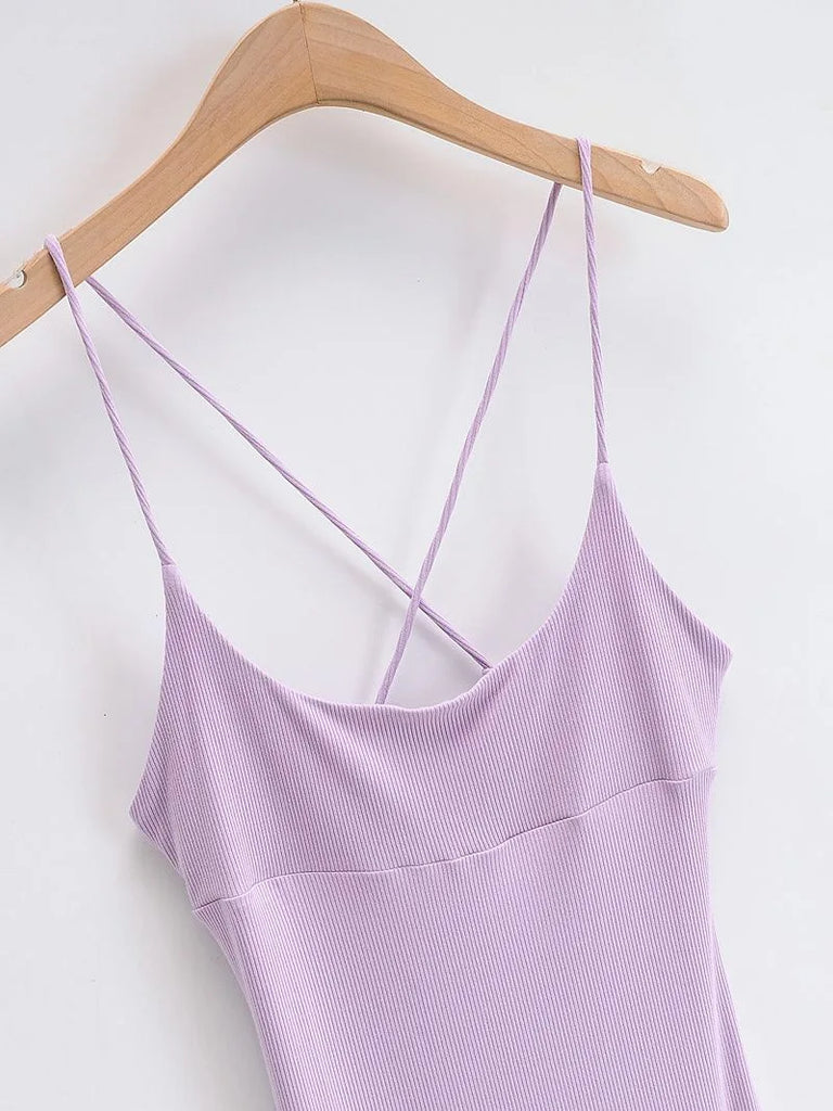 Purpdrank Summer Sexy Bandage Cross Lacing up Backless Spaghetti Strap Dress Women Hem Slit Sling Holiday Dress