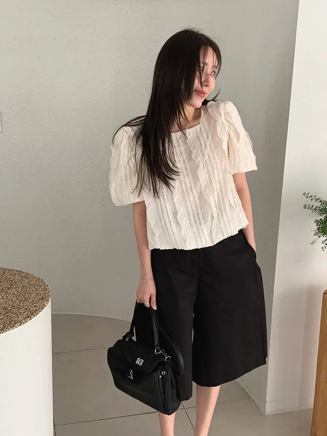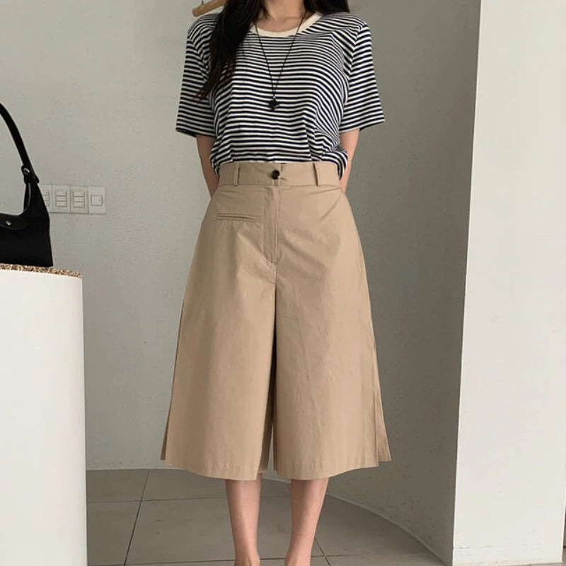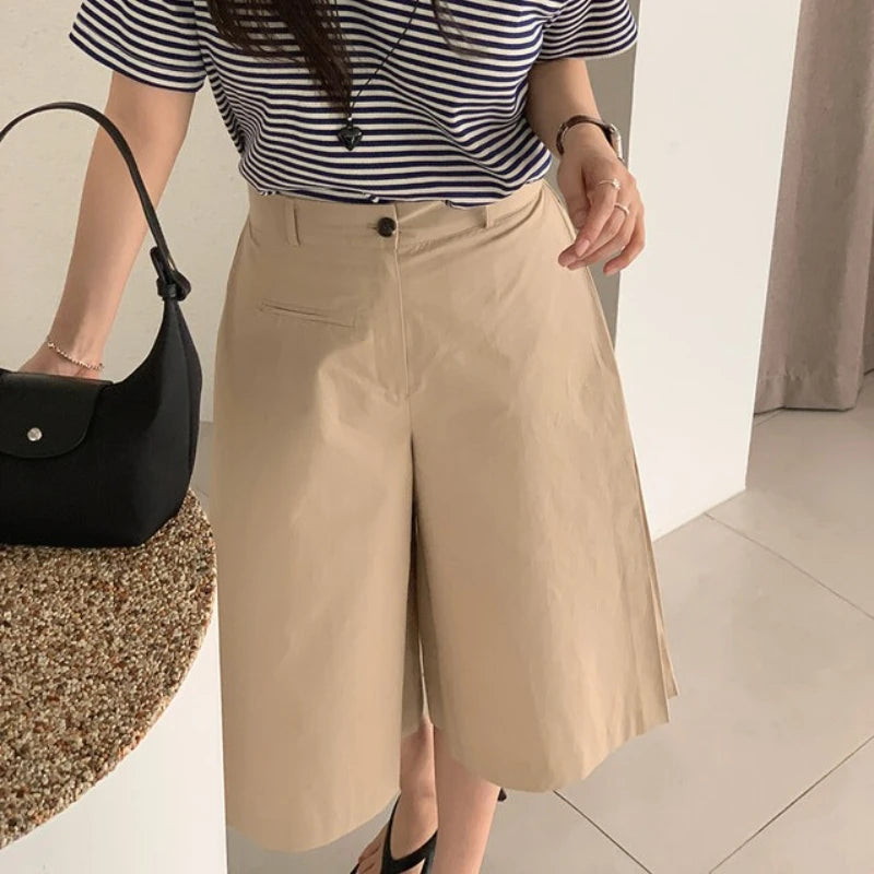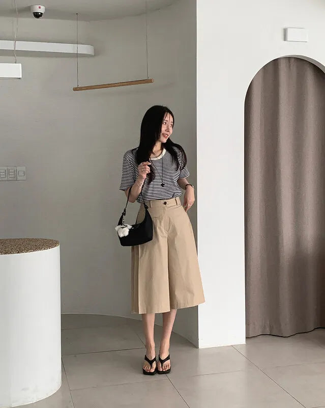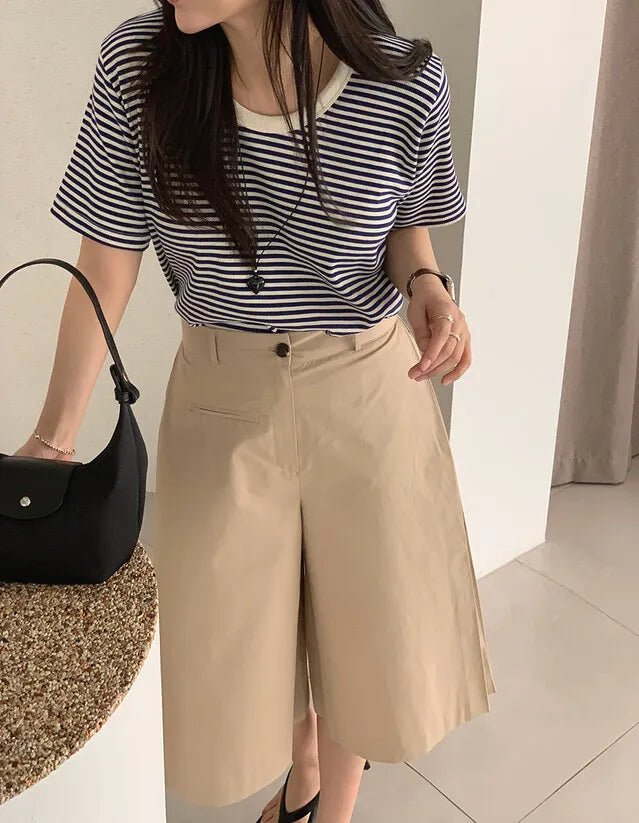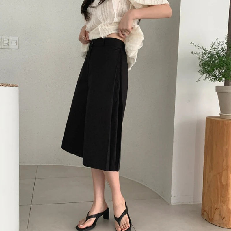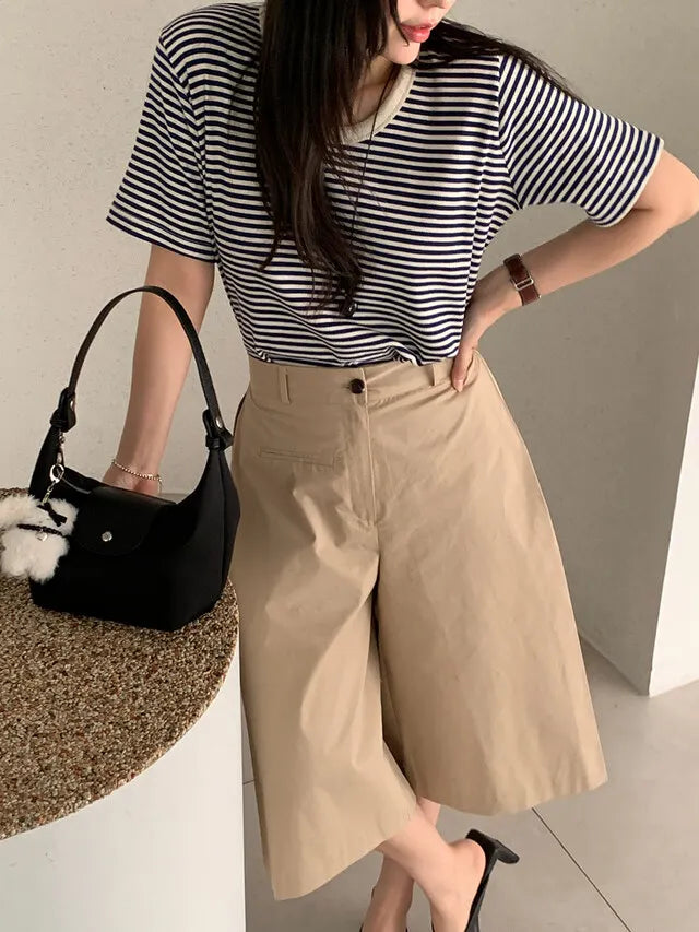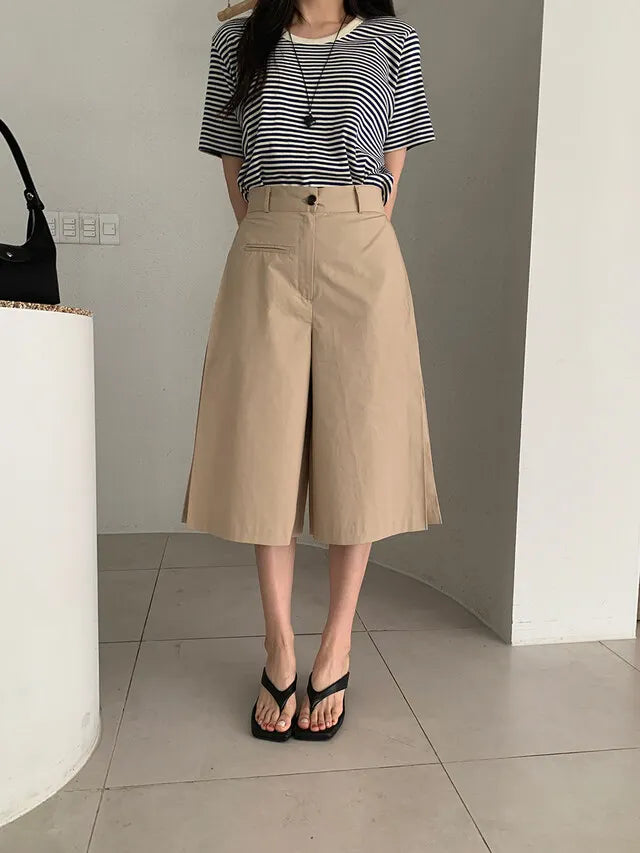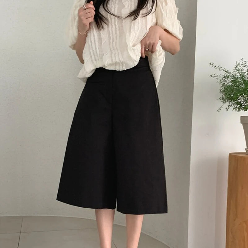 Purpdrank Summer Vintage High Waist Women's Wide Leg Shorts 2025 New Solid Single Button Casual Loose Office Half Pants Female