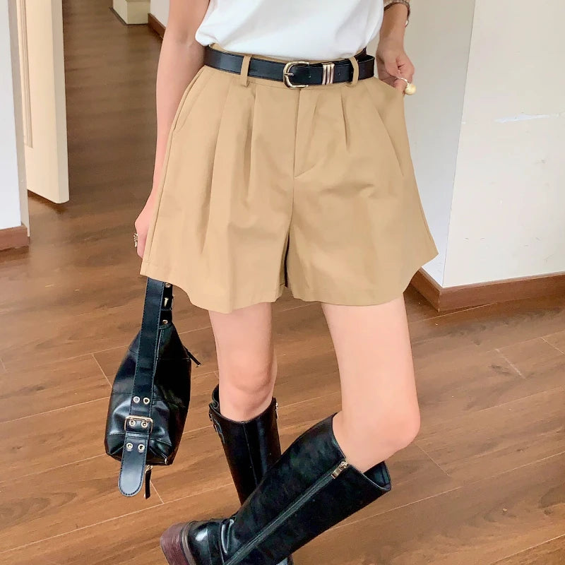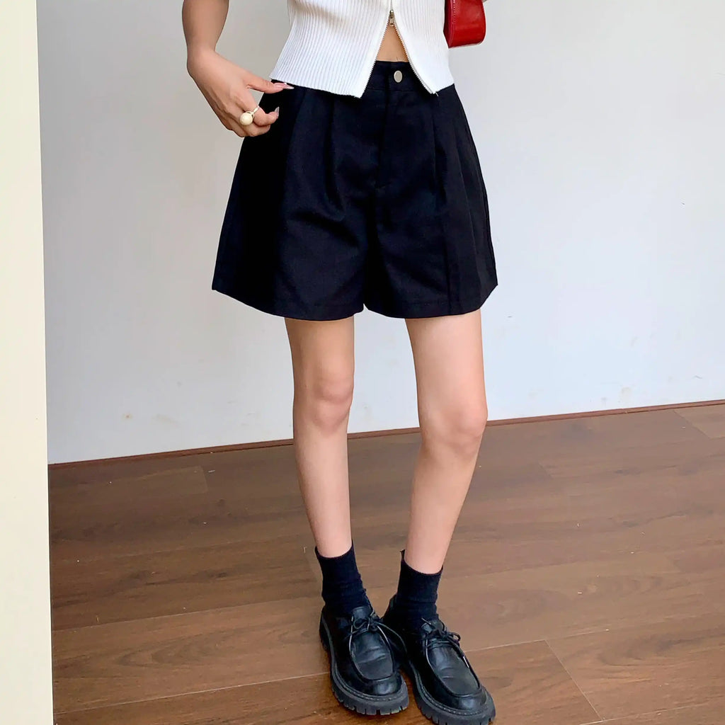Purpdrank Summer Vintage Women's Cargo Wide Leg Shorts Pocket 2025 New High Waist Solid Casual Loose A-line Short Pants Female