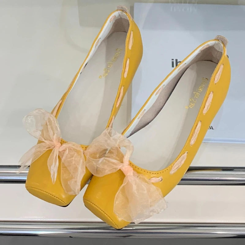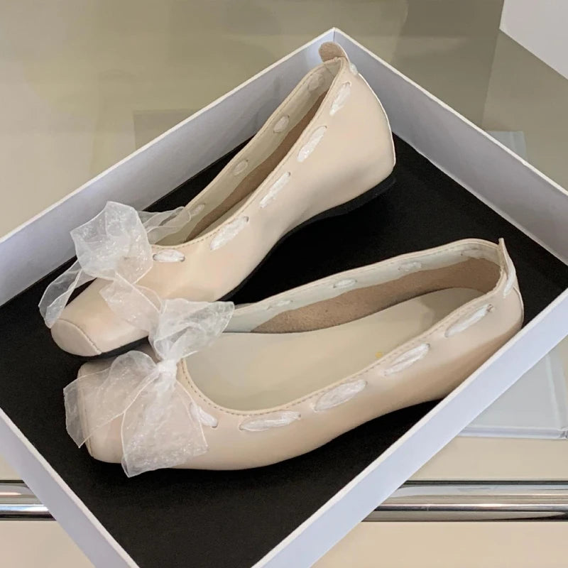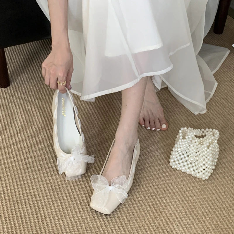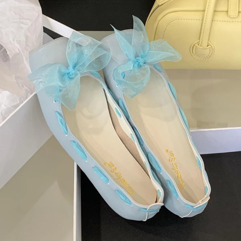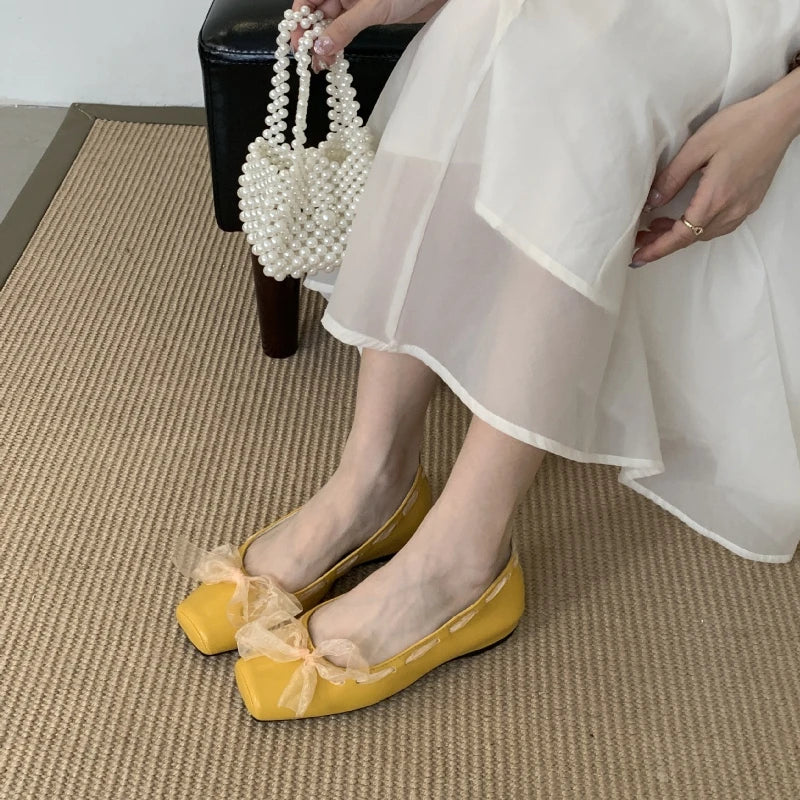 Purpdrank Sweet Mesh Butterfly-knot Design Mary Jane Shoes Women Fashion Shallow Square Toe Flat Ballet Shoes Comfort Non-slip Flat Shoes
