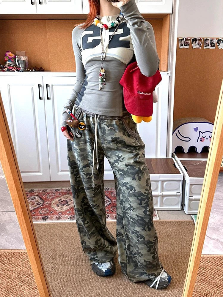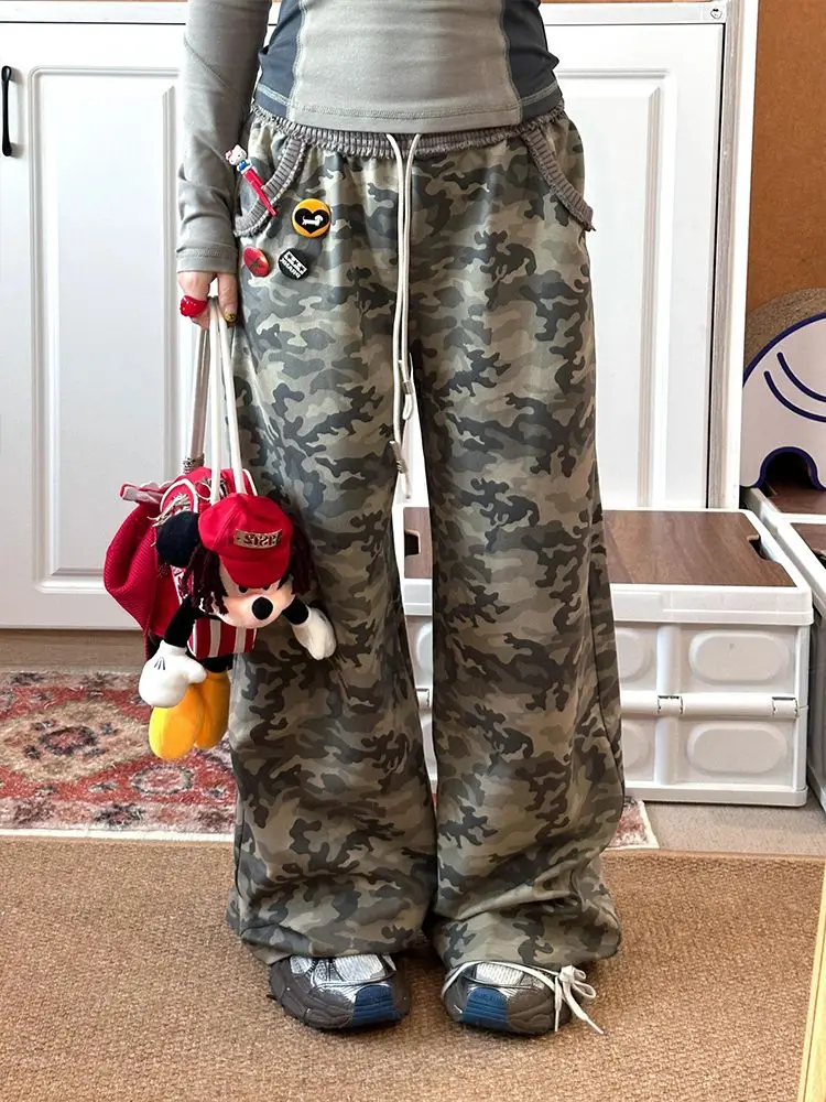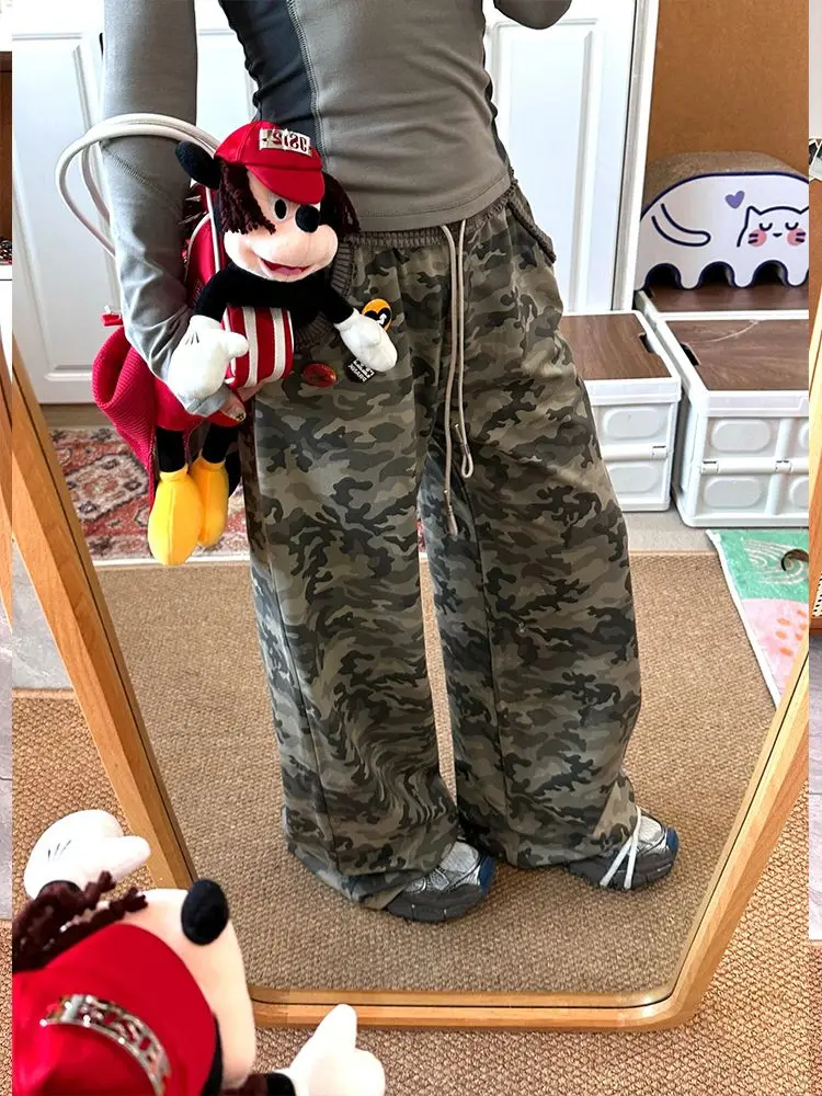 Purpdrank Vintage Camouflage Pants Women Y2K Hip Hop Streetwear All Match Wide Leg Trousers Korean High Waist Grunge 90S Pants Aesthetic