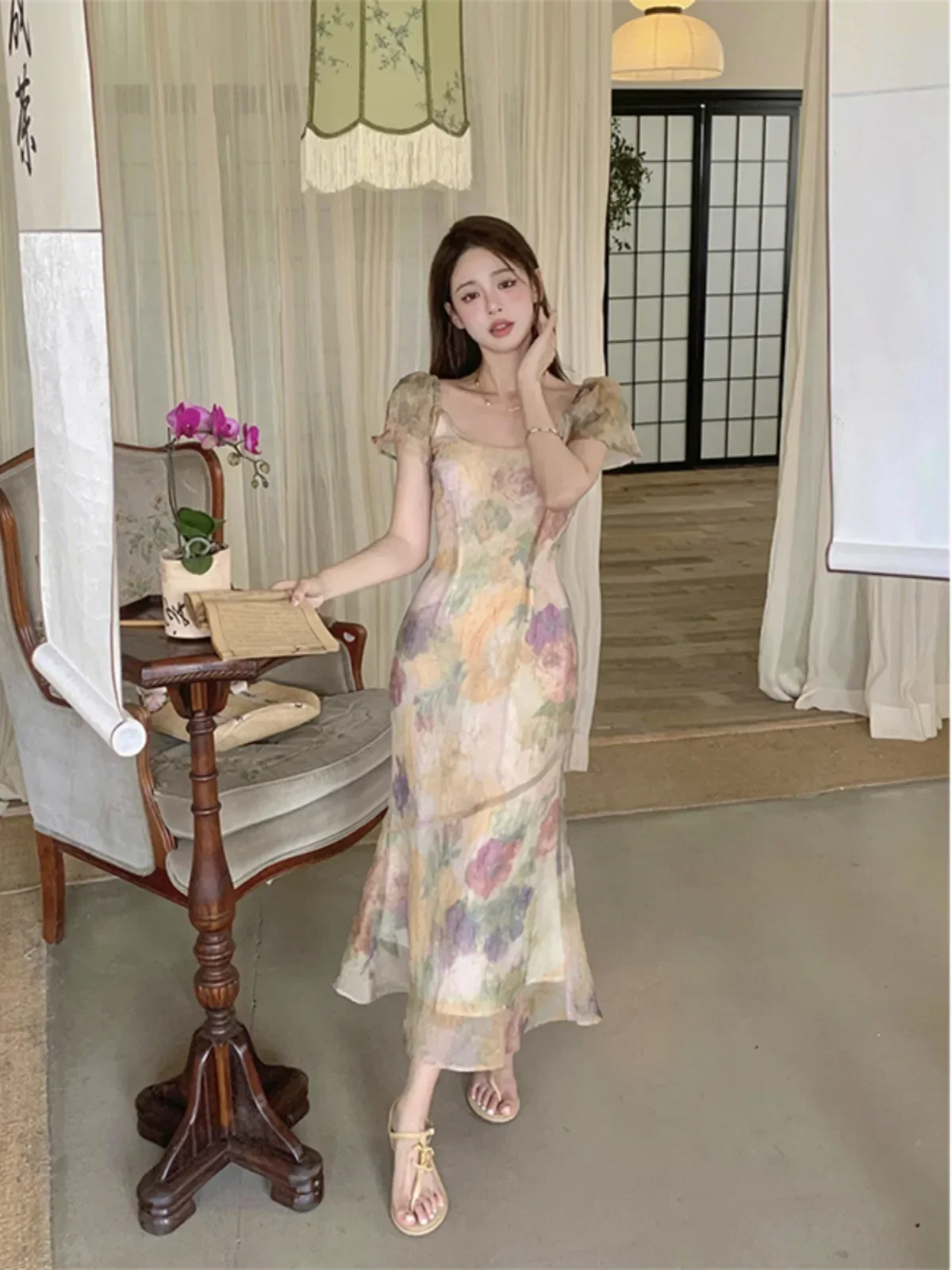 Purpdrank Vintage French Temper Harajuku Women's Dress Elegant Style Round Neck Chiffon Dress Women Sweet and Casual Summer Clothing