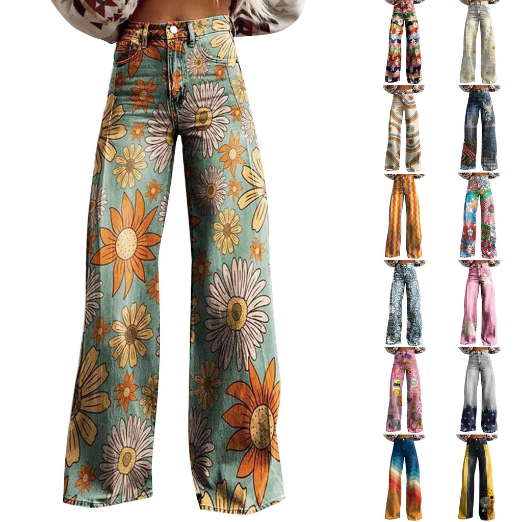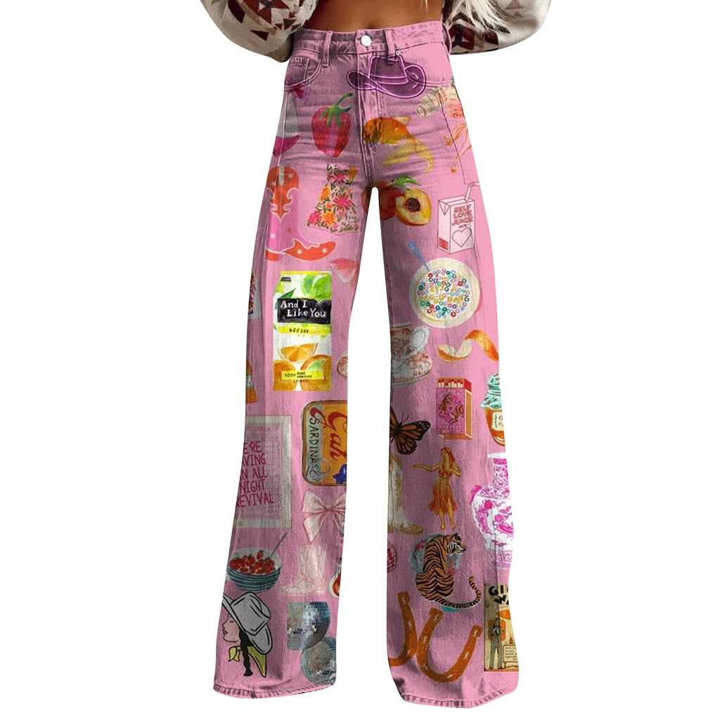 Purpdrank Vintage Gradient Faux Denim Pants Womens Wide Leg New Fashion High Waist Casual Retro Punk Women Faux Denim Trousers Jeans