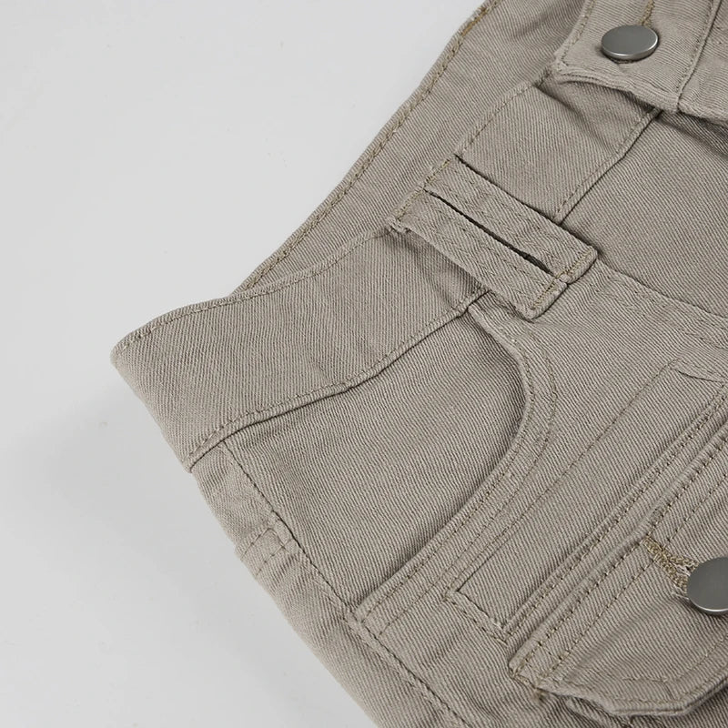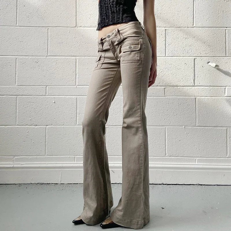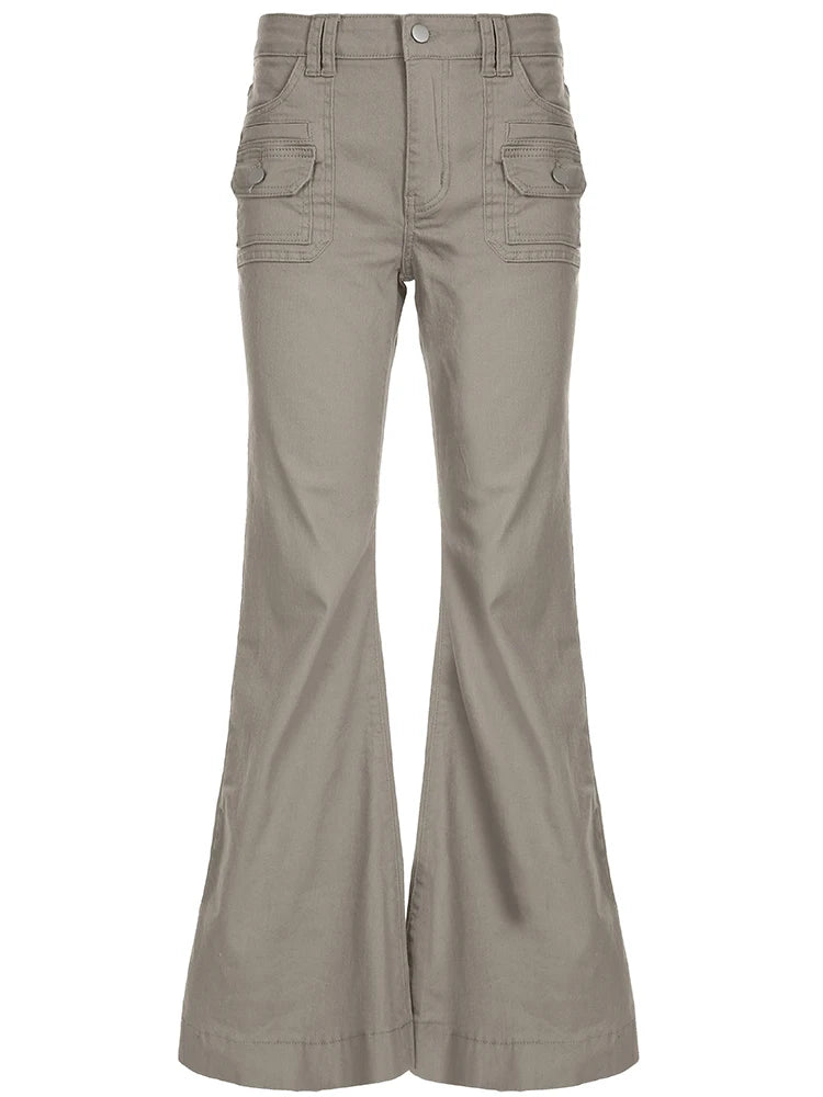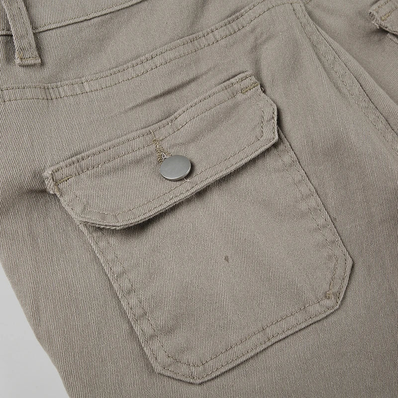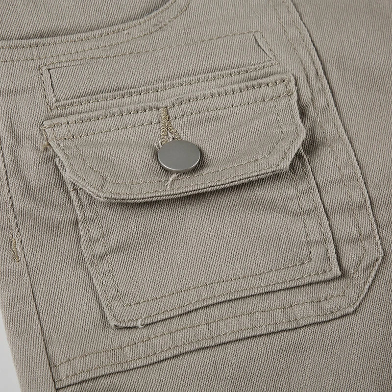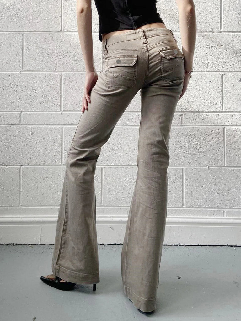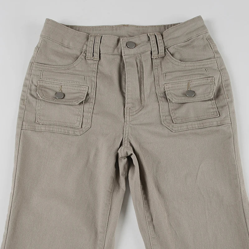 Purpdrank Vintage Grey Low Rise Denim Pants Retro Pocket Patchwork Slim-fitting Micro-flared Jeans for Women Casual Streetwear y2k